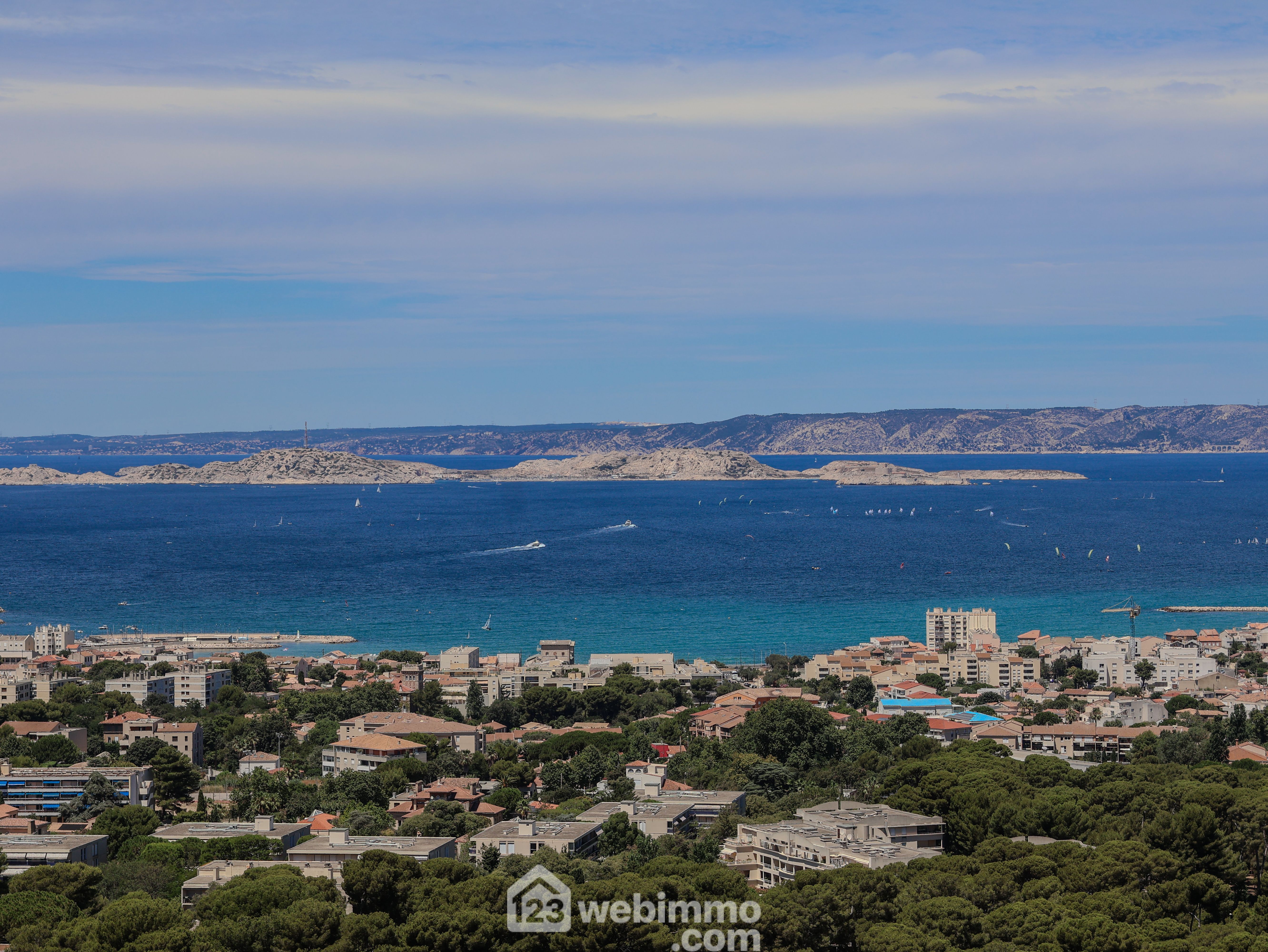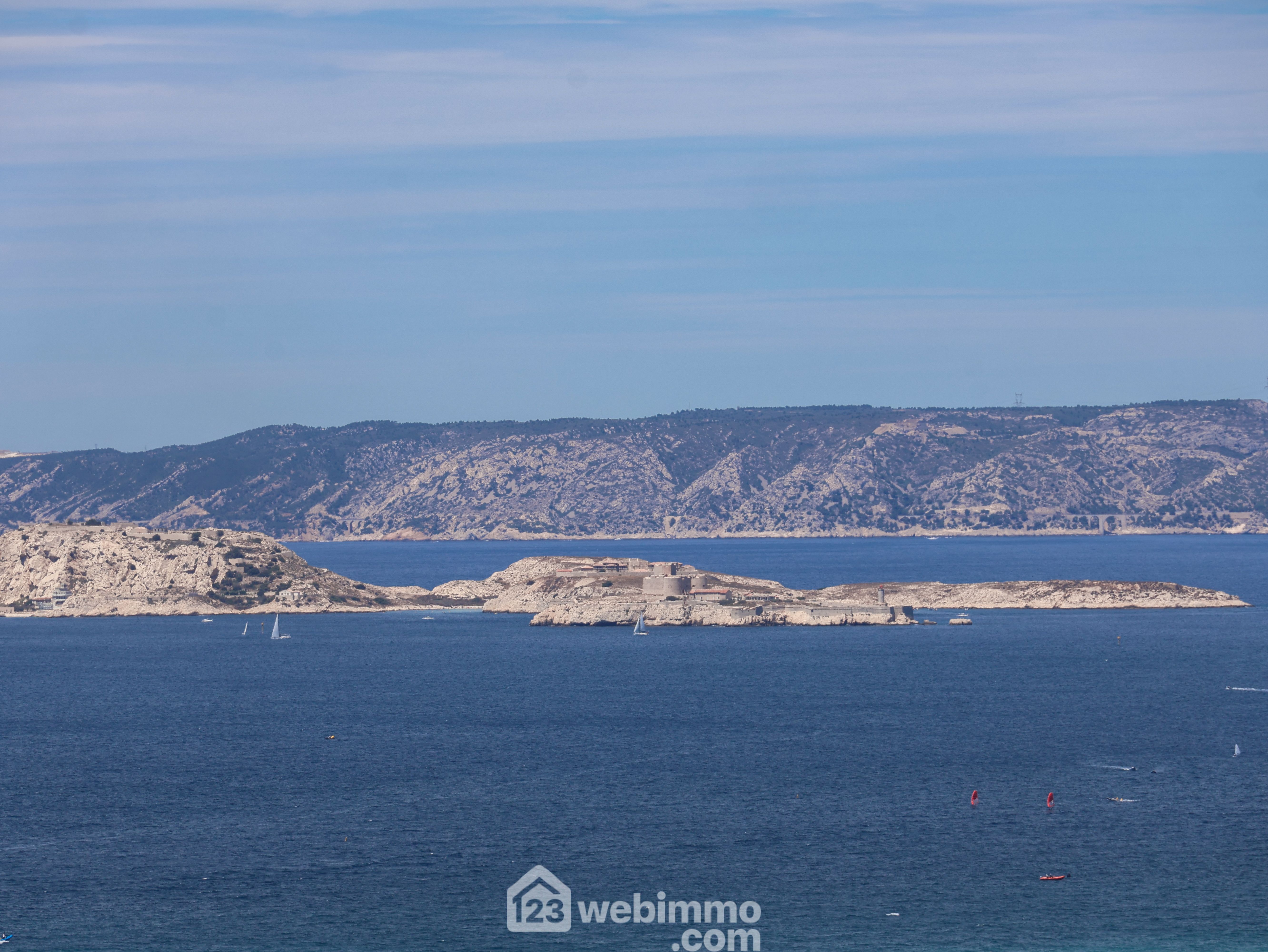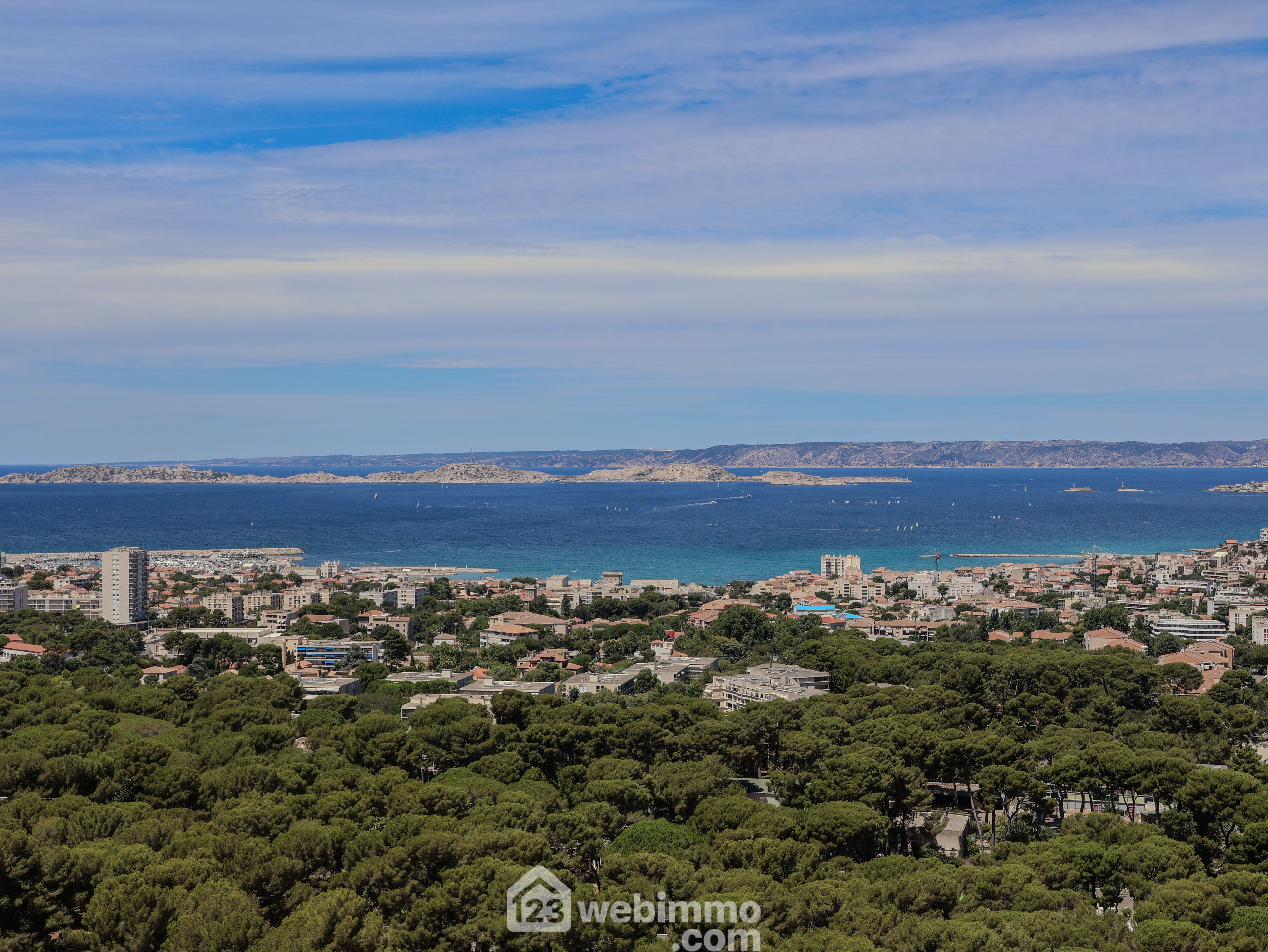 ROY D'ESPAGNE au pied du Parc national des Calanques, offrant de très belle vues dégagées mer et Calanques au calme absolu. Très beau type 4/5 traversant de 107m2 avec ascenseur ouvert sur deux balcons aux vues dégagées d'exception sur les îles du Frioul et le Parc national des Calanques. Un hall d'entrée introduit un lumineux séjour double de 30m2 et une grande cuisine équipée avec cellier attenant. La partie nuit se compose de 3 vastes chambres (14m2, 13m2, 10m2) équipées de rangements ayant chacune la vue côté mer, une salle de bain, une salle de douche et un toilette séparé complètent l'ensemble. Double vitrage, porte blindée. Fibre. Charges 300€/mois eau chaude chauffage inclus. CAVE de 16m2 . Bus 44 et 45 proches. Plages à 2km. 20 photos sur 123webimmo Marseille9.