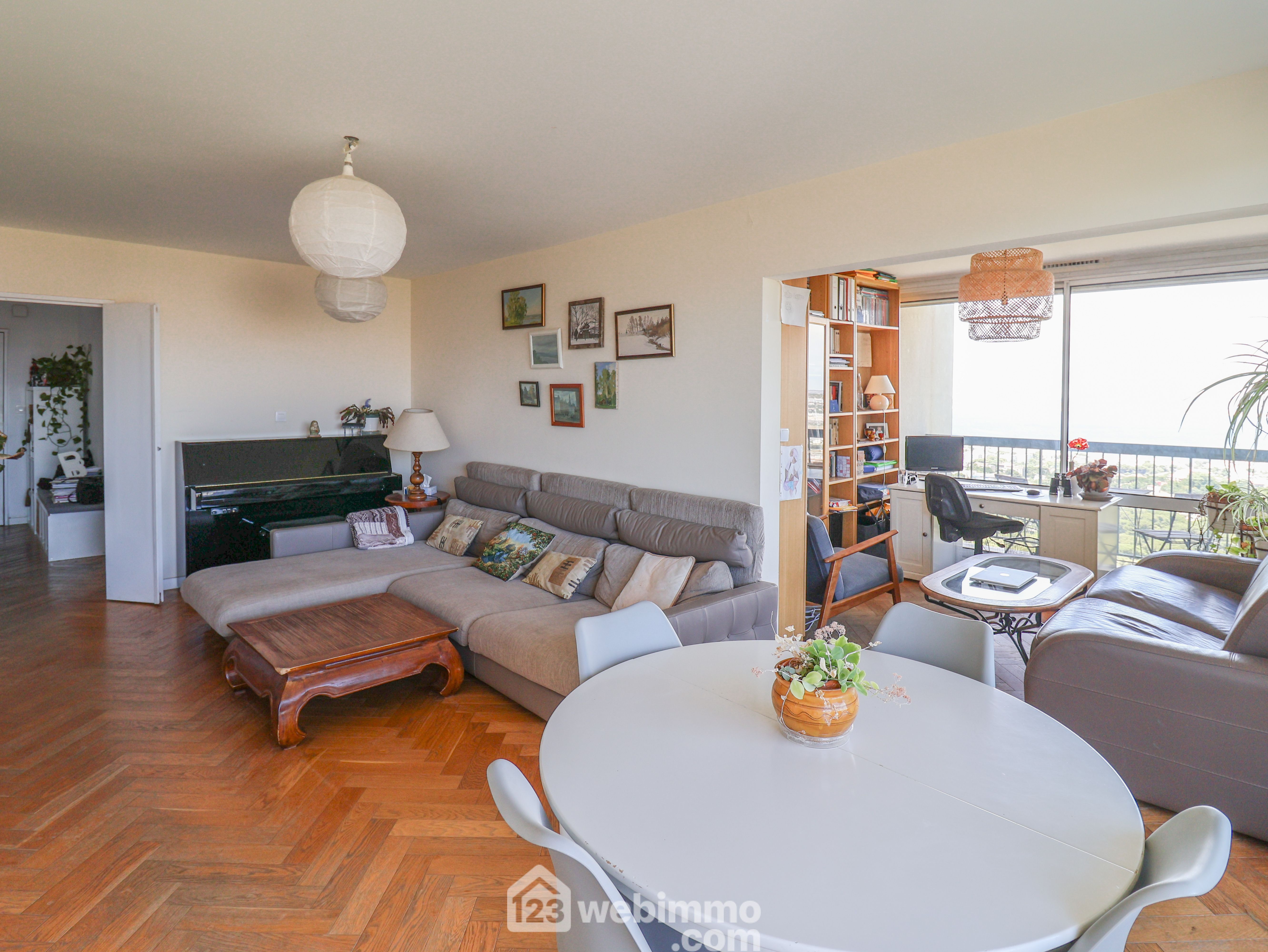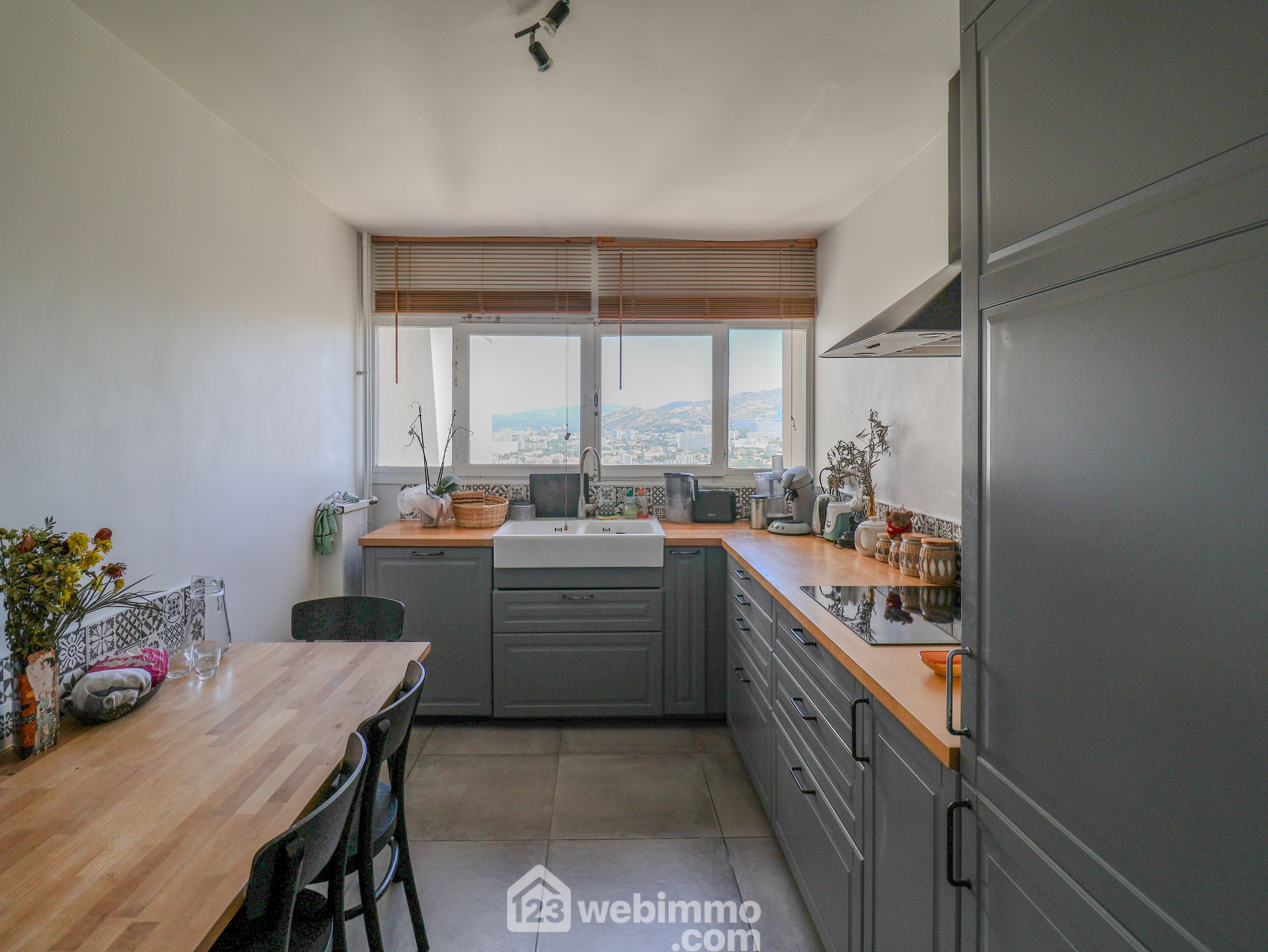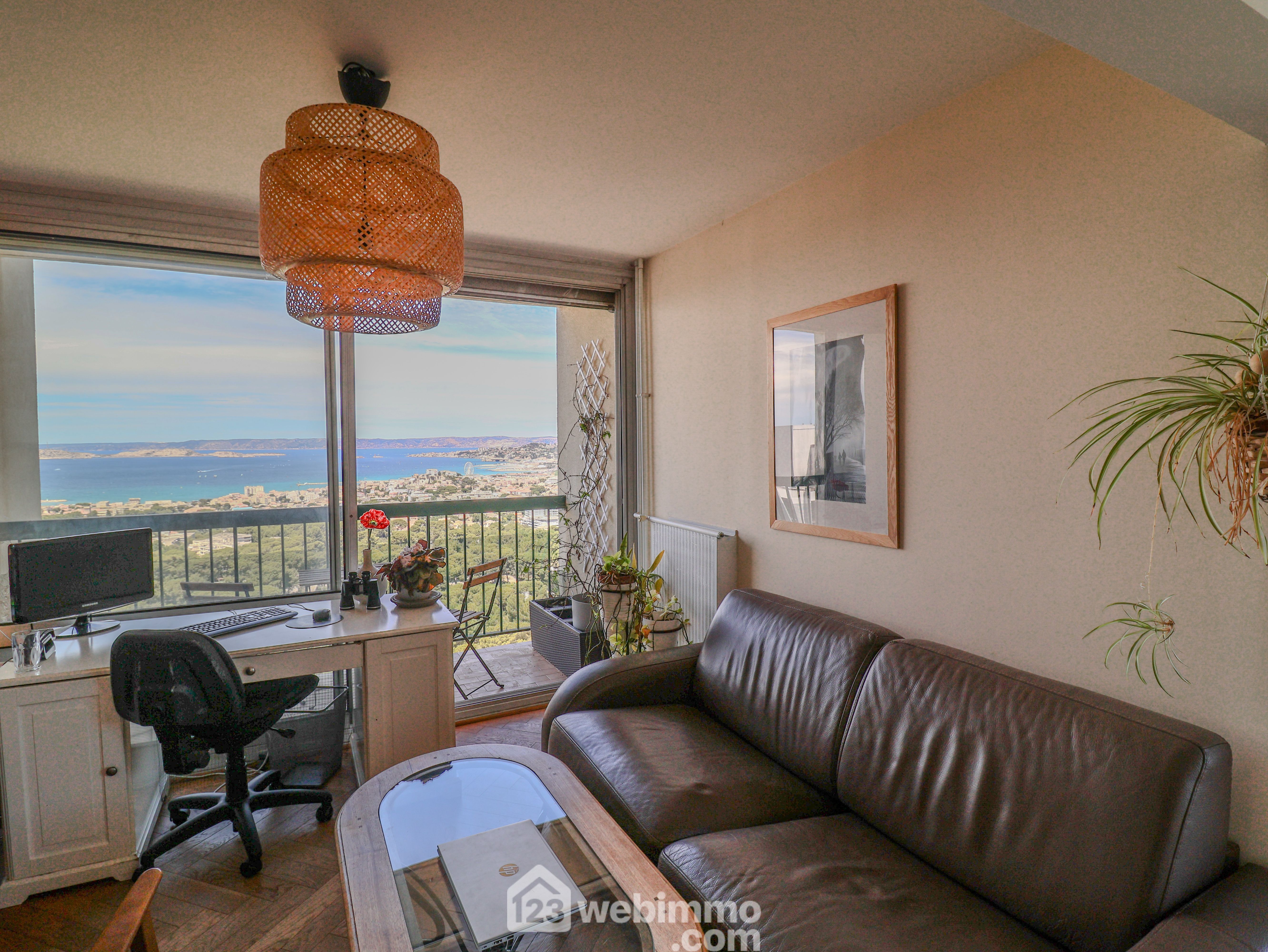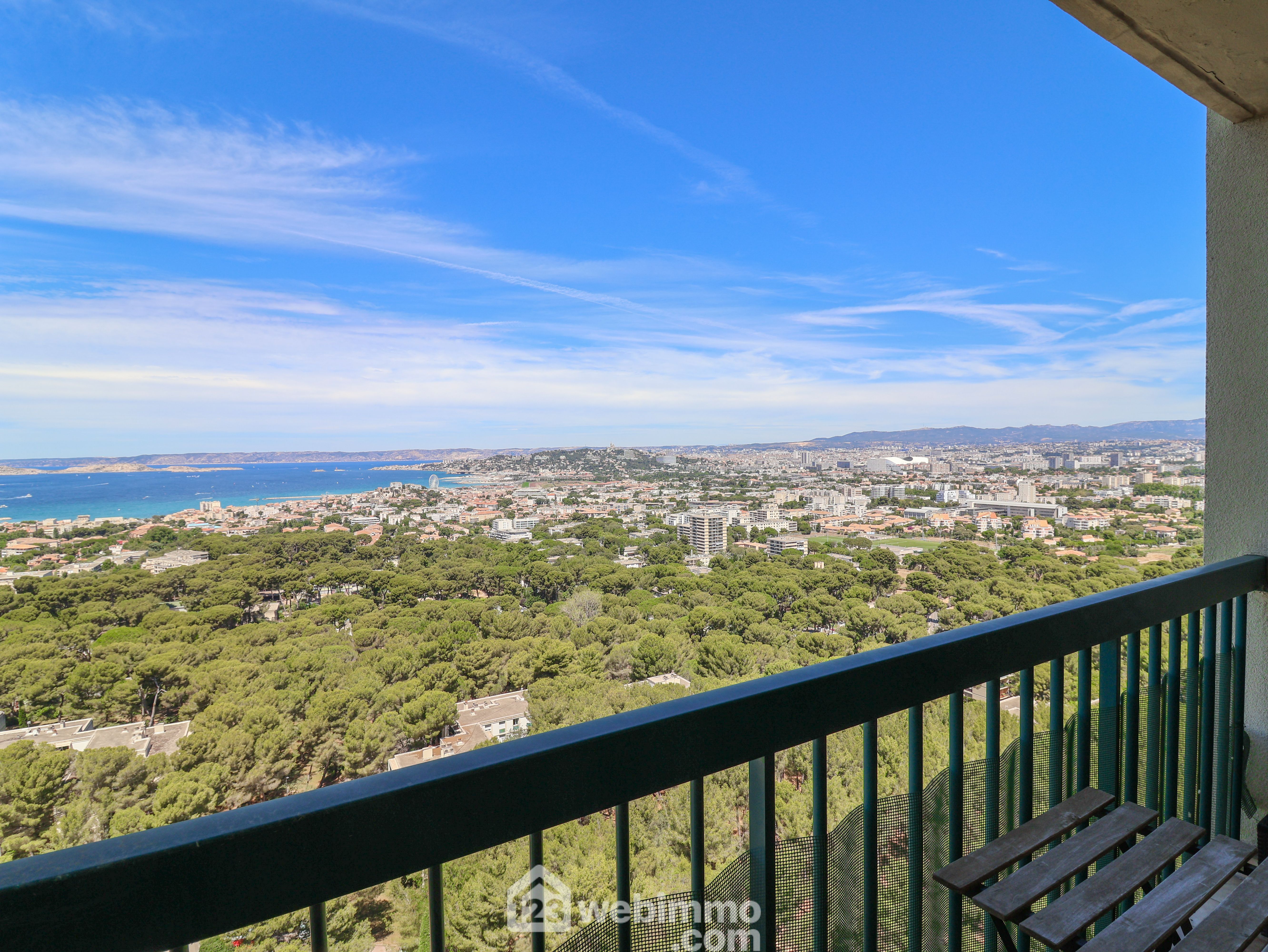 ROY D'ESPAGNE au pied du Parc national des Calanques, offrant de très belle vues dégagées mer et Calanques au calme absolu. Très beau type 4/5 traversant de 107m2 avec ascenseur ouvert sur deux balcons aux vues dégagées d'exception sur les îles du Frioul et le Parc national des Calanques. Un hall d'entrée introduit un lumineux séjour double de 30m2 et une grande cuisine équipée avec cellier attenant. La partie nuit se compose de 3 vastes chambres (14m2, 13m2, 10m2) équipées de rangements ayant chacune la vue côté mer, une salle de bain, une salle de douche et un toilette séparé complètent l'ensemble. Double vitrage, porte blindée. Fibre. Charges 300€/mois eau chaude chauffage inclus. CAVE de 16m2 . Bus 44 et 45 proches. Plages à 2km. 20 photos sur 123webimmo Marseille9.