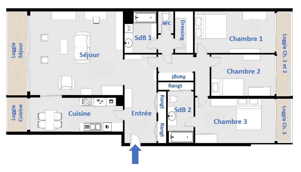 Particulièrement bien agencé, logement disposant d'une exposition très lumineuse, de pièces très confortables et de nombreux rangements.