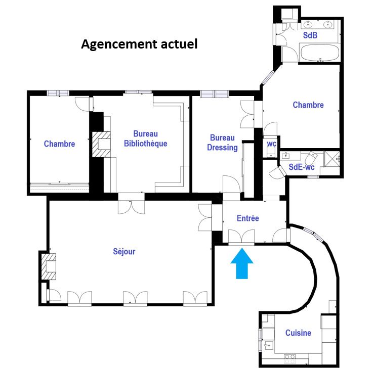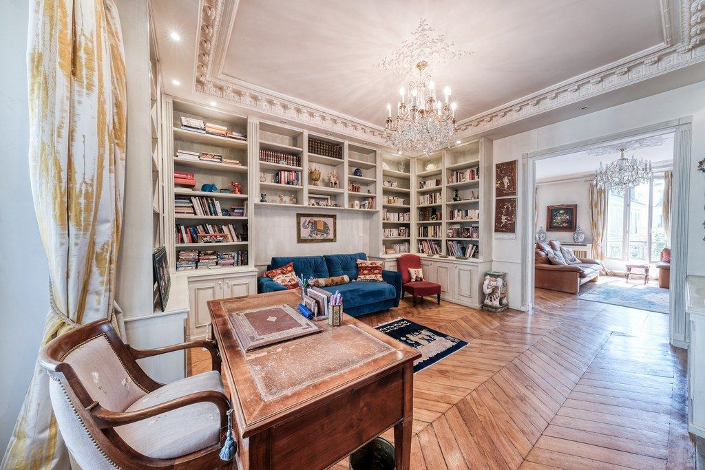 L'appartement dispose d'une entrée, séjour de 40 m² très lumineux, bureau-bibliothèque de 20 m², suite parentale comprenant bureau/dressing, chambre, salle de bains et wc indépendant, une seconde chambre, salle d'eau avec wc, cuisine aménagée. Possibilité d'une troisième chambre (voir proposition sur plan). Grande cave en sous-sol. Métro Miromesnil à 200m.