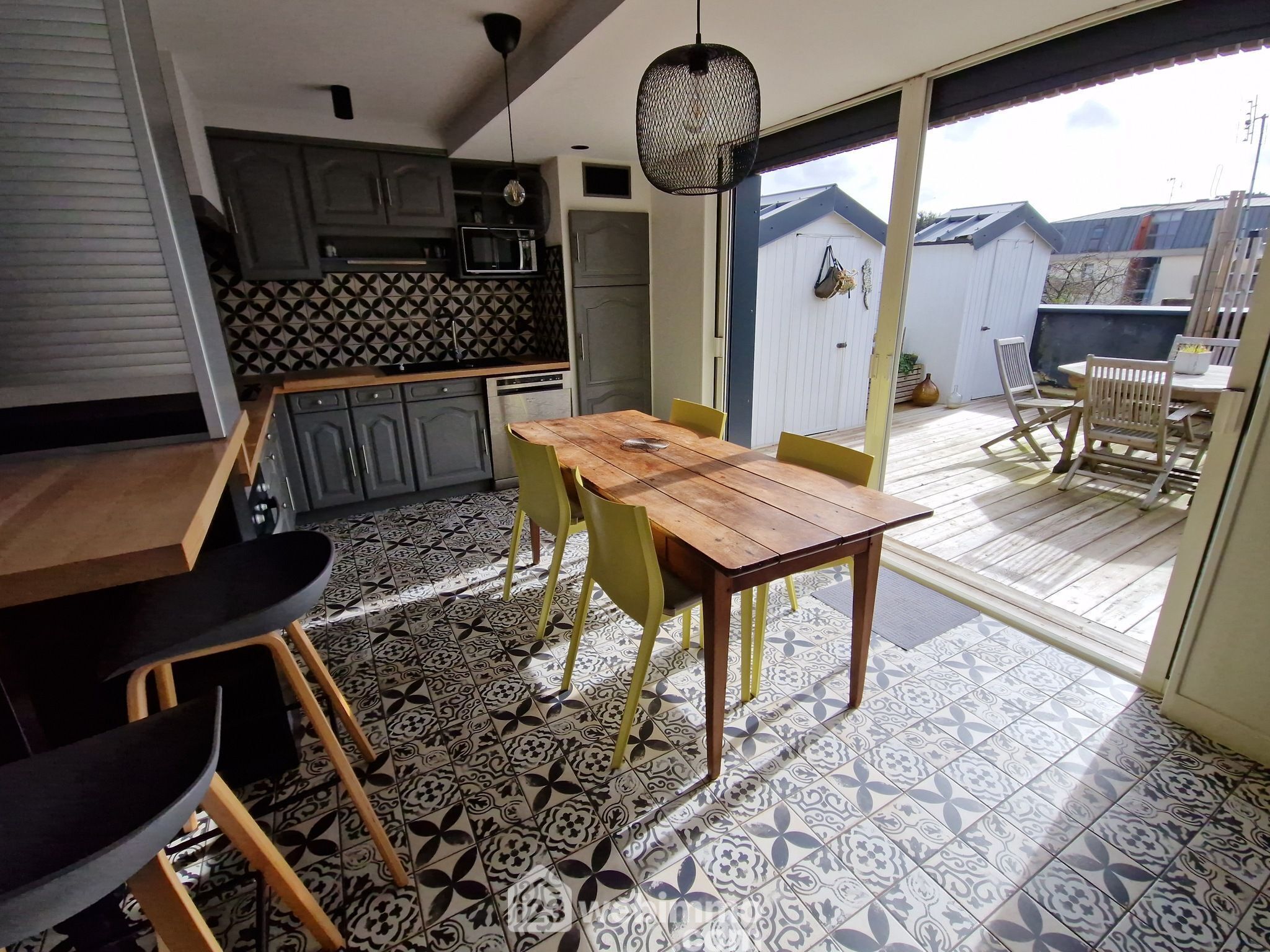 Le logement principal, de type 4 (3 chambres + bureau), propose une très belle partie vie, 50 m² environ, y compris cuisine donnant accès, par une grande baie à galandage, à une superbe terrasse de 30 m² sans vis-à-vis, bien orientée. La partie nuit offre 3 chambres. Salle d'eau et wc séparés à chaque niveau. Bureau.