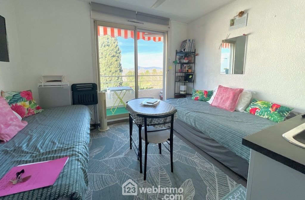 Saint-Tropez Joli studio meublé situé dans une résidence de standing calme et recherchée nichée dans un parc paysager offrant un cadre exceptionnel et préservé, séjour lumineux ouvrant sur une terrasse avec une belle Vue Mer et sur le parc, cuisine équipée fonctionnelle, salle de douche moderne avec w.c intégré.