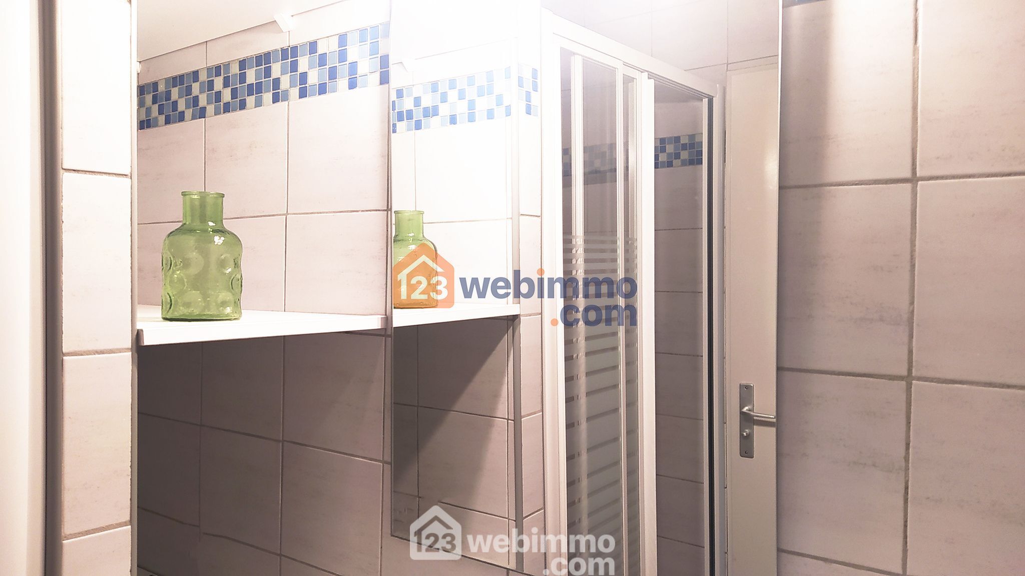- 1 Salle d'eau équipée d'une douche italienne et d'une vasque sur meuble, et d'une machine à laver le linge.