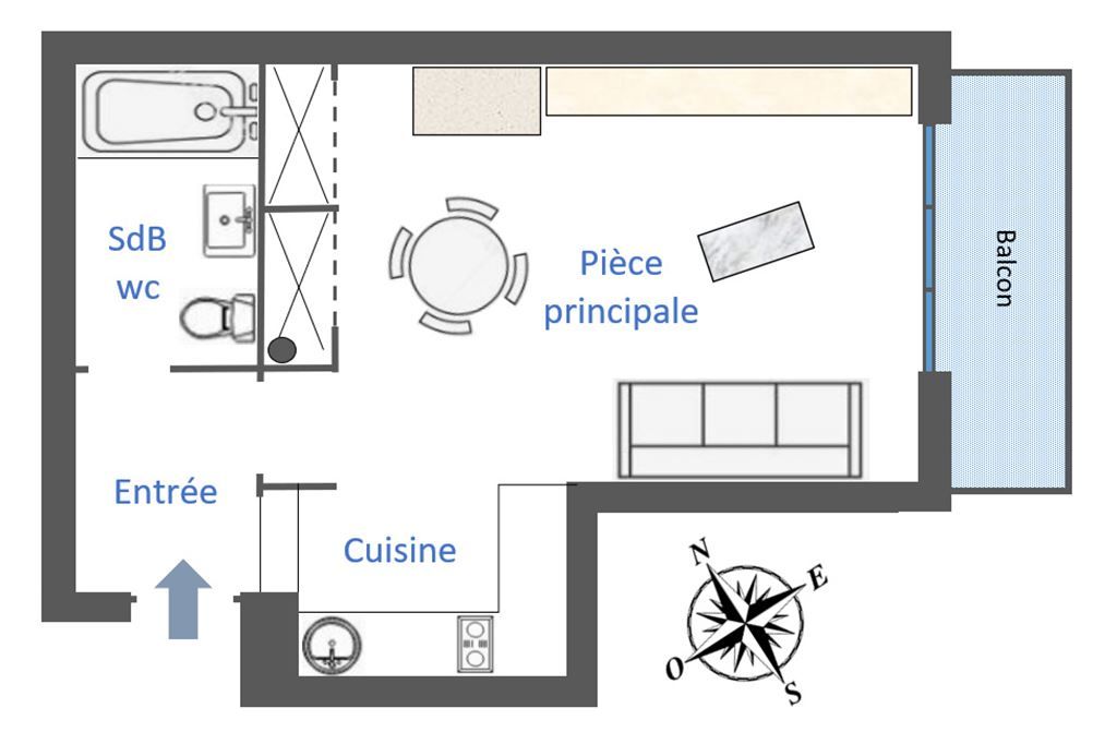 VILLIERS-BARBUSSE - Studio de 28,80 m² Carrez situé au 2ème étage d'une petite résidence bien tenue. Avec balcon, cave et parking.