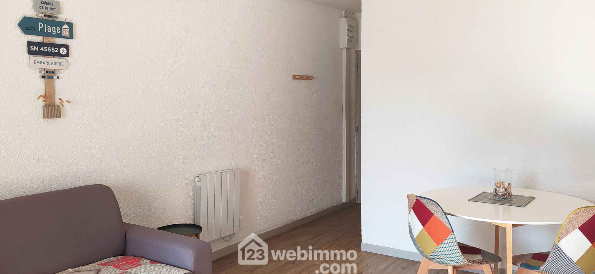 Idéal pour les vacances et la location saisonnière, ce charmant studio ensoleillé de 30m² (27m² carrez) au cœur du village dans un quartier calme, à proximité des commerces et des plages, vous propose: