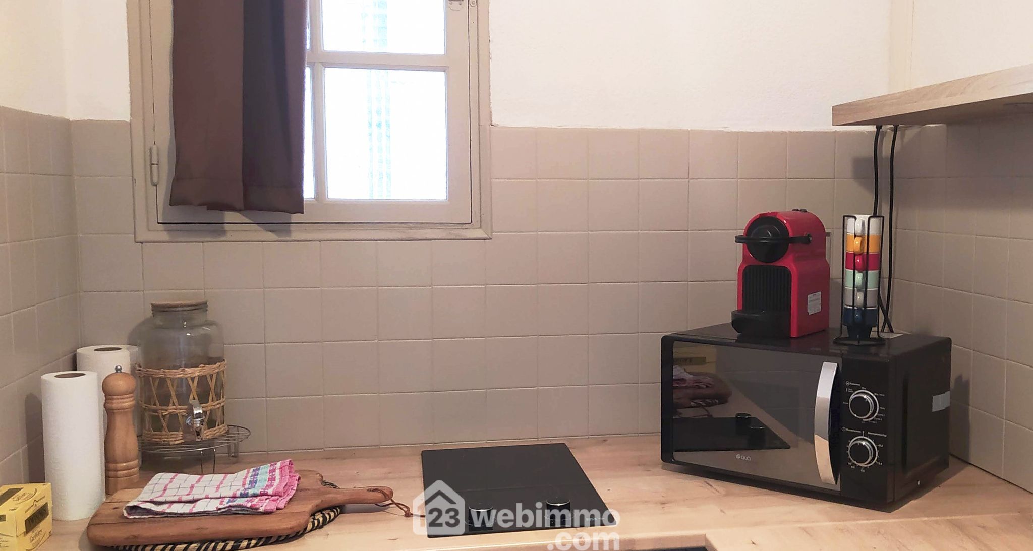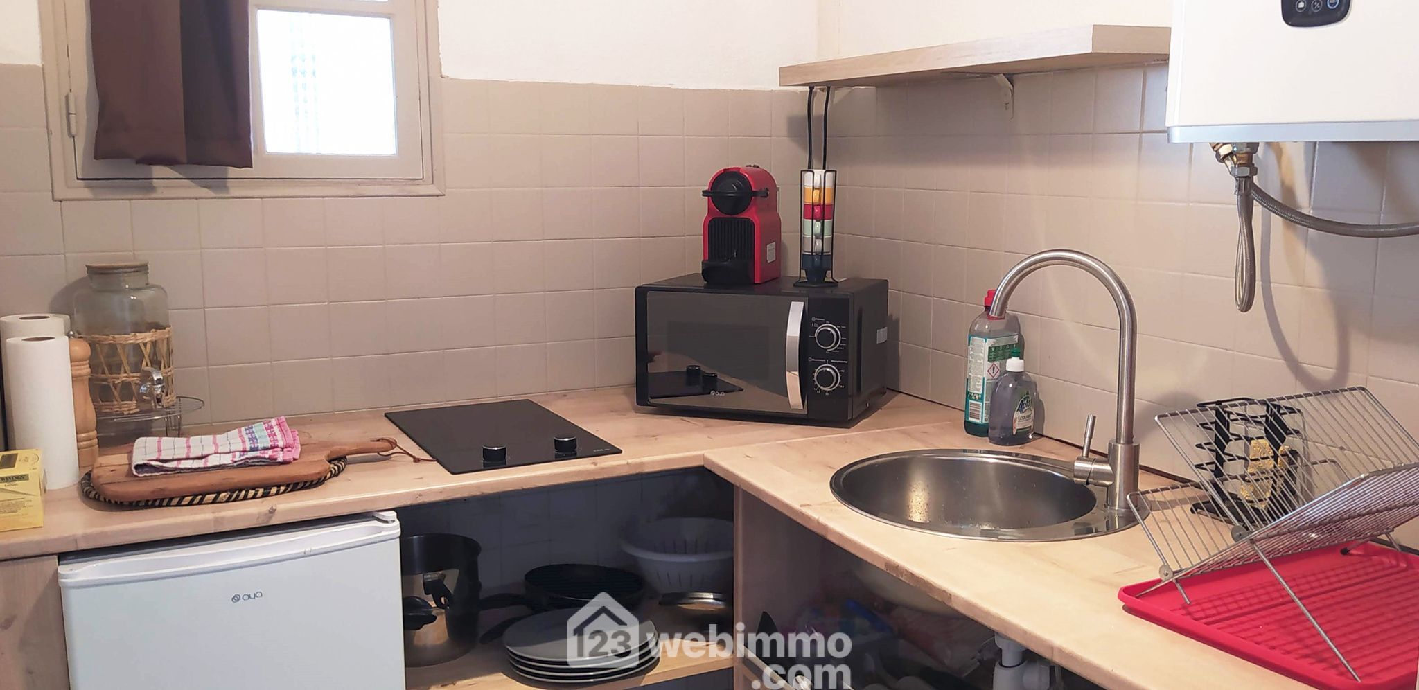 - 1 Cuisine équipée de ses éléments ( frigo, four micro-onde, plaque de cuisson)