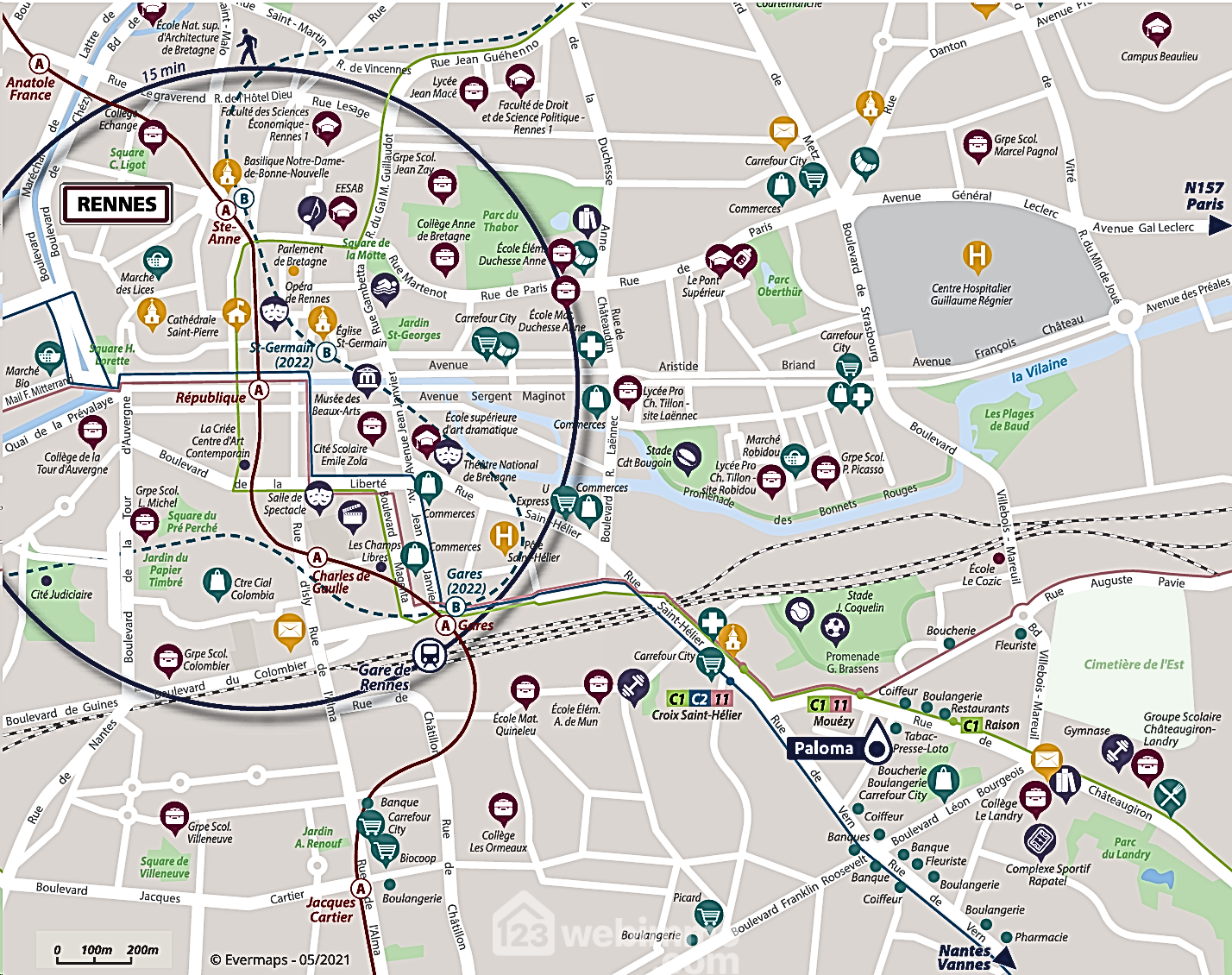 Grand T1 de 31m2- situé au 2ème étage d'une résidence arborée à proximité du centre de Rennes
