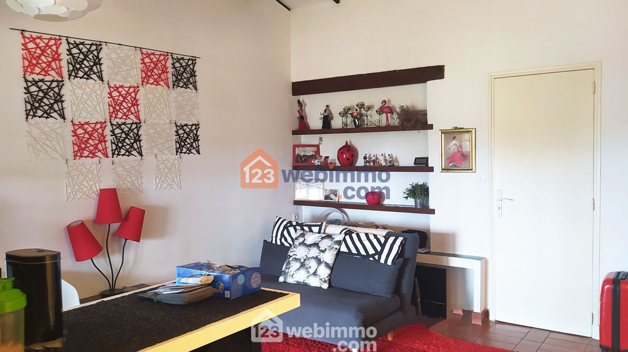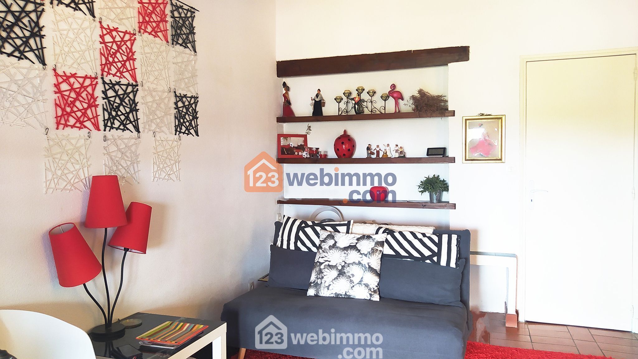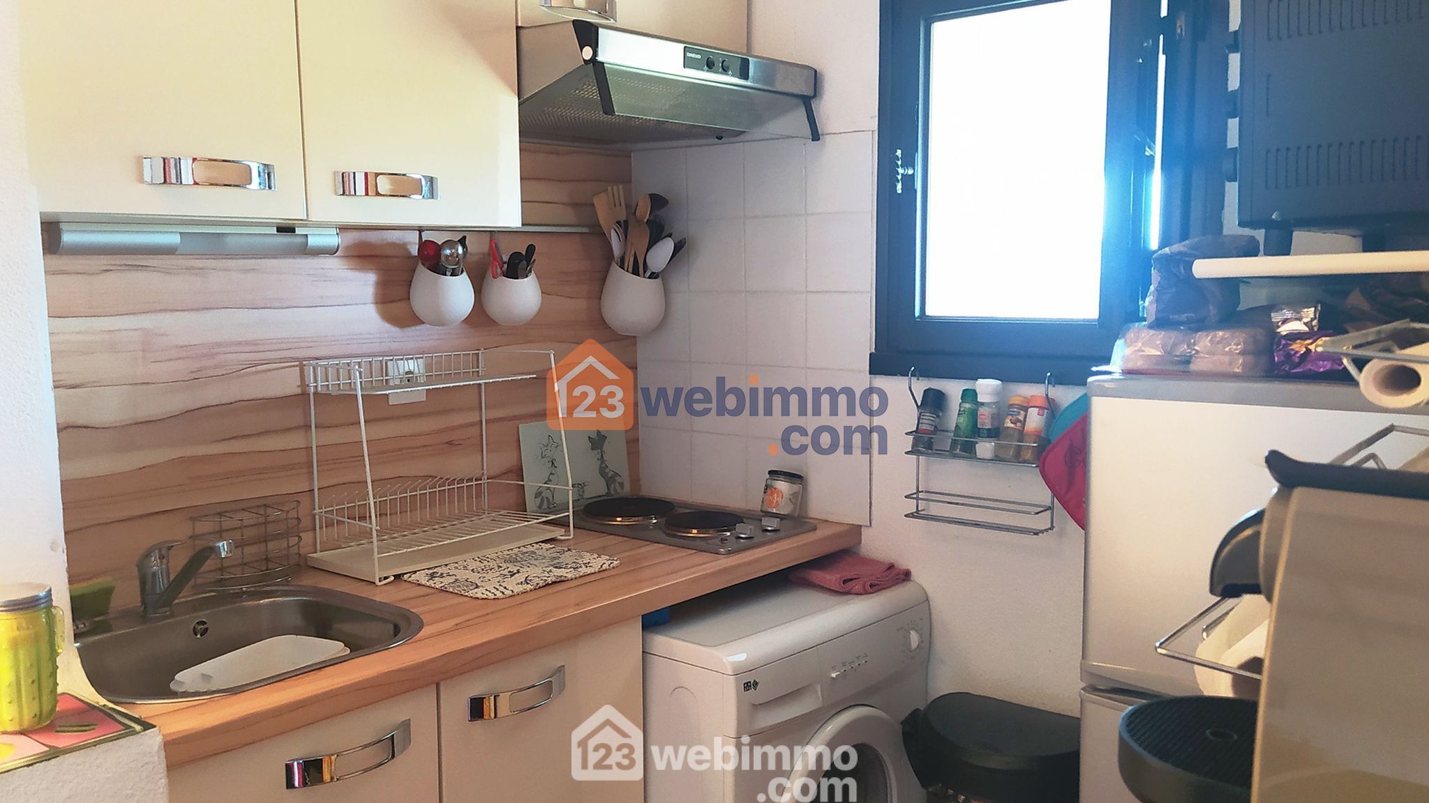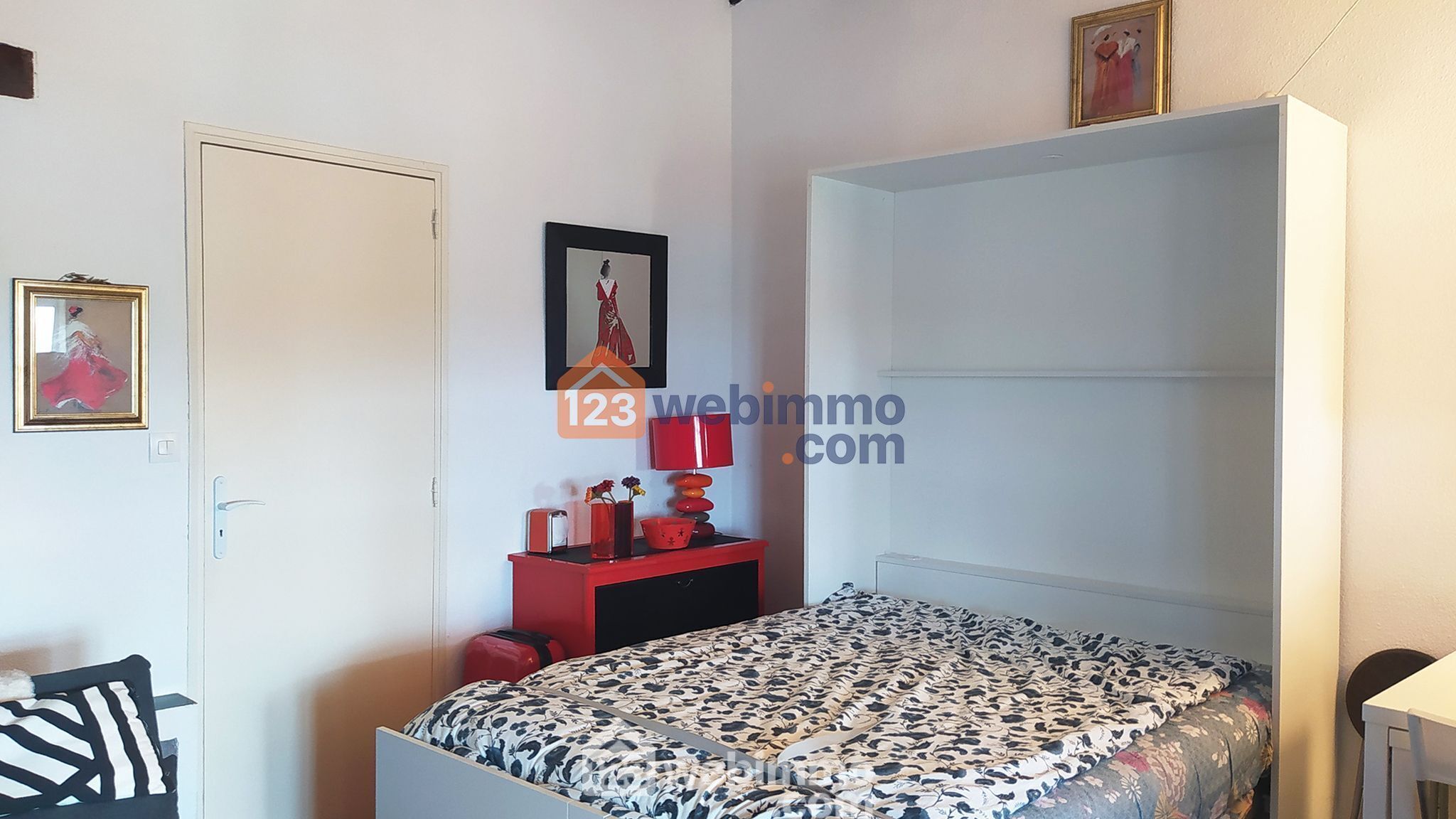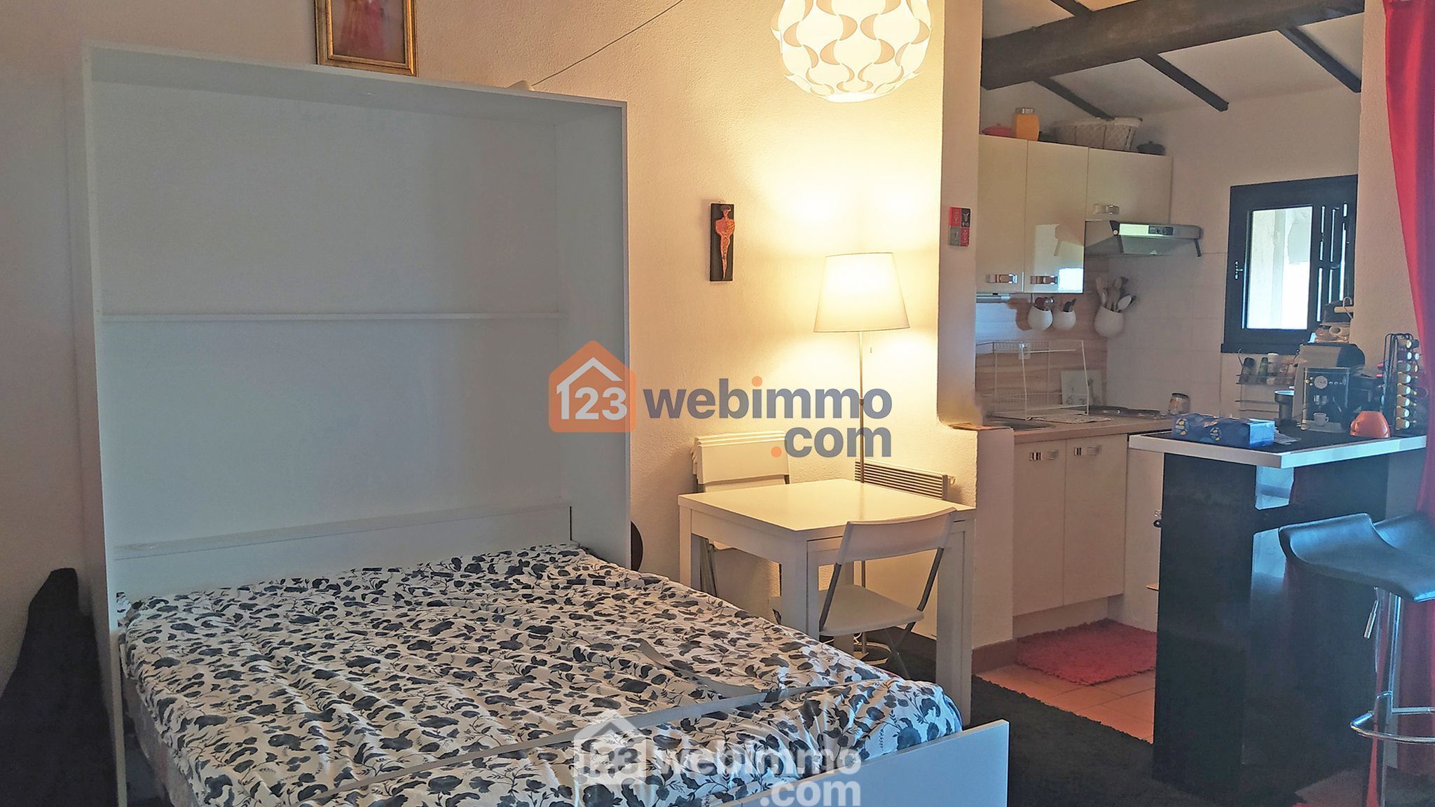 - Sa pièce de vie de 25m², équipée d'un lit escamotable de qualité en 140x190 restant avec le studio, et de son coin cuisine équipé de ses éléments( frigo, congélateur, L. Linge, four, hotte, plaque