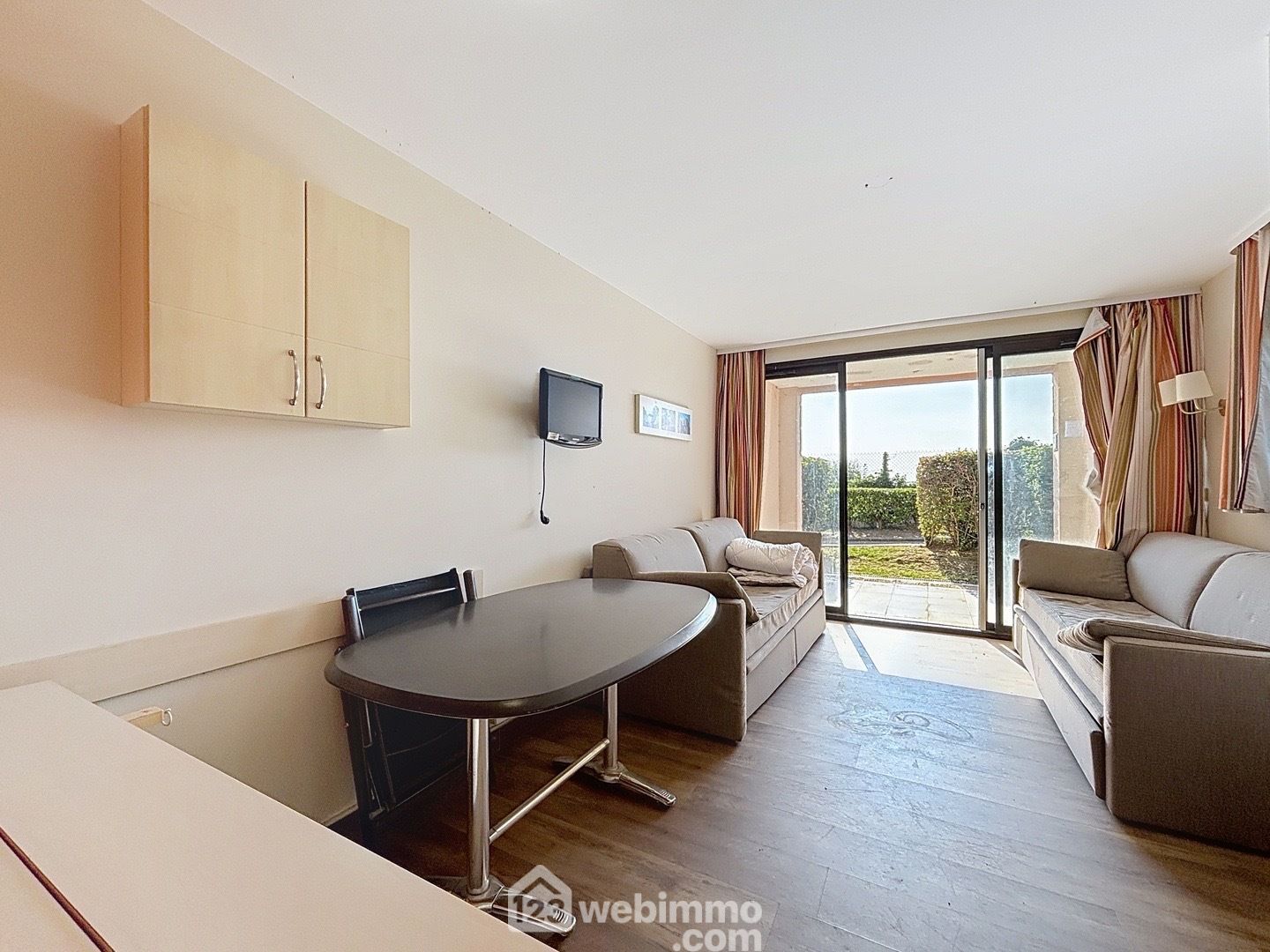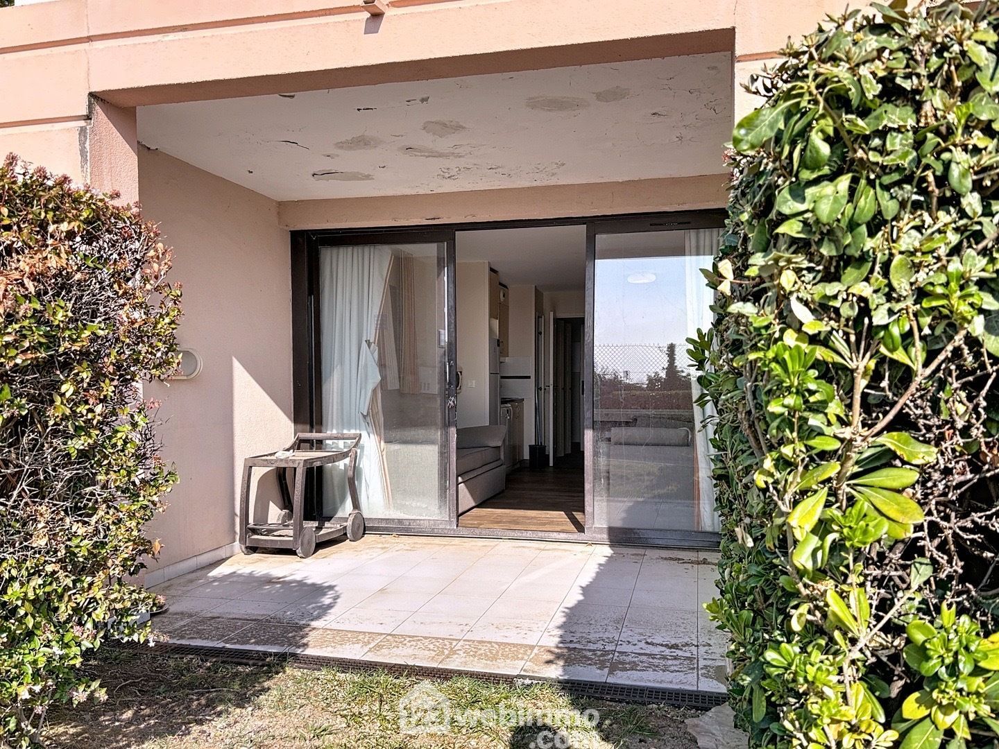 Ce 3P (1 chambre et une cabine) en rez de jardin, bénéficie d'une belle terrasse couverte avec vue mer.