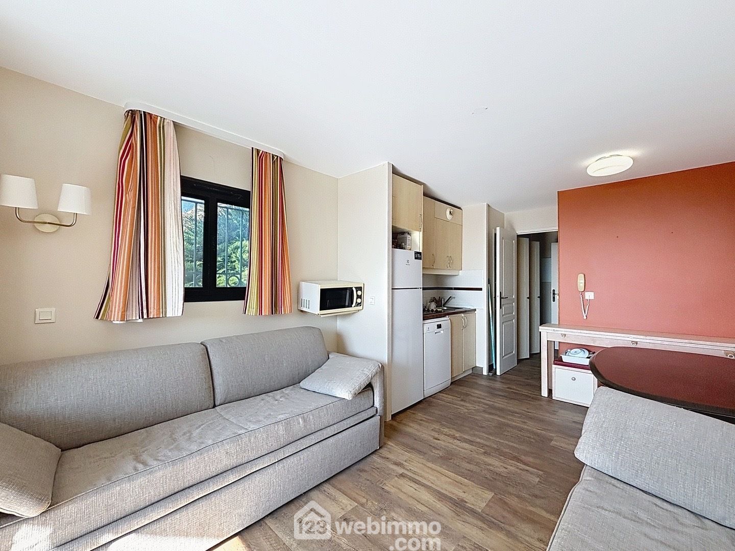 Il est à rénover et offre un magnifique cadre. Il est traversant et en angle, avec exposition plein Sud. Le séjour cuisine est bien agencé. Il y a une vrai chambre avec placard intégré et une chambre cabine. La salle de bain a une baignoire et il y a une salle de douche avec les toilettes. Il y a de nombreux rangements. Il y a possibilités 6 couchages. La résidence est très bien entretenue.
