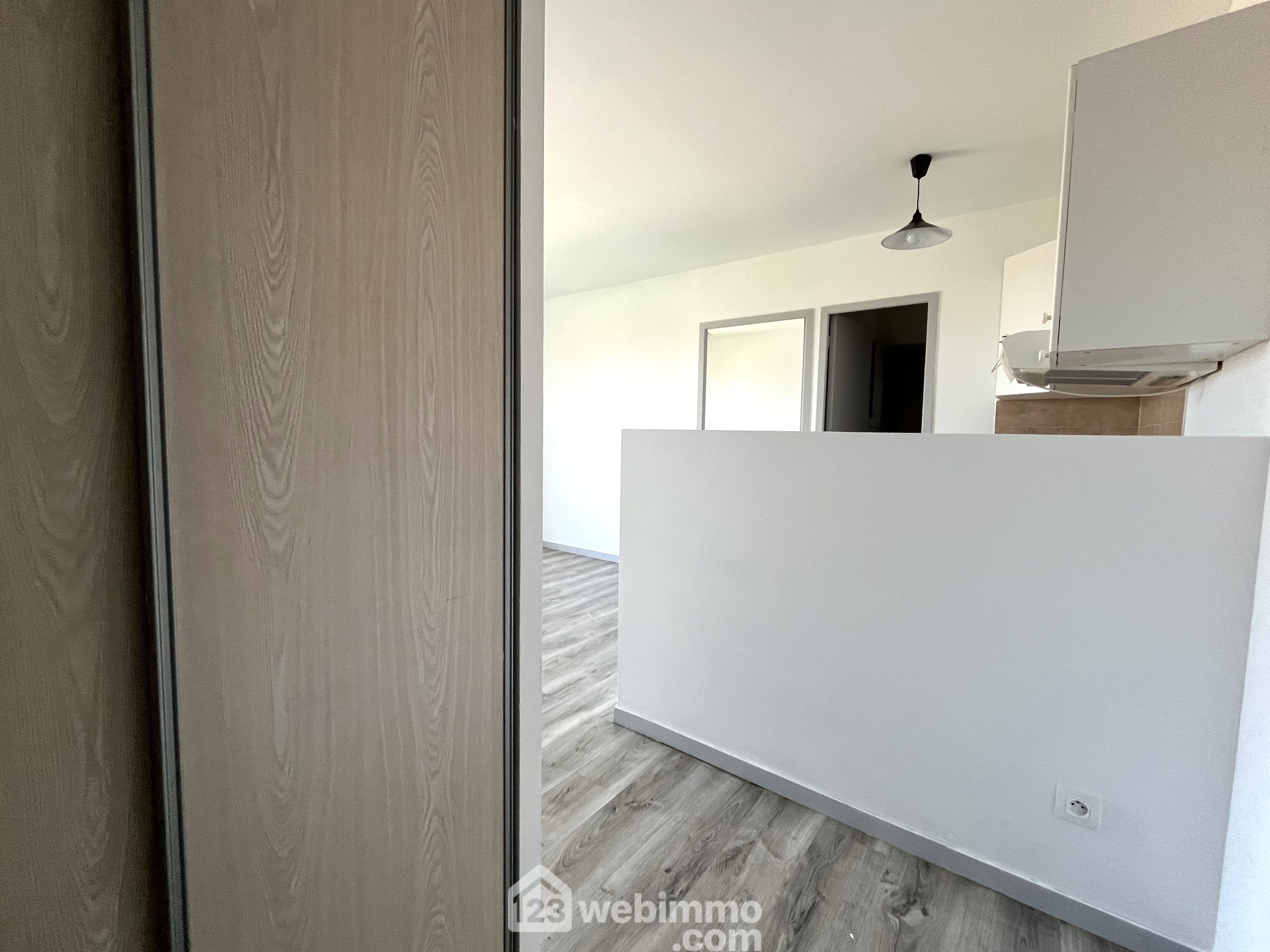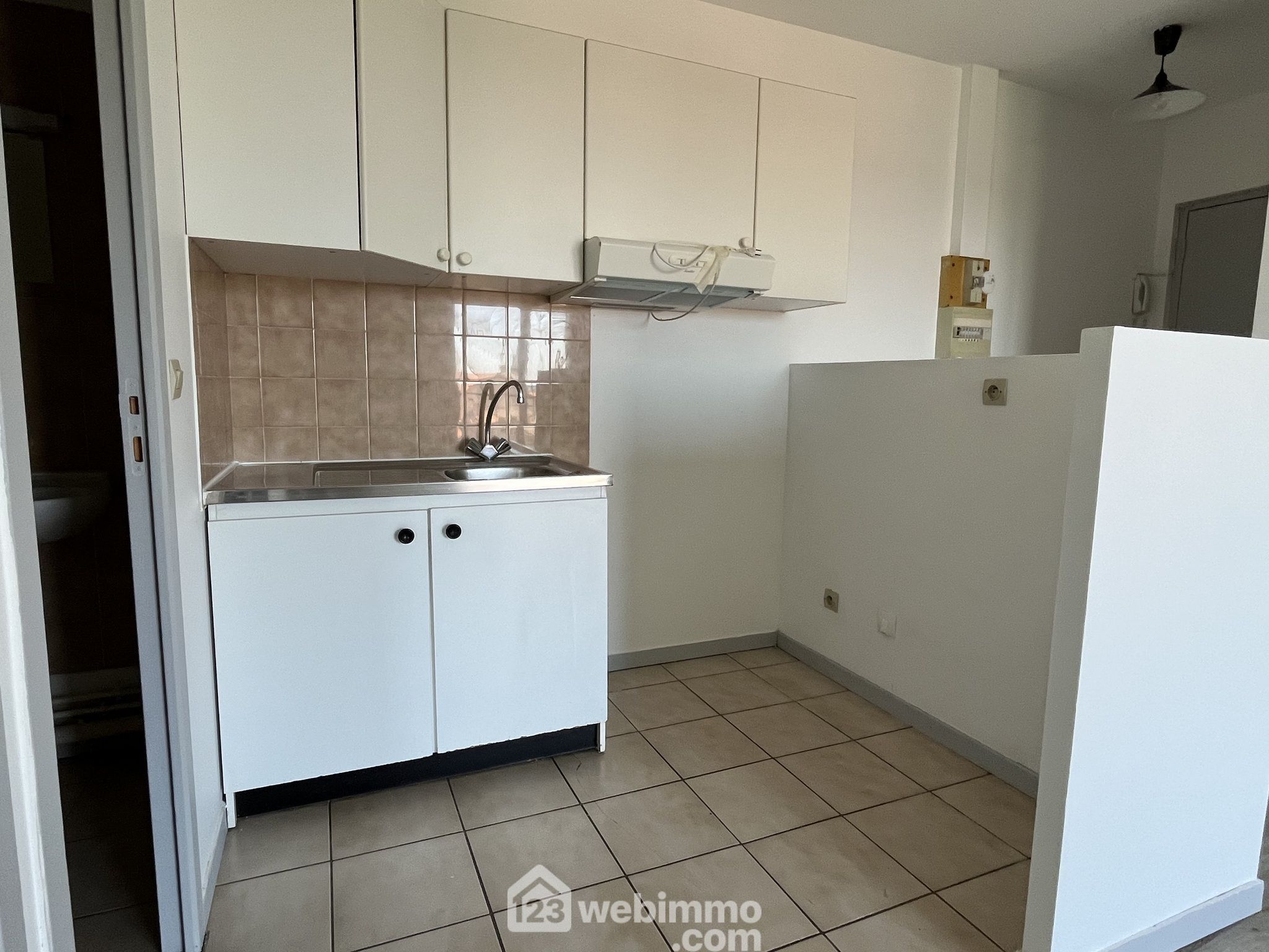 Entrée avec placard, séjour avec espace kitchenette, salle de bains avec wc et une chambre.