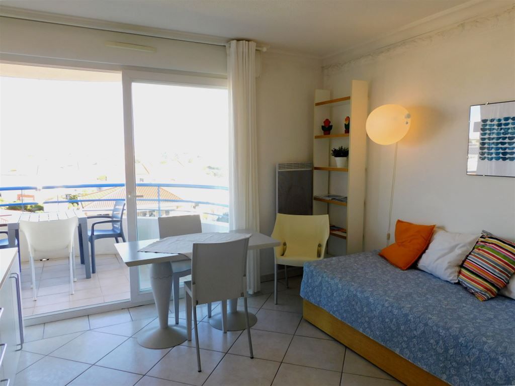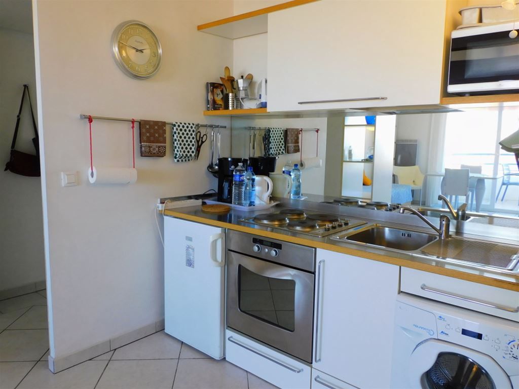 Front de mer accès directe Beau 2P avec piscine, terrasse, séjour cuisine, chambre, salle de bain, WC indépendant, cave et box fermé.