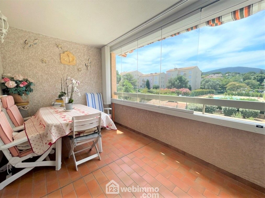Sainte-Maxime, dans une Résidence bien entretenue avec Piscine, au sein d'un parc paysager, bel appartement traversant en parfait état, au deuxième étage avec ascenseur, entrée, séjour donnant sur sa terrasse de 10m2 en exposition Ouest, store électrique et mur de verre, cuisine équipée ouverte sur le séjour, une chambre avec ses rangements, salle de de douche, la résidence possède un grand parking visiteur et possibilité d'acquérir en sus un emplacement de parking privé et un garage de 18m2.