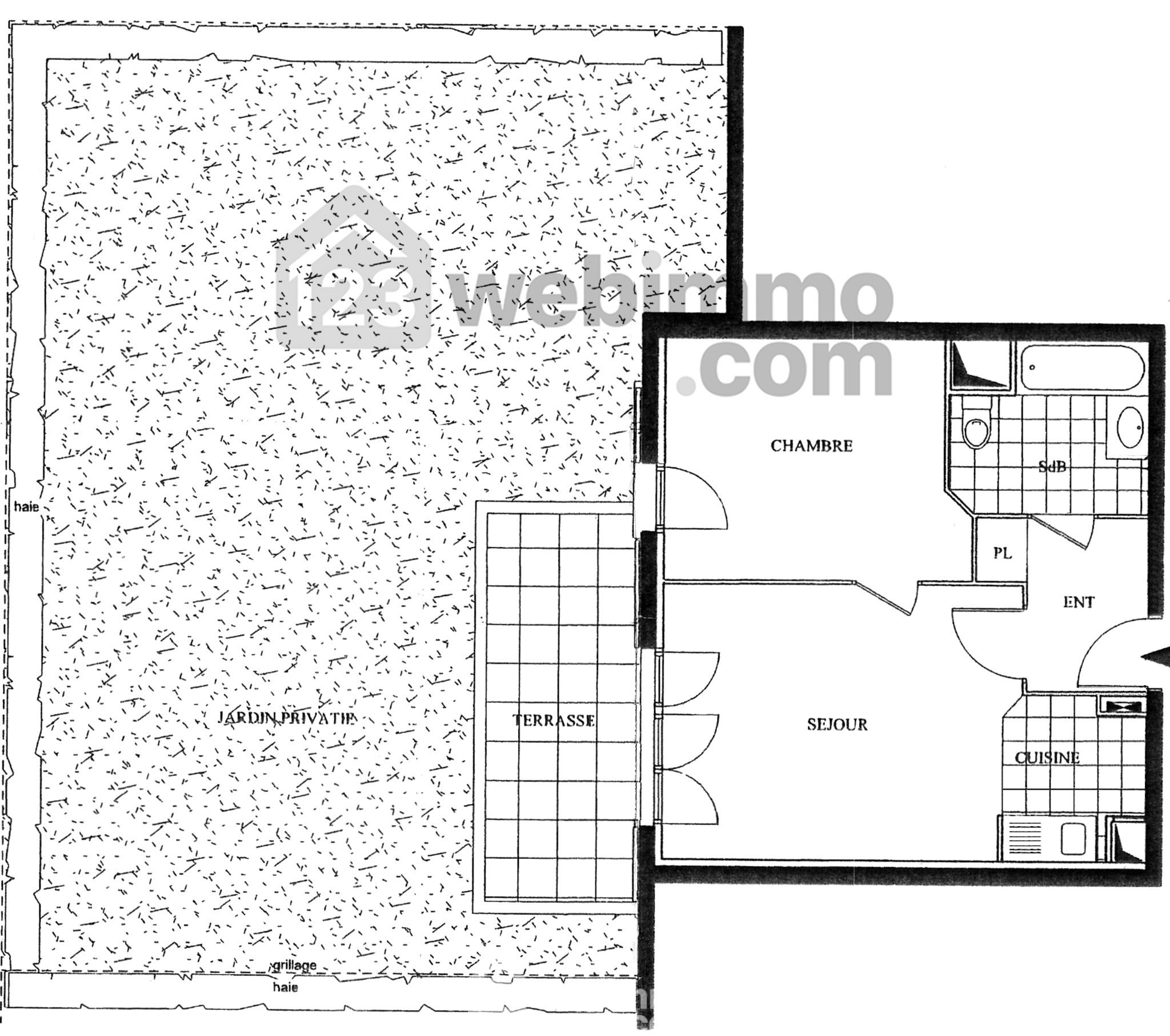 Centre ville, au calme, dans une résidence récente aux faibles charges, appartement 2 pièces ouvrant sur terrasse et jardin privatif.