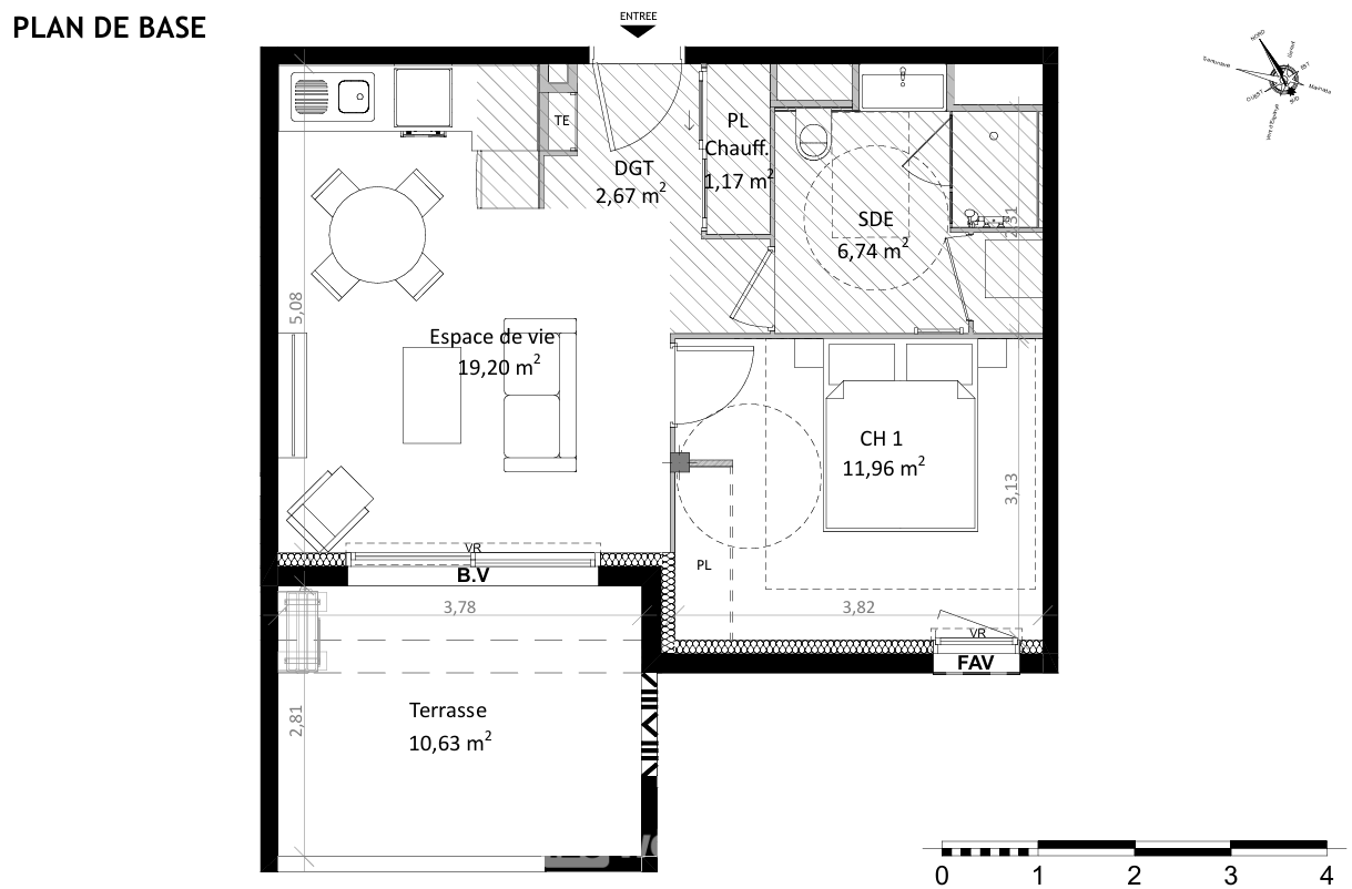 Cet appartement lumineux dispose d’un séjour ouvert sur une terrasse de 10 m² d'une chambre et d'une salle d'eau.