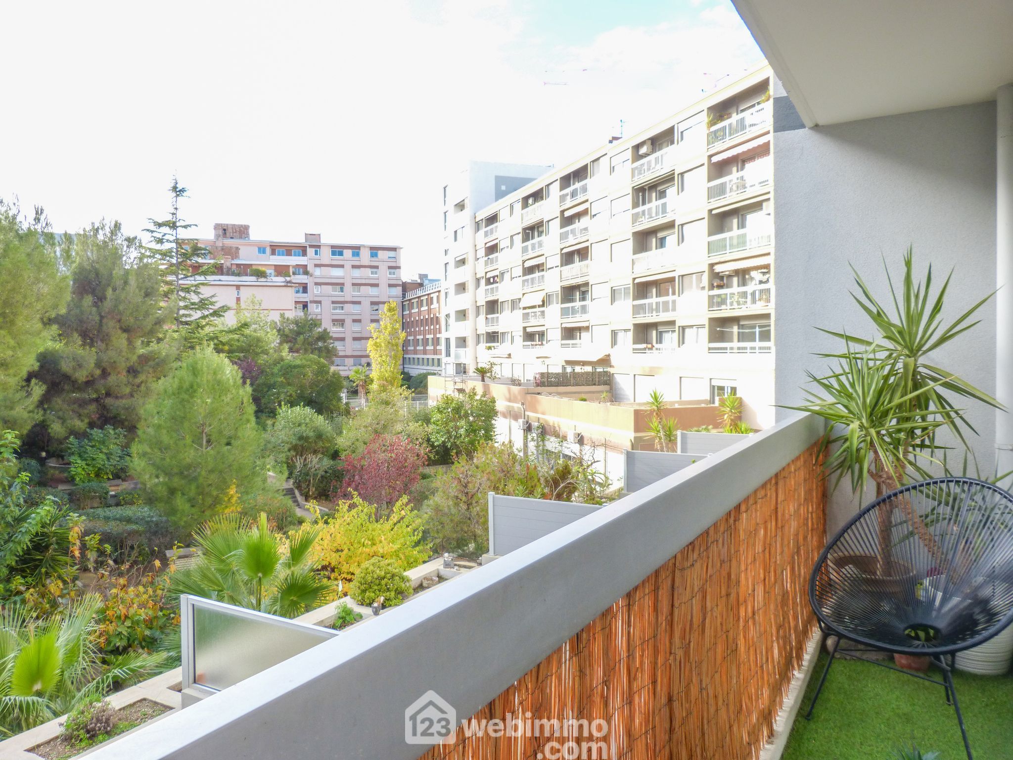 Très beau T2 entièrement rénové avec goût en 2ème étage de 42m2 ouvert sur un lumineux balcon exposé au sud-ouest donnant sur un parc arboré au calme absolu. Il se compose d'un vaste séjour cuisine de 26m2 avec une cuisine équipée de qualité. Chambre de 10,5 m2 avec placard aménagé donnant sur le jardin. Salle de bain avec WC. Chauffage individuel gaz. Résidence fermée. Charges 120€/mois.Taxe foncière 2022 938€. Visite virtuelle sur 123webimmo.com Marseille 8.
