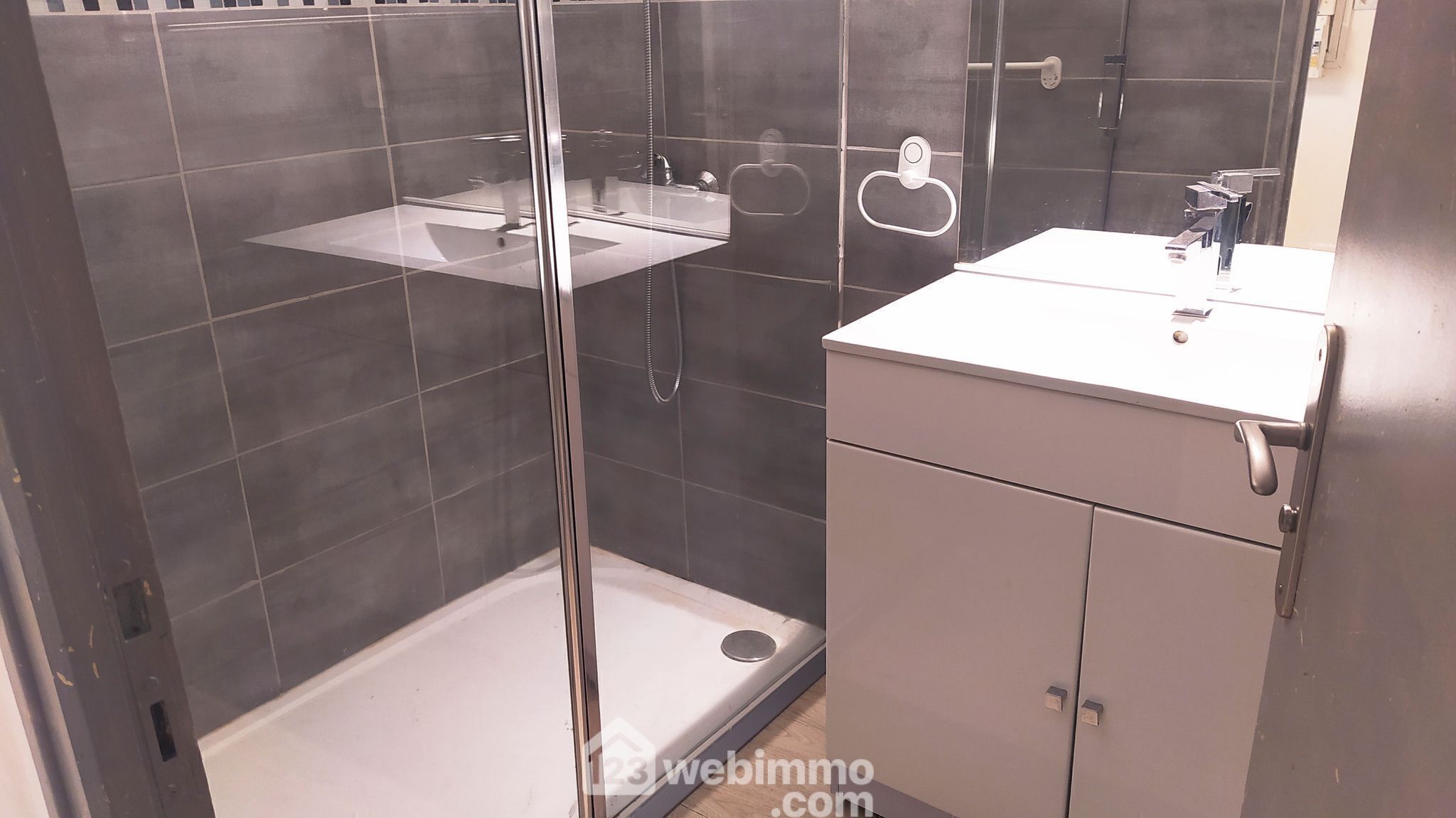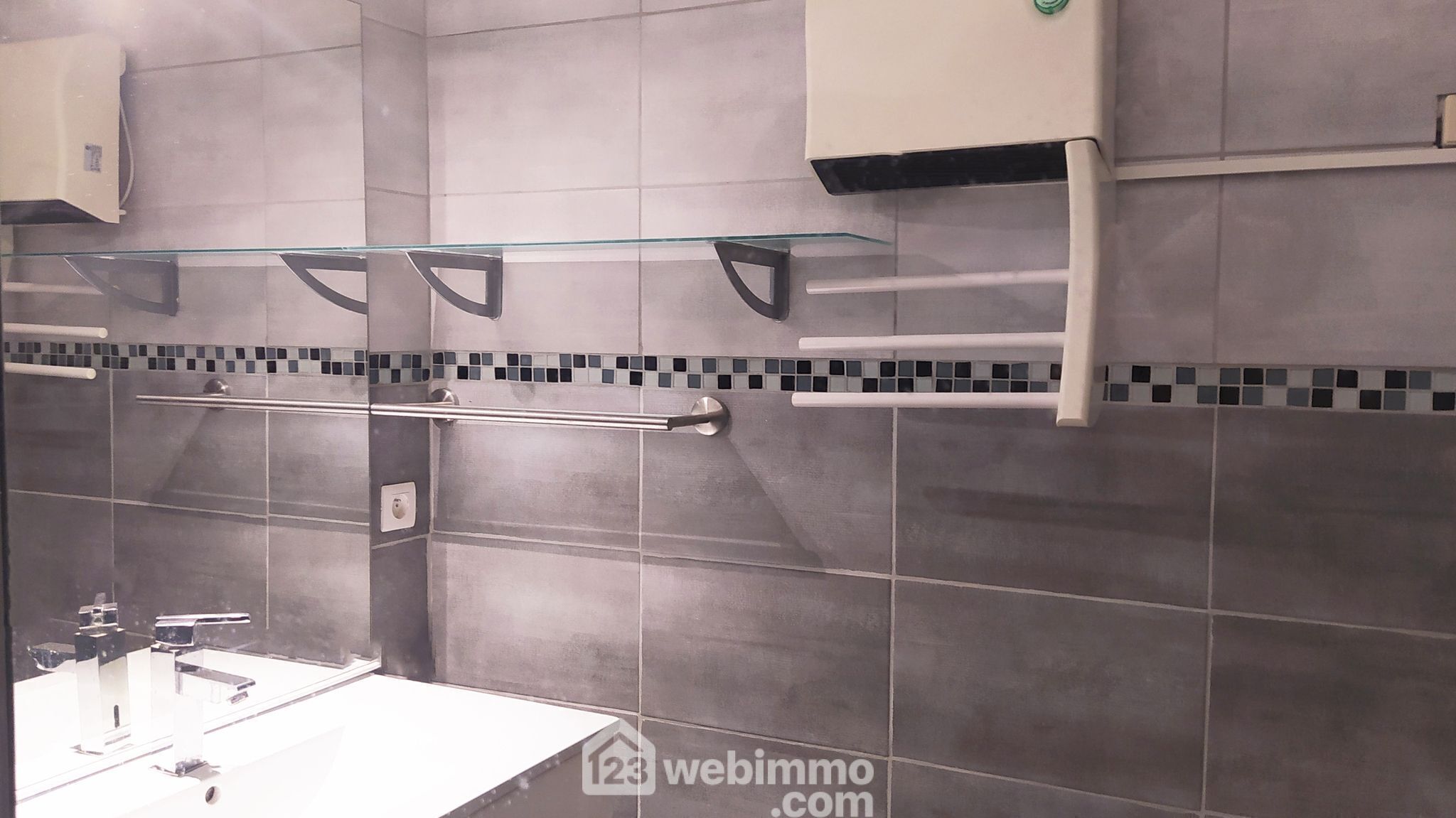 - Salle d'eau moderne de 3m² : Profitez d'une douche à l'italienne, d'une vasque design et d'un sèche-serviettes pour un confort optimal.