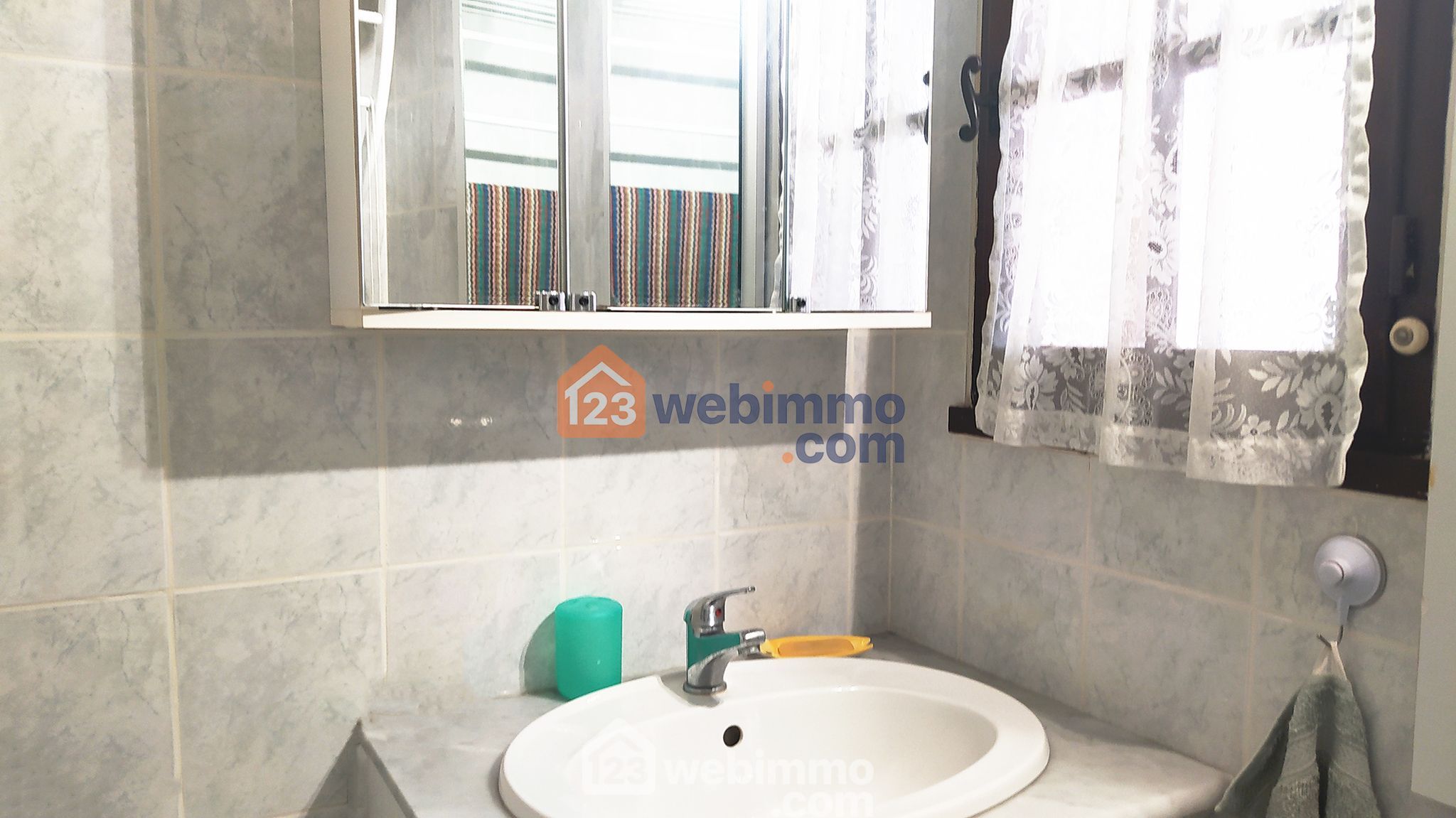 - 1 Salle d'eau de 3m² équipée d'une vasque sur meuble et d'une douche.