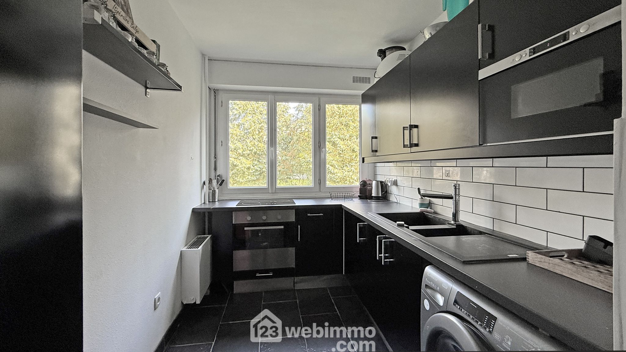 Idéalement situé dans une résidence avec parc et gardien, proche des commerces, appartement avec vue sur jardin et sans vis-à-vis. Double vitrage, cuisine équipée et nombreux rangements.