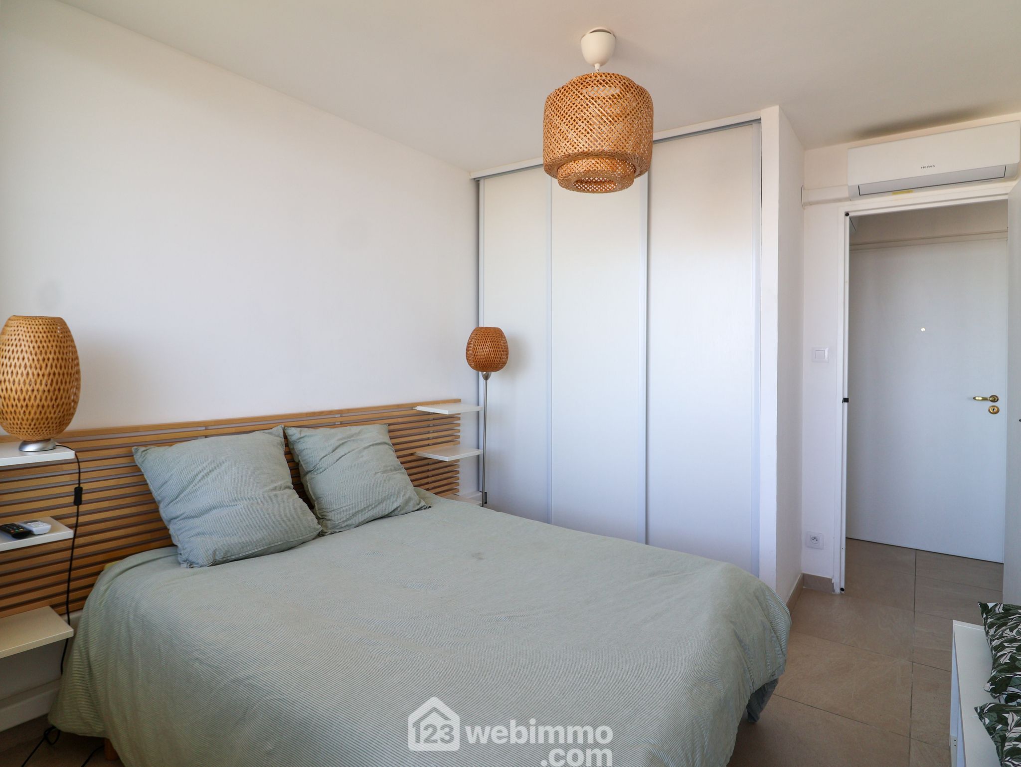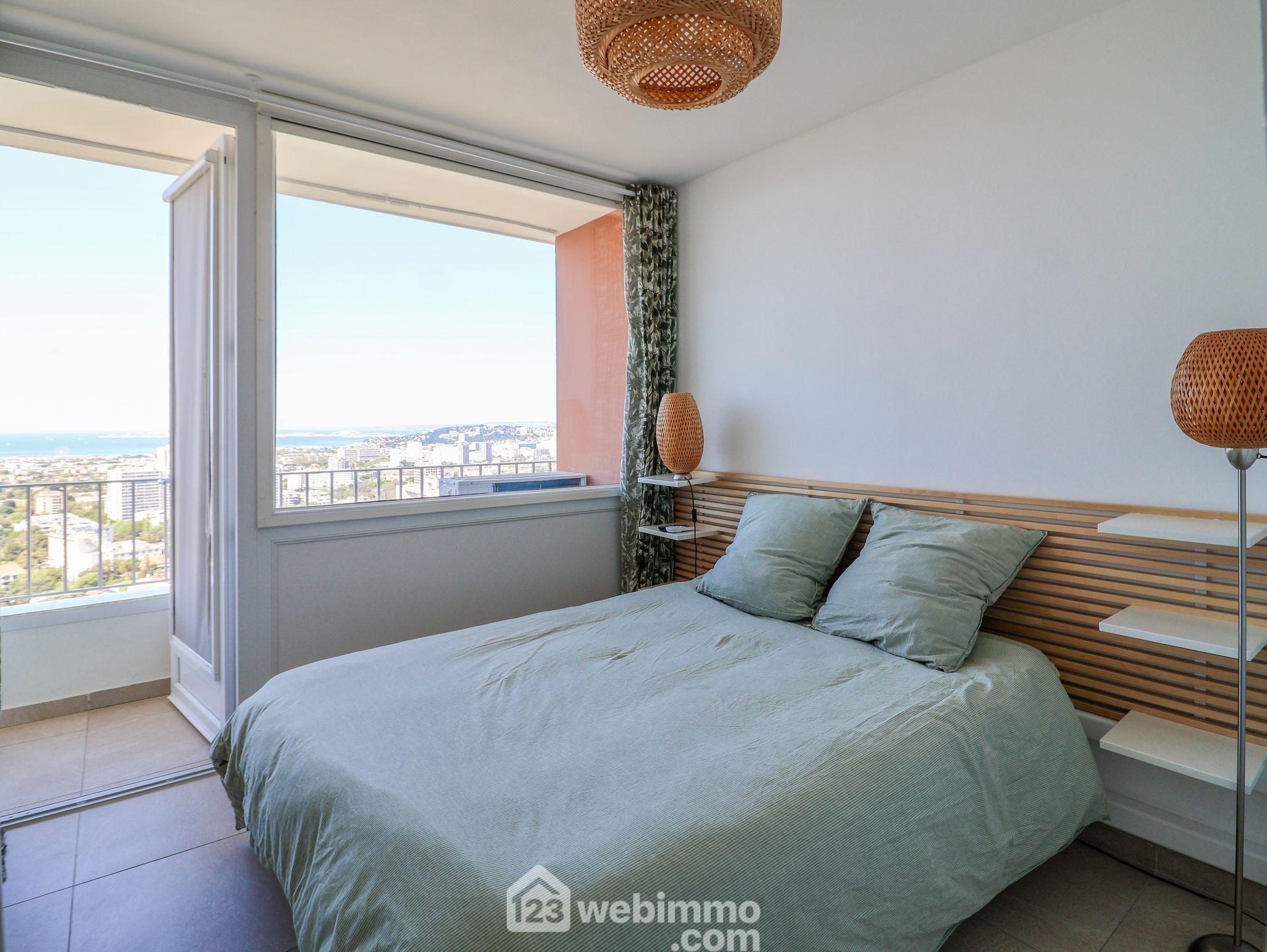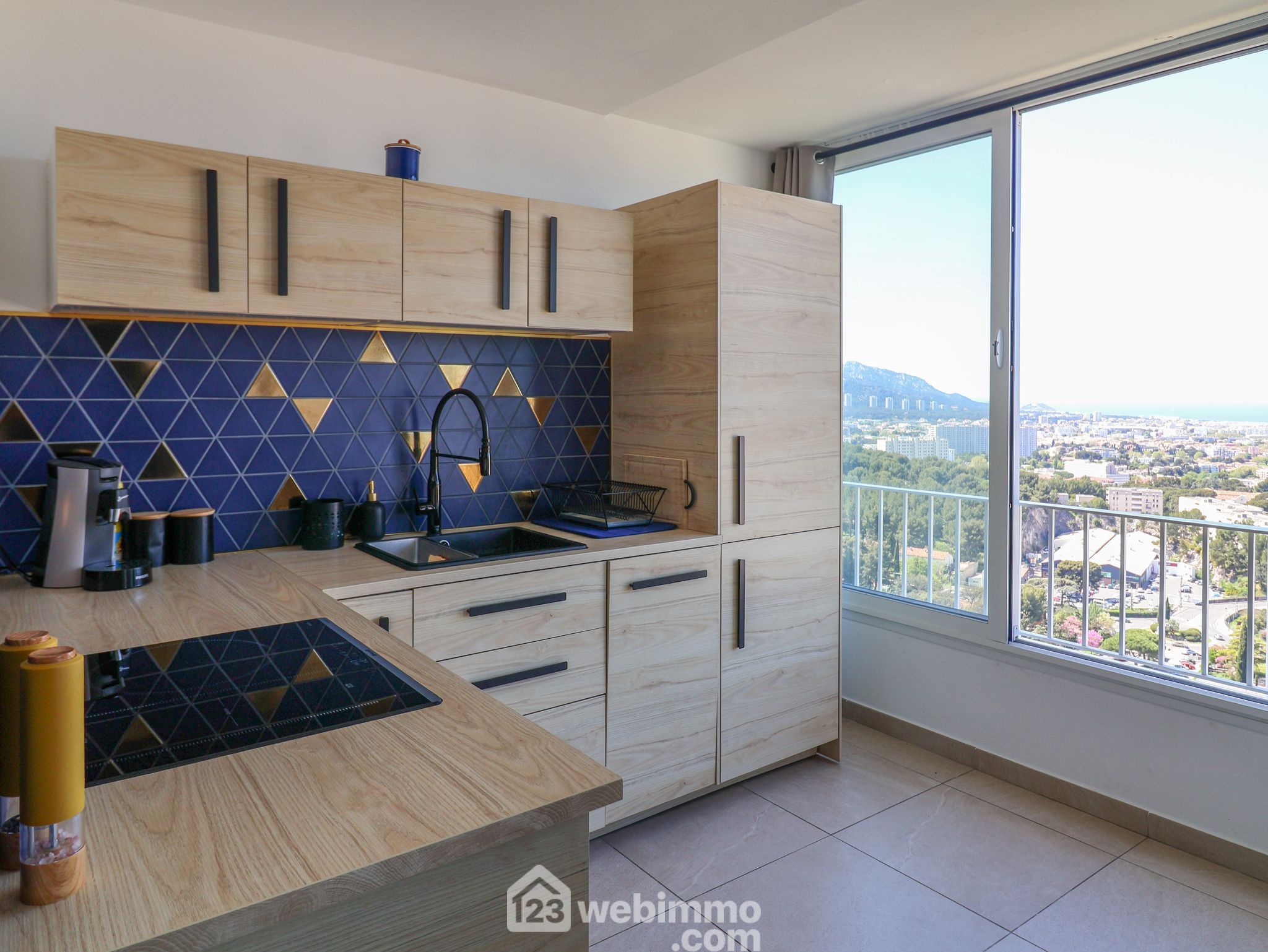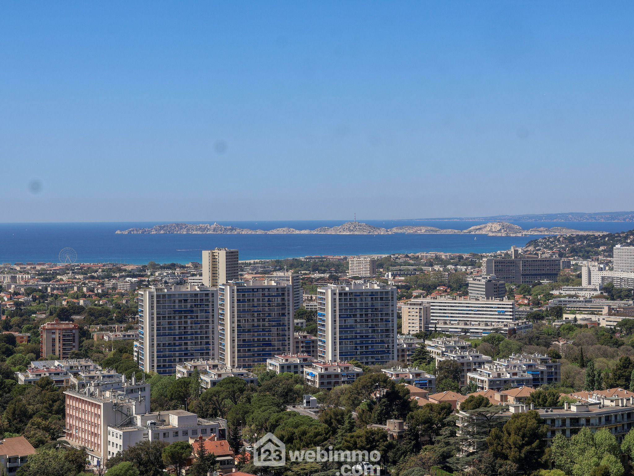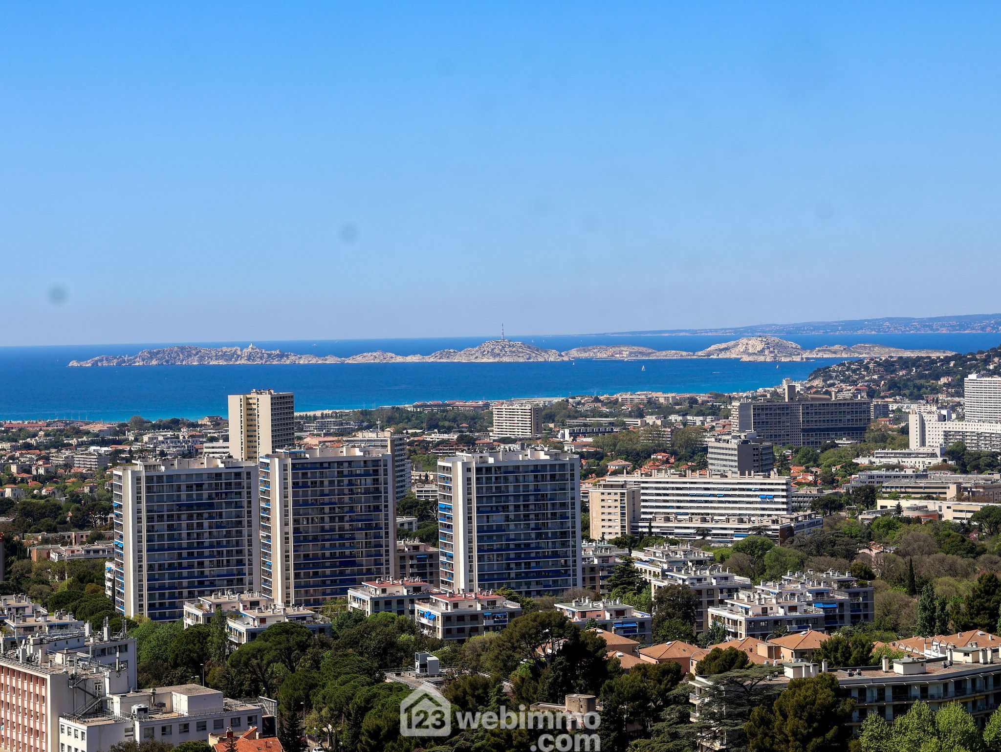 LE CABOT. EXCLUSIVITE. Résidence La Rouvière en étagé élevé. Très belle vue mer face aux Iles du Frioul. Appartement de type 2 entièrement rénové avec goût de 45,4m2 au calme exposé OUEST ouvert sur un lumineux balcon offrant un beau panorama des falaises de Marseilleveyre à l'Estaque. Idéalement distribué il se compose d'un séjour de 29m2 offrant une cuisine équipée. la chambre de 10m2 s'ouvre sur un balcon. Salle d'eau avec toilettes. Un cellier fermé sur le palier et une cave en sous-sol offrent beaucoup de rangements. Ascenseur. Double vitrage récent. Climatisation réversible. Porte blindée. Façades de l'immeuble rénovées. Fibre. Stationnement aisé dans la résidence fermée. Nombreux commerces au sein de la résidence. Charges 160€/mois. Taxe foncière 1250€. Visite virtuelle et plan disponibles. Les informations sur les risques auxquels ce bien est exposé sont disponibles sur le site Géorisques : www.georisques.gouv.fr