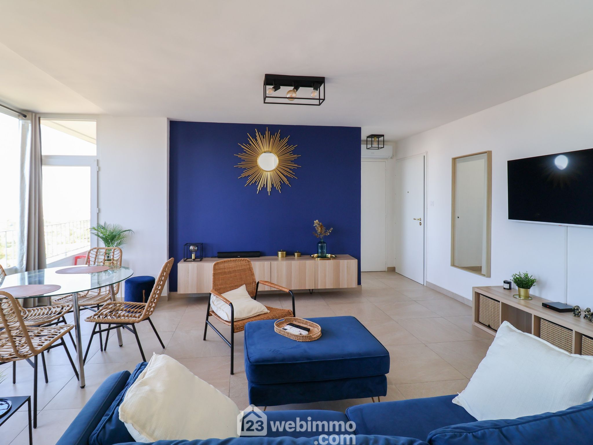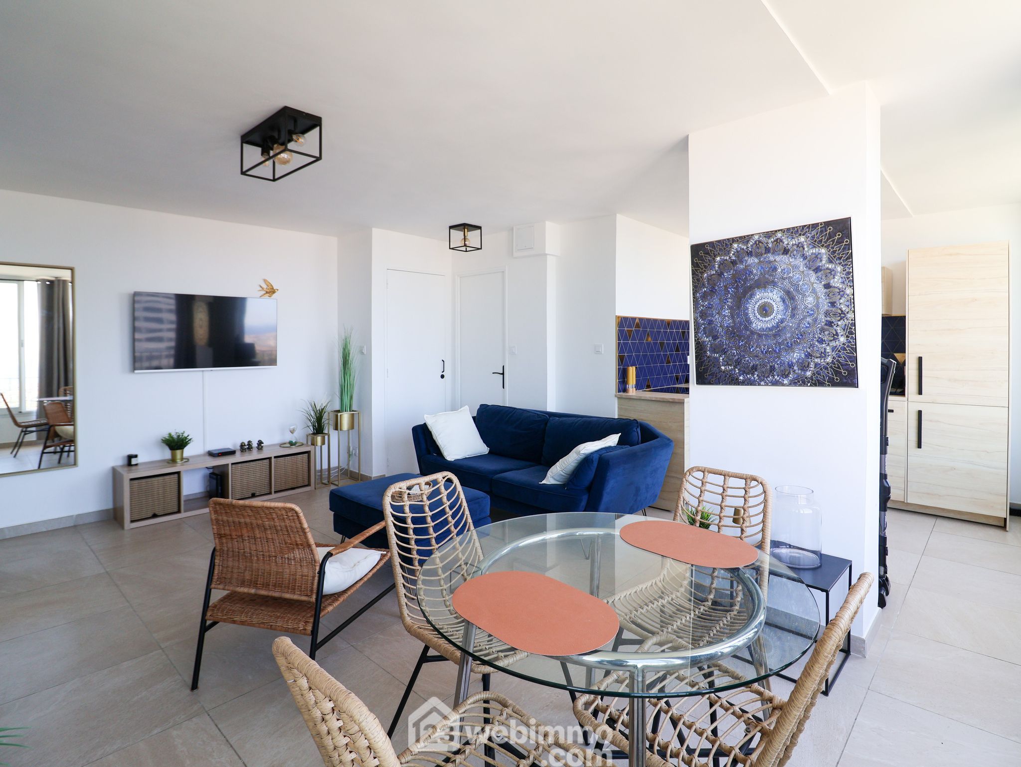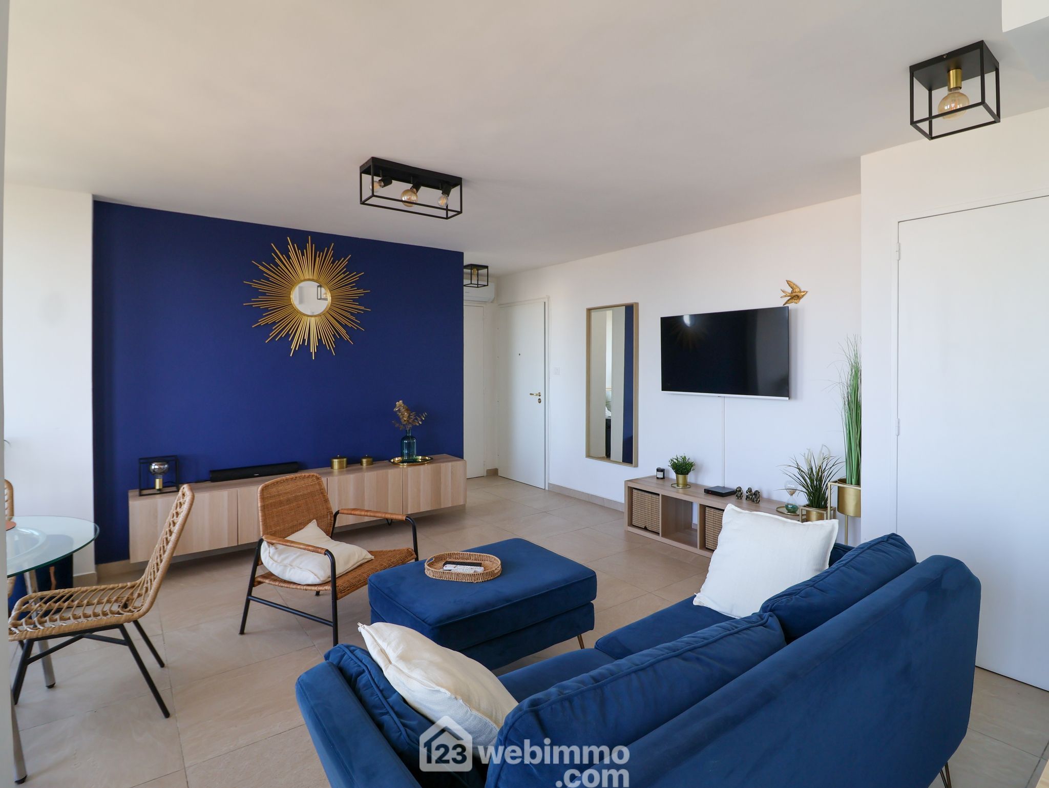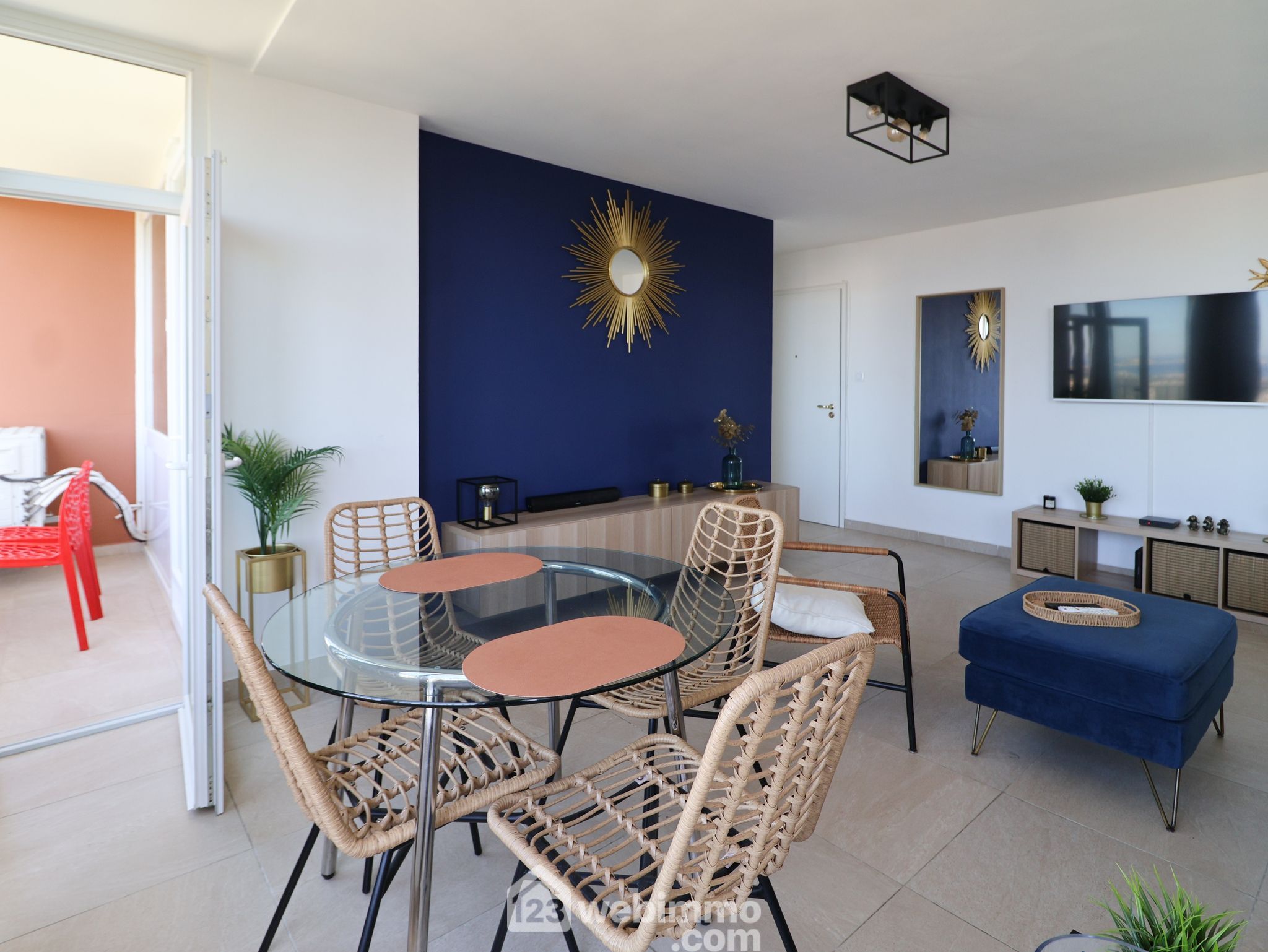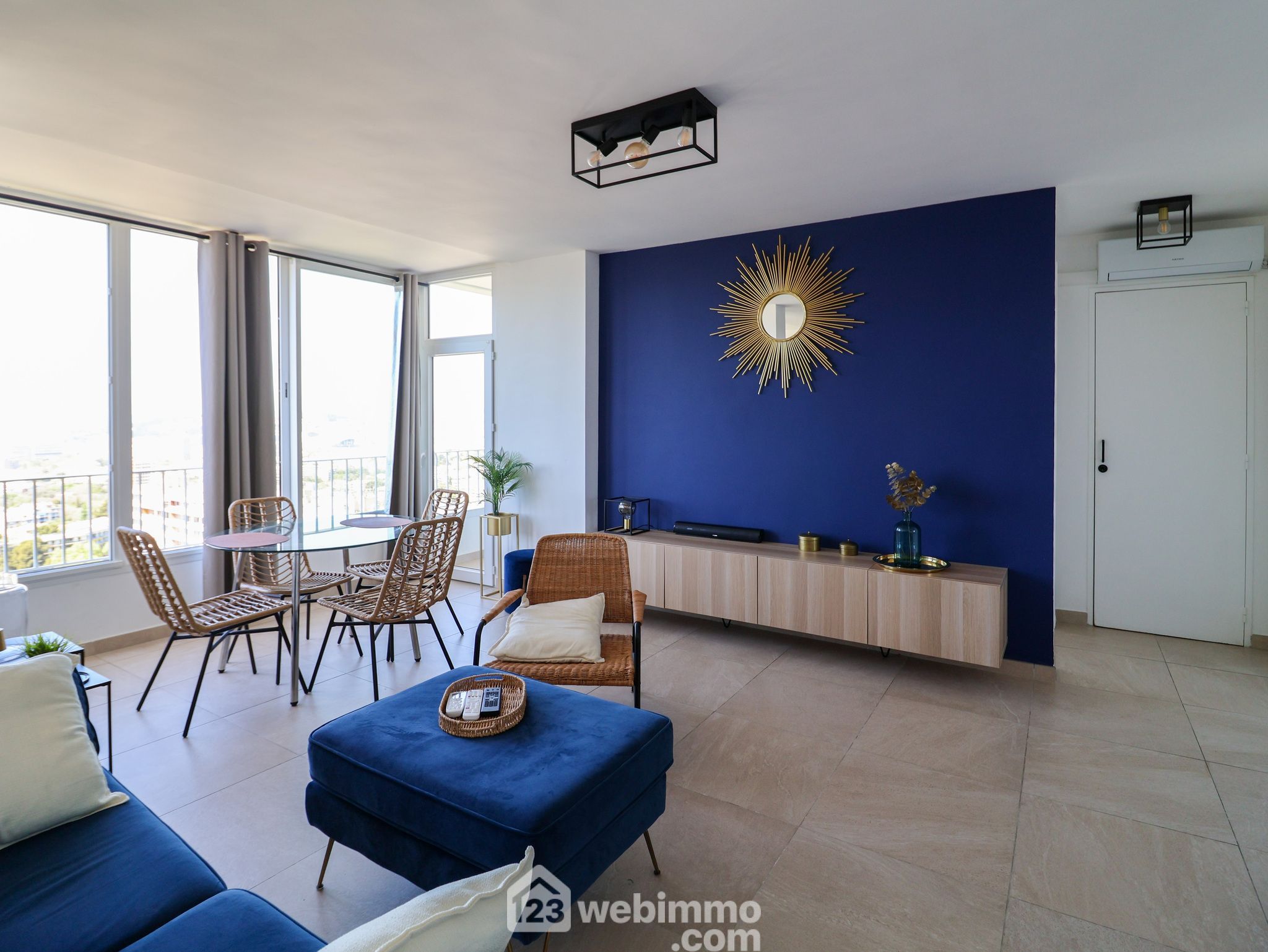 LE CABOT. EXCLUSIVITE. Résidence La Rouvière en étagé élevé. Très belle vue mer face aux Iles du Frioul. Appartement de type 2 entièrement rénové avec goût de 45,4m2 au calme exposé OUEST ouvert sur un lumineux balcon offrant un beau panorama des falaises de Marseilleveyre à l'Estaque. Idéalement distribué il se compose d'un séjour de 29m2 offrant une cuisine équipée. la chambre de 10m2 s'ouvre sur un balcon. Salle d'eau avec toilettes. Un cellier fermé sur le palier et une cave en sous-sol offrent beaucoup de rangements. Ascenseur. Double vitrage récent. Climatisation réversible. Porte blindée. Façades de l'immeuble rénovées. Fibre. Stationnement aisé dans la résidence fermée. Nombreux commerces au sein de la résidence. Charges 160€/mois. Taxe foncière 1250€. Visite virtuelle et plan disponibles. Les informations sur les risques auxquels ce bien est exposé sont disponibles sur le site Géorisques : www.georisques.gouv.fr