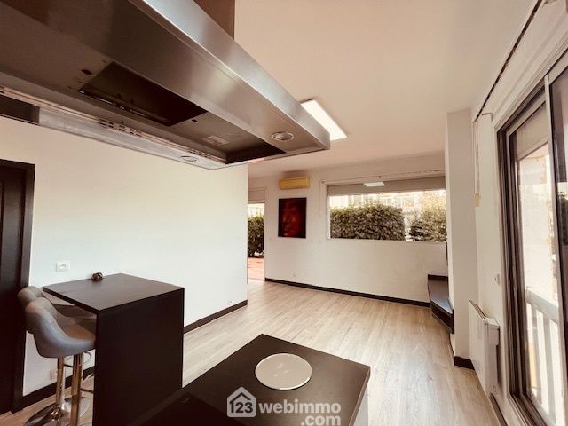 Hall d'entrée desservant une lumineuse pièce de vie cuisine ouverte équipée aménagée, 1 chambre , 1 cabine et une salle d'eau avec wc.