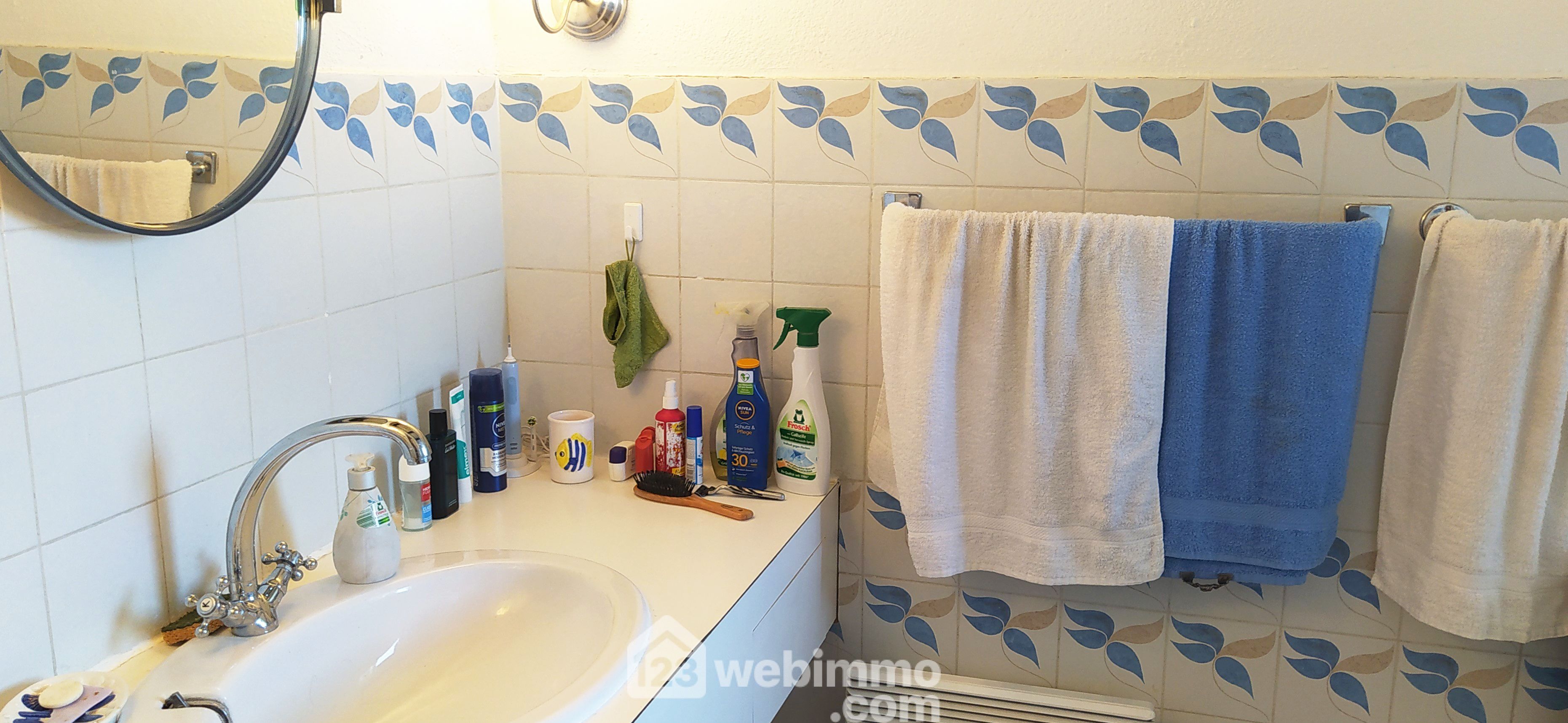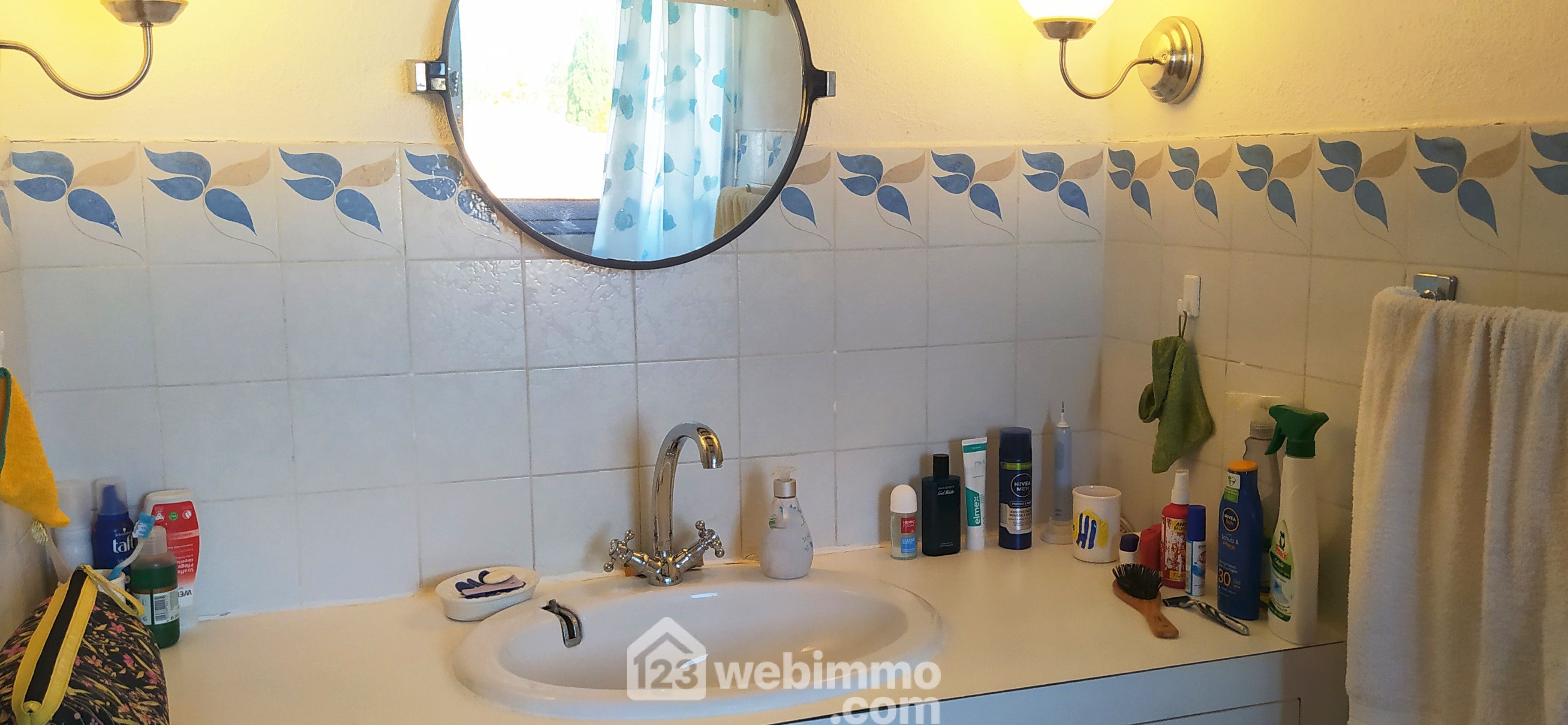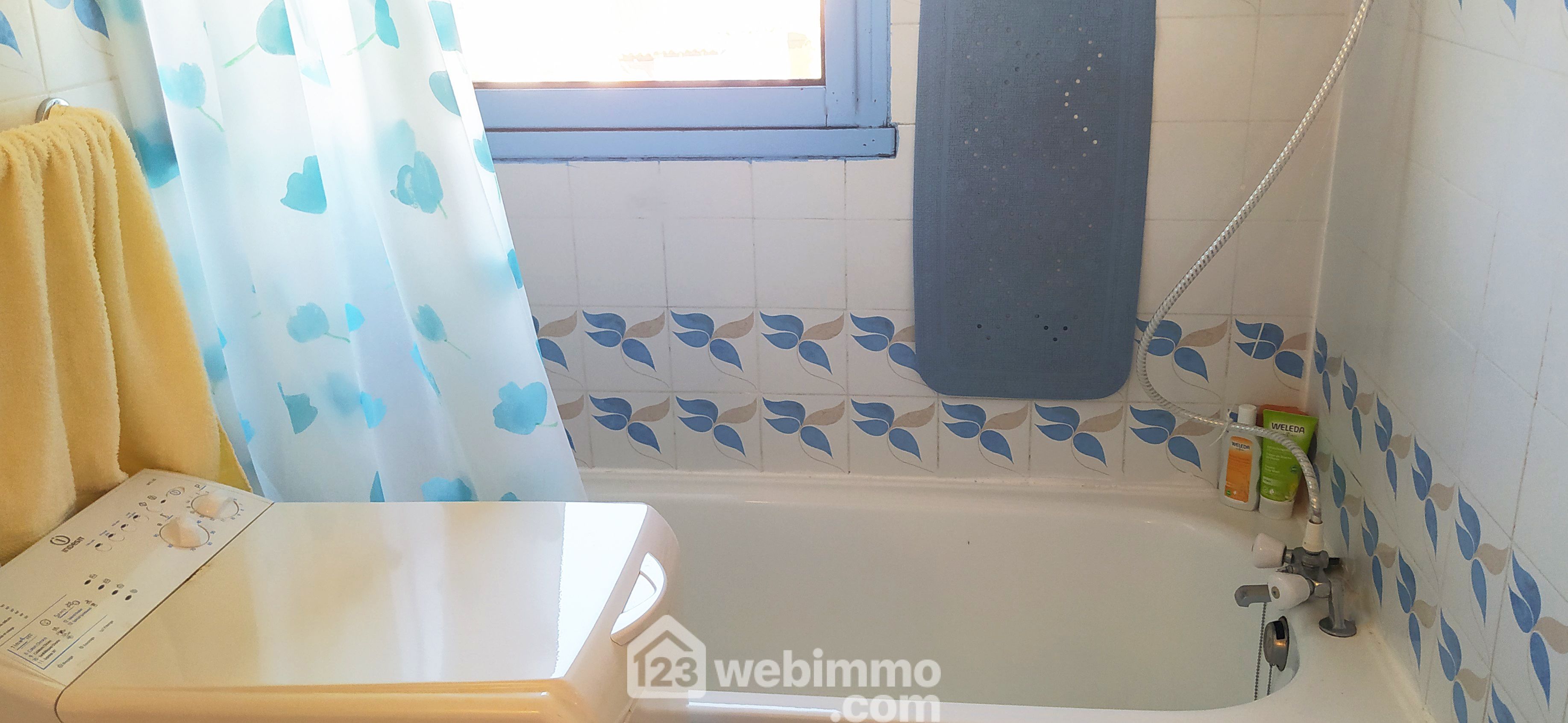 - 1 Salle de bain de 4m², comprenant une baignoire, une vasque sur meuble.