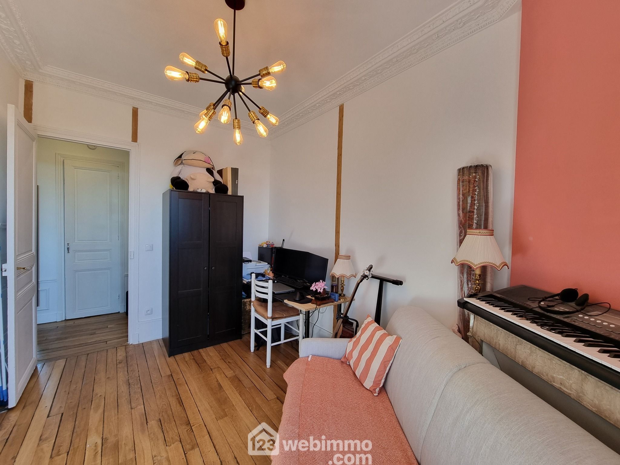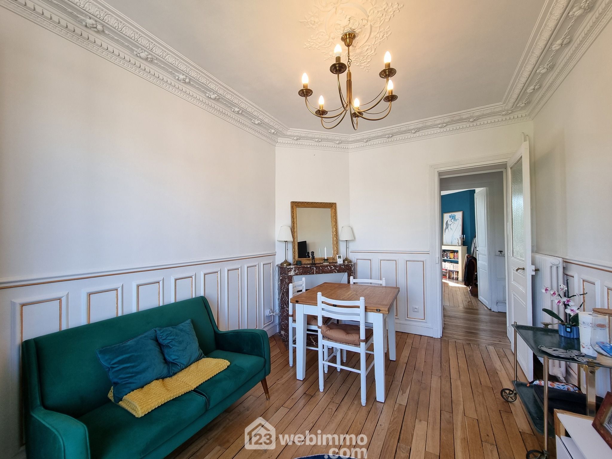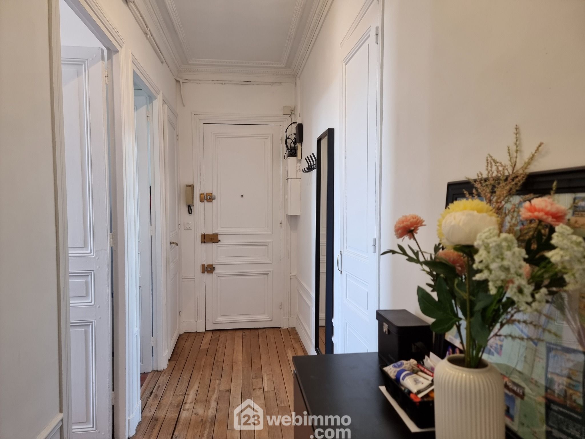 Situé dans un immeuble ancien, de caractère datant de 1920, cet appartement traversant au 4ème étage offre une vue agréable et bénéficie de splendides moulures en parfait état, ajoutant une touche d’élégance à l’intérieur.