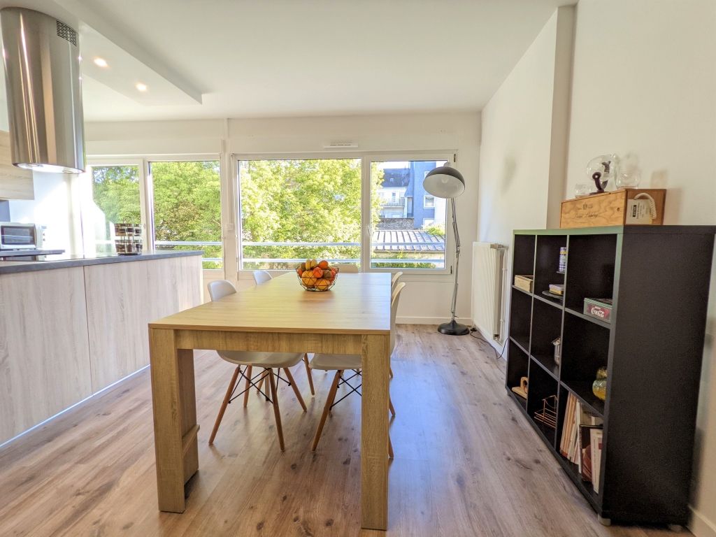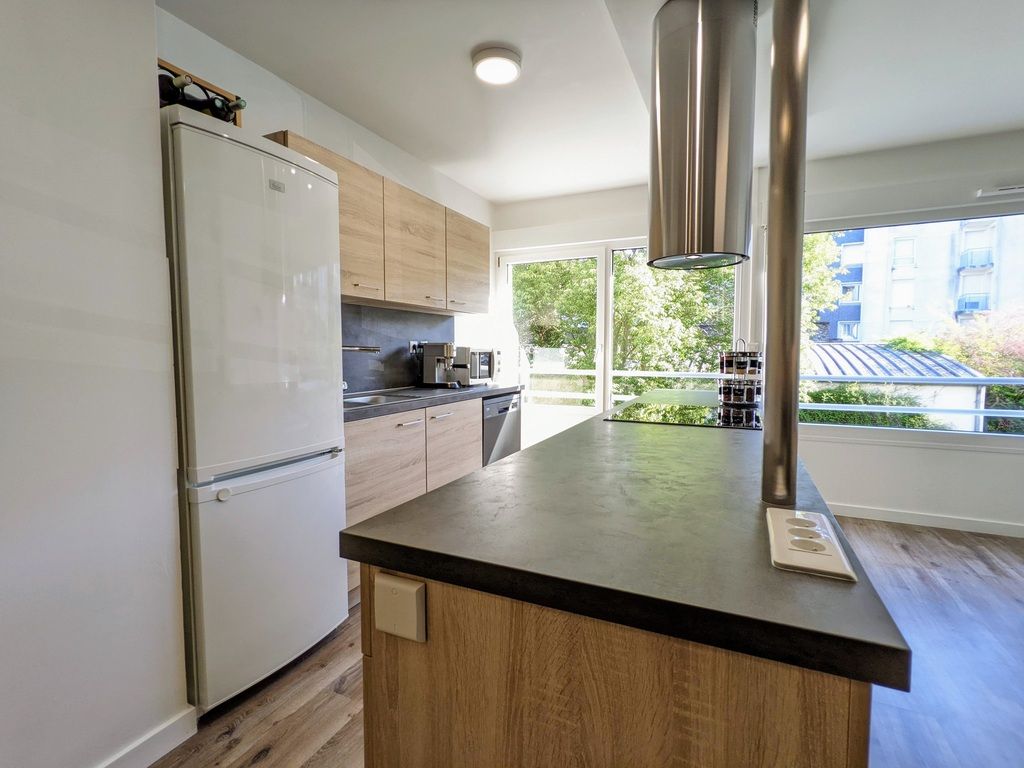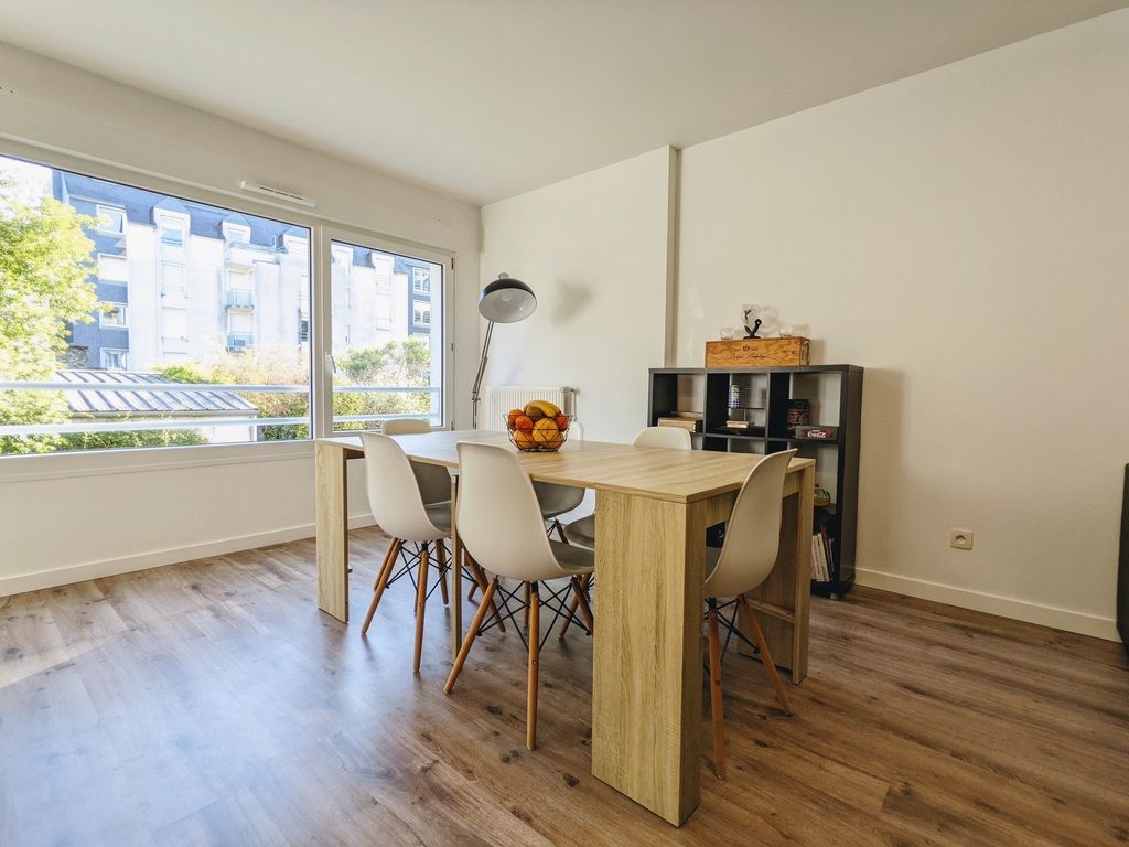 Angers - Appartement T2 rénové entre 2017 et 2020. Aucun travaux à prévoir. Grand salon-séjour lumineux de 37 m² ouvert sur la cuisine aménagée et équipée (four, plaque à induction, hotte aspirante, lave-vaisselle). Un couloir avec placard distribue la salle de douche récente avec WC suspendus, et une chambre de 9.8 m² comportant un coin dressing. Résidence située dans une petite rue peu passante, l'appartement donne côté cour. Petite copropriété très calme de 1996, faibles charges. Chauffage et production d'eau chaude incluent dans les charges (chaudière à condensation remplacée en 2016). Emplacement de choix pour cet appartement situé à 5 minutes à pied de l'UCO et de l'ESA, et 10 minutes à pied du centre-ville. Local Vélo dans la copropriété. Vendu libre de toute occupation.