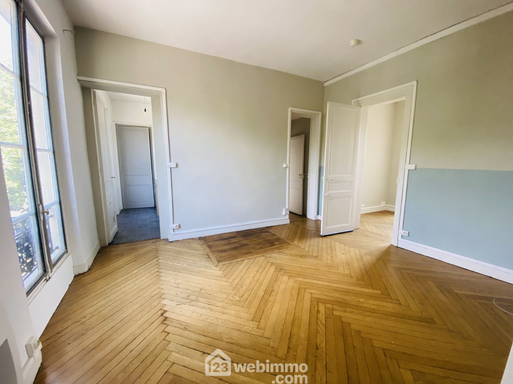 Actuellement, l'appartement est composé de deux chambres, d'une cuisine et d'une salle de bain. Cependant, il peut facilement retrouver son agencement d'origine pour offrir un séjour spacieux de 25 m² avec parquet ancien et une chambre confortable de 10 m².