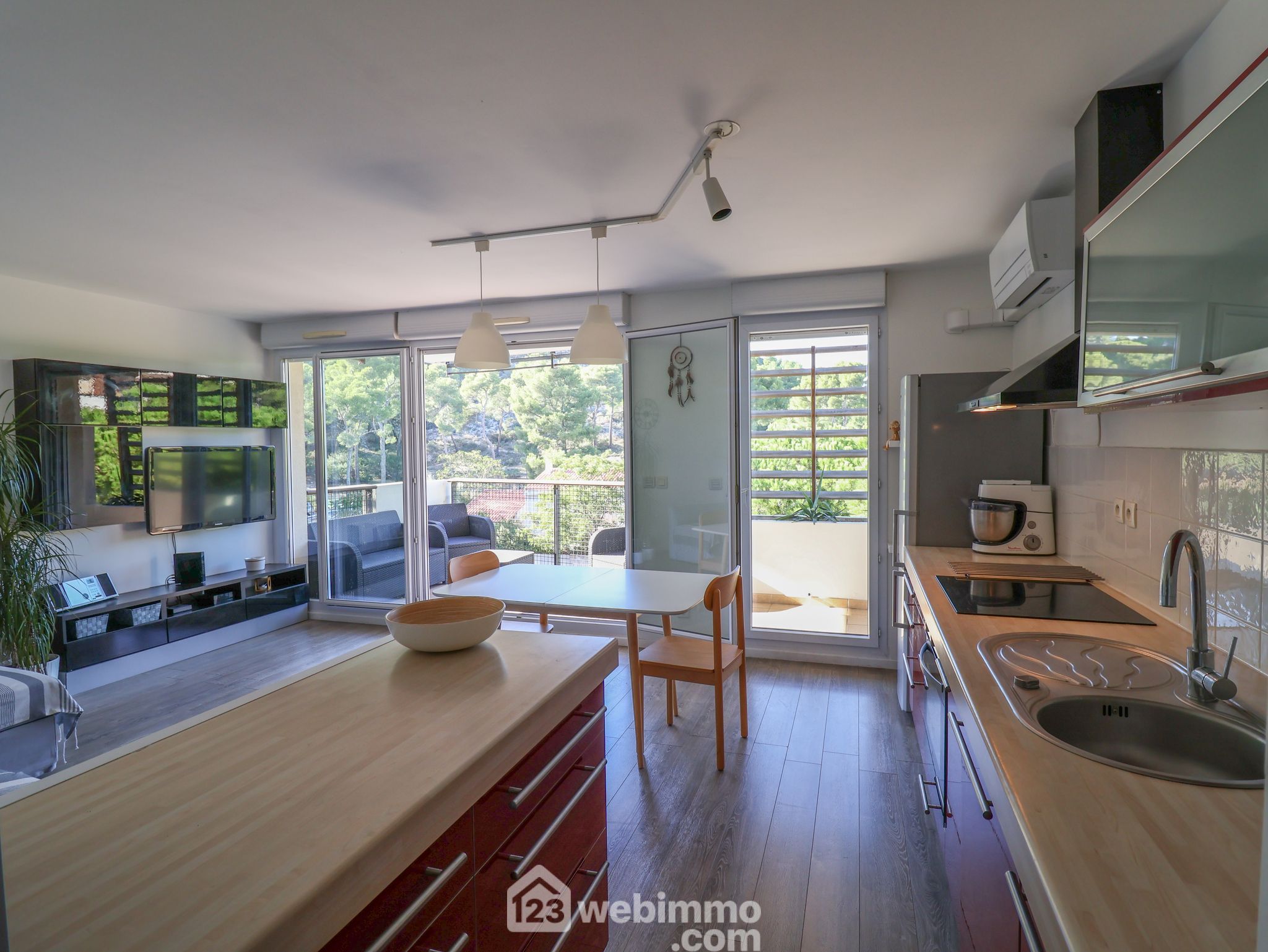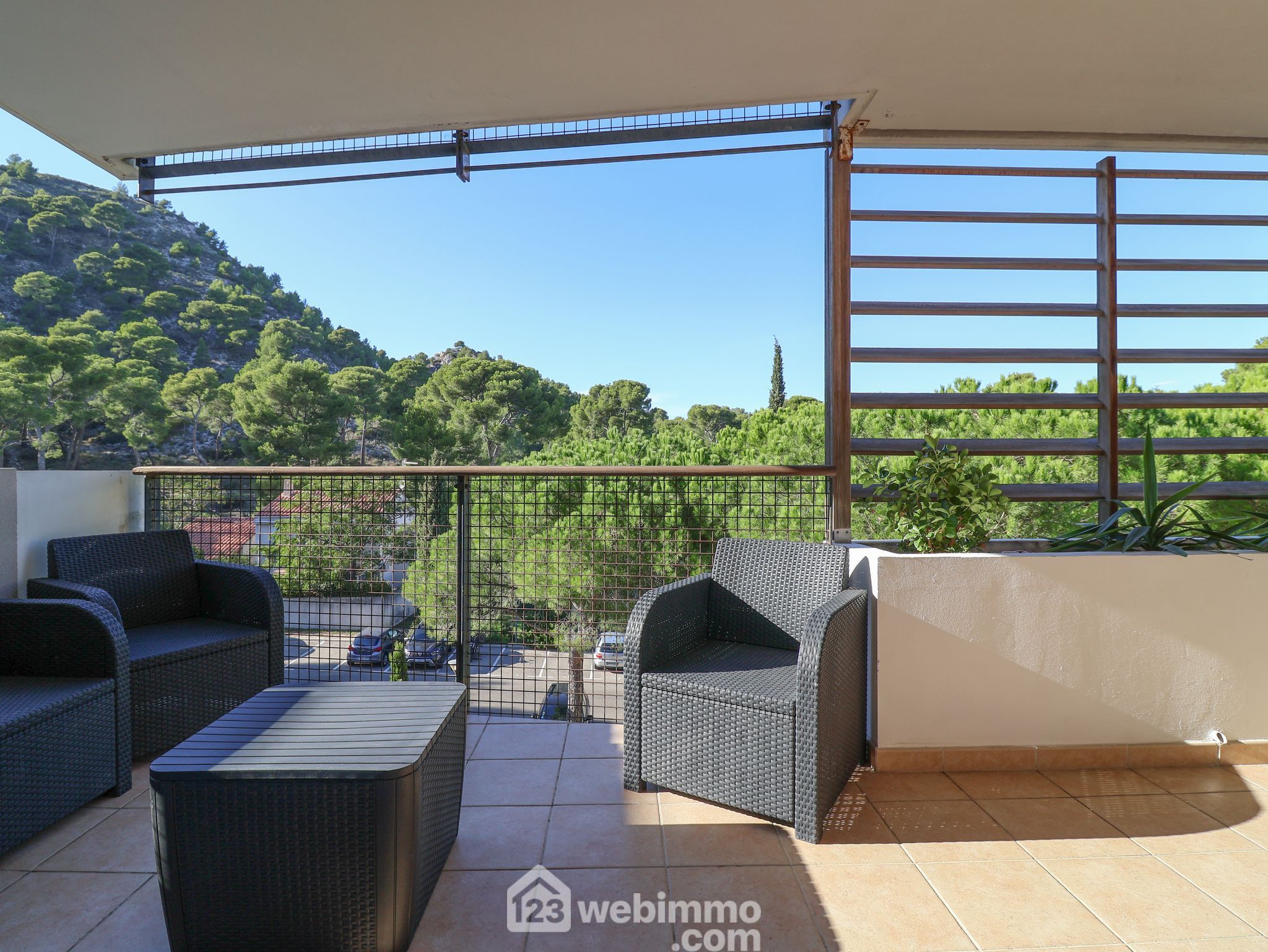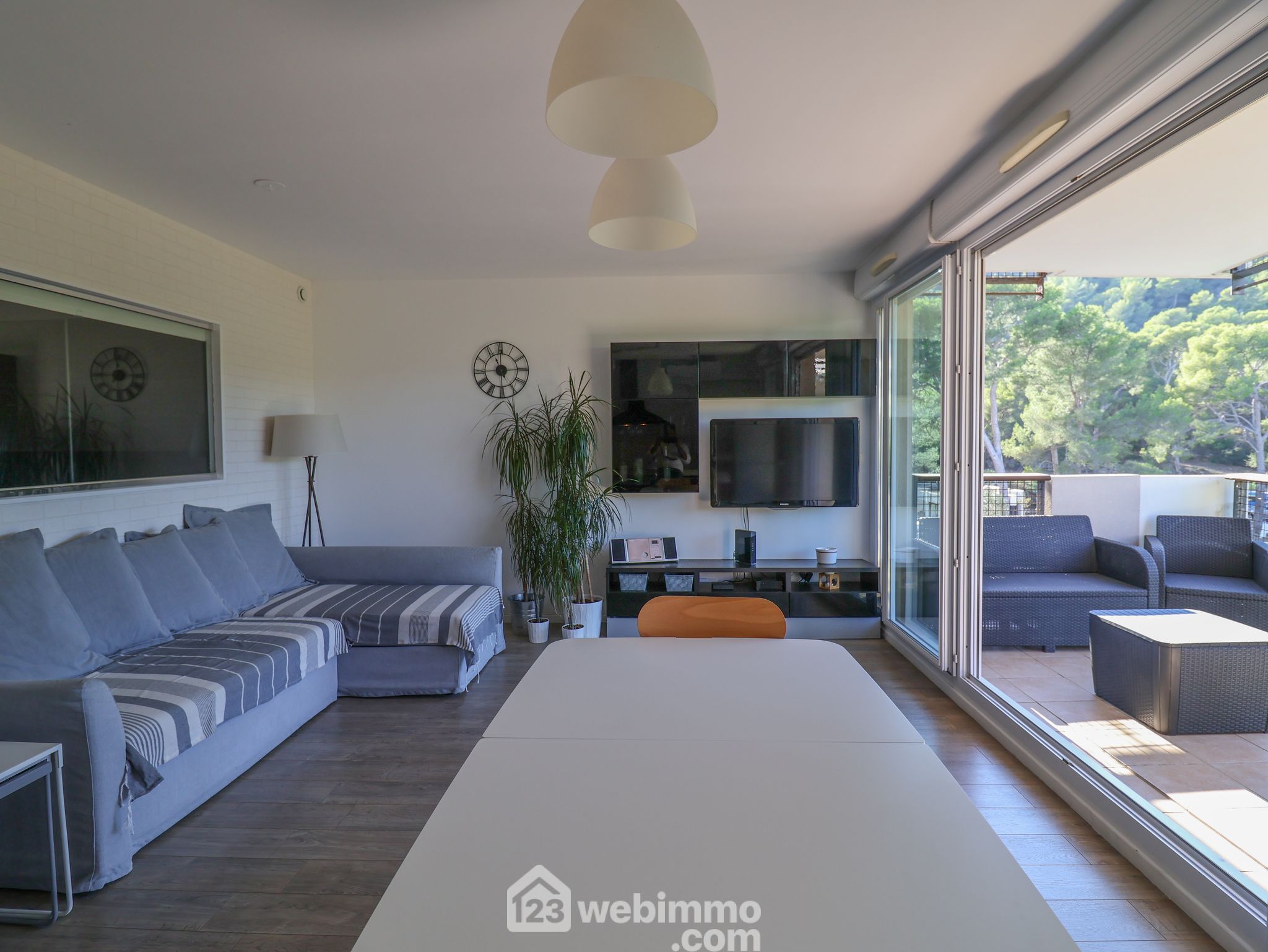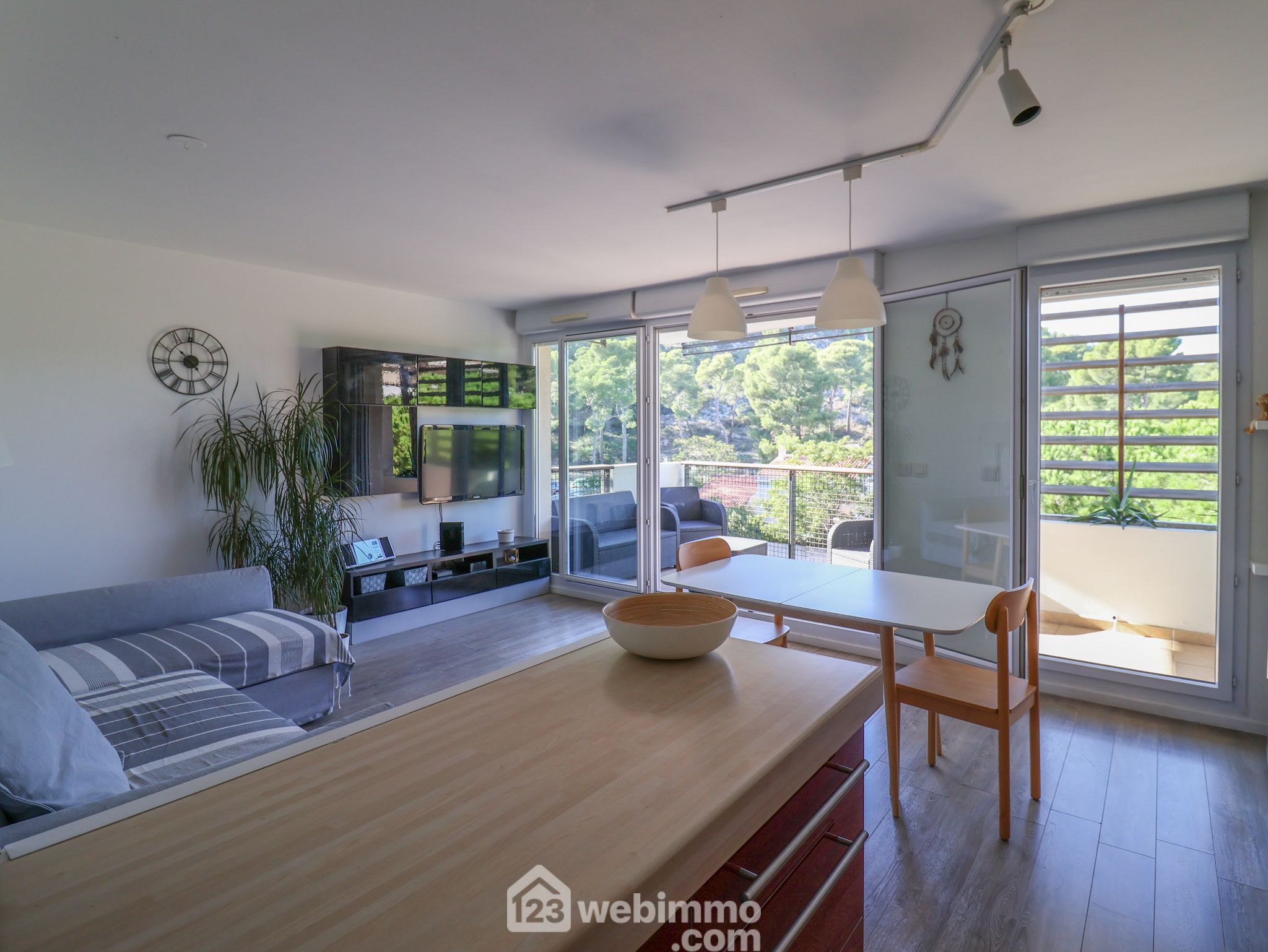 EXCLUSIVITÉ. PARC DU ROY D'ESPAGNE, allée Cervantes au calme absolu, résidence de 2005 au pied du parc des Calanques, très belle vue dégagée. Charmant Type 2/3 de 53m2 en très bon état en 3ème étage sur 4 ouvert sur une terrasse de 10m2. Il se compose d'un séjour avec une cuisine équipée de 24m2, d'une chambre de 10m2 et d'une salle de bains avec toilettes. Aménagé en type 3 Avec un bureau de 8m2 il peut être facilement réaménagé en type 2 d'un séjour de 32m2 . Nombreux placards aménagés fonctionnels. Double vitrage. Ascenseur. Résidence fermée au sein d'une allée close. Place de parking privative incluse dans le prix. Charges mensuelles 112€/mois. Taxe foncière 963€. VISITE VIRTUELLE SUR L'AGENCE 123WEBIMMO MARSEILLE 9.