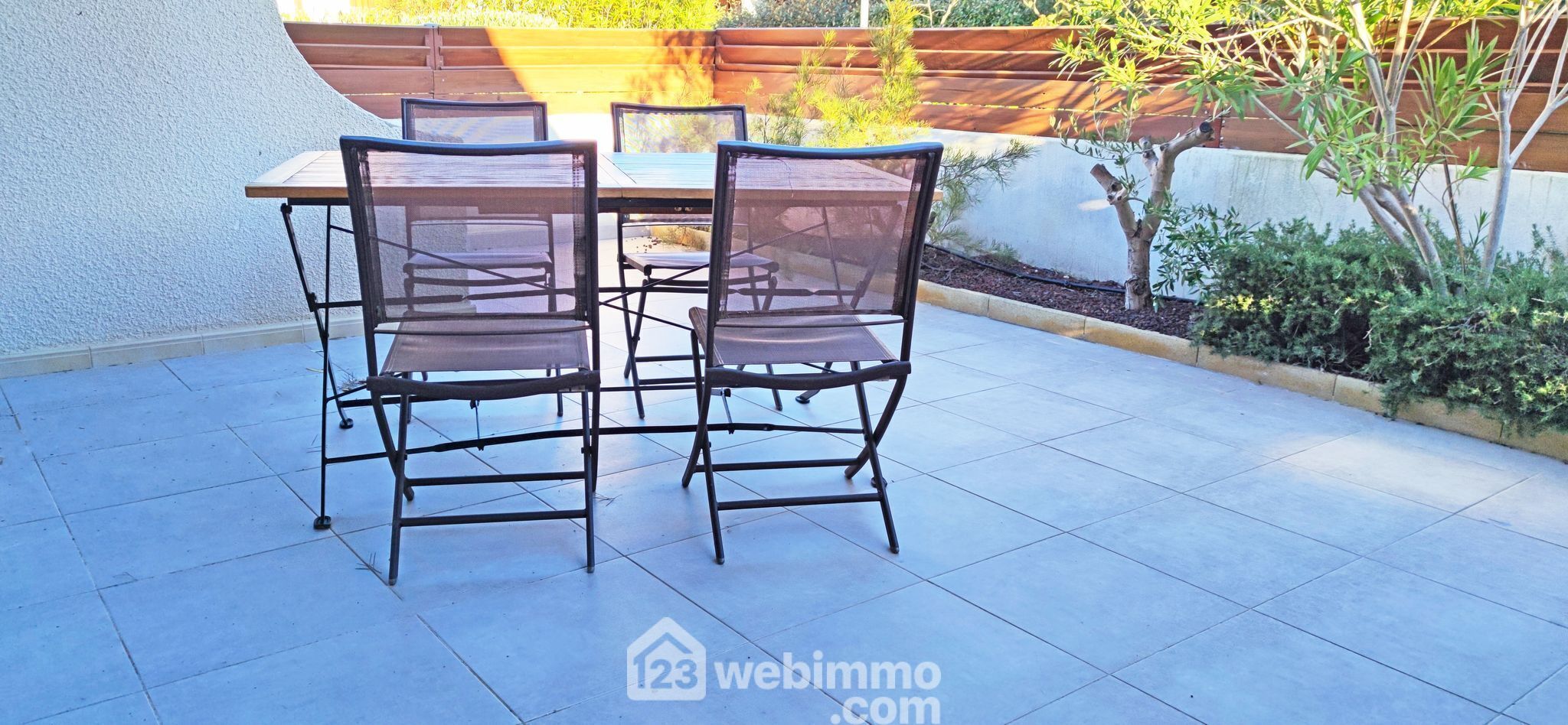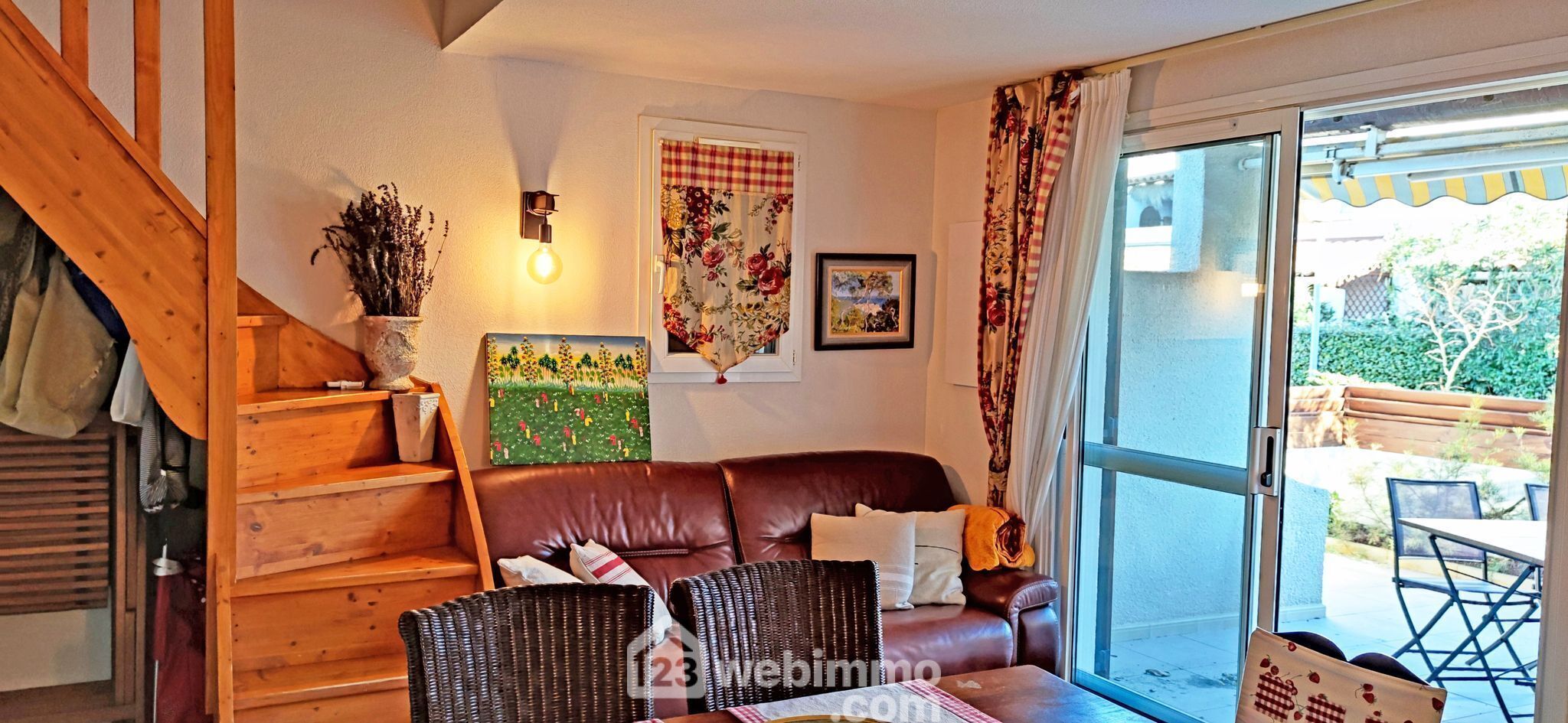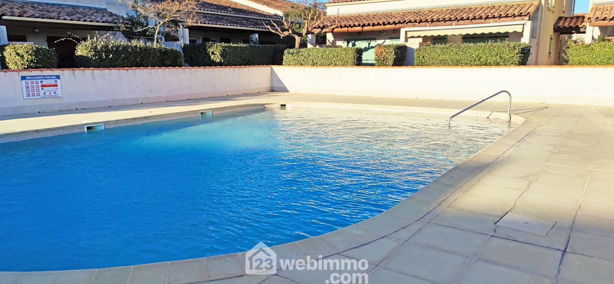 Appartement T/3 de 56m² en RdC + 1 niveau, avec cour/terrasse, parking privatif et piscine privée à la copro.