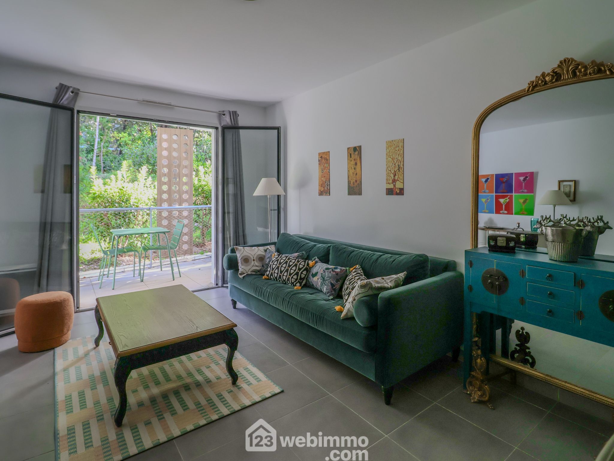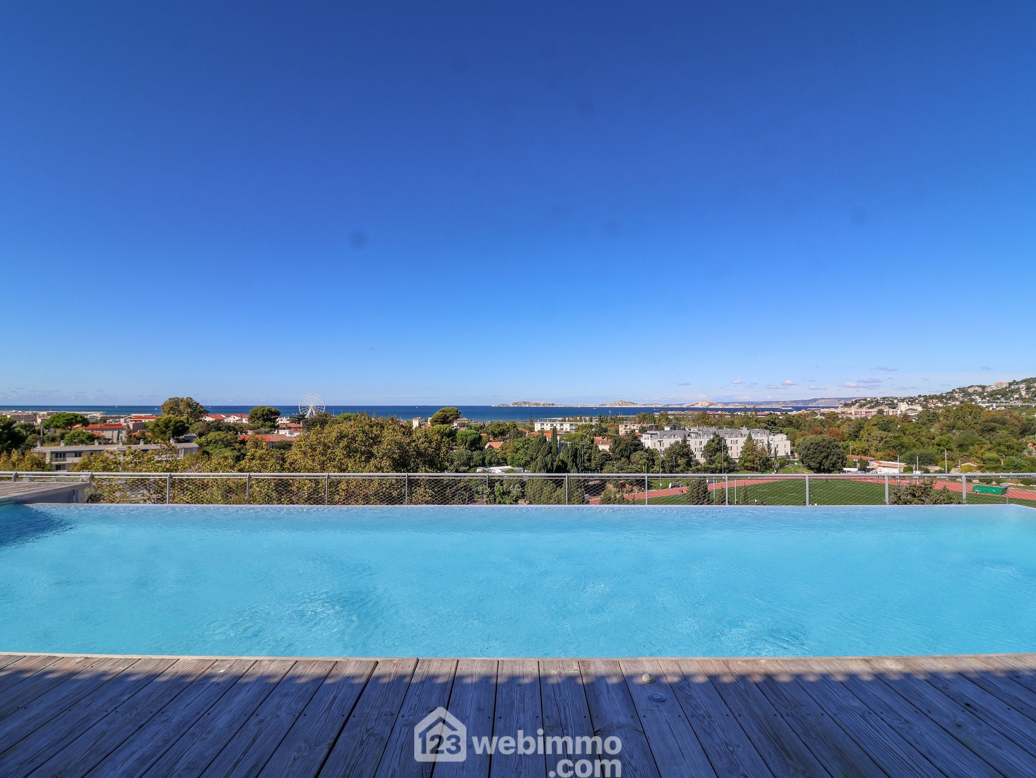 SAINTE ANNE. Dans un écrin de verdure au calme absolu au sein de la résidence Art'chipel de 2021 à l'architecture contemporaine. Très beau type 3 de 54m2 ouvert sur une terrasse de 15m2 en rez-de-chaussée sans vis-à-vis. Il se compose d'un séjour avec une cuisine équipée ouvert sur la terrasse. La partie nuit offre deux chambres donnant également sur la terrasse. Une salle de douche avec toilette complète l'ensemble. La piscine sur le toit avec vue imprenable sur les iles du Frioul et les Calanques est accessible uniquement aux résidents de l’immeuble. Place de stationnement en sous-sol disponible en sus.