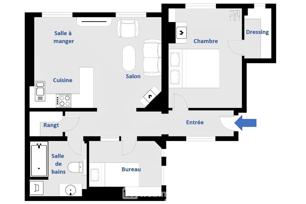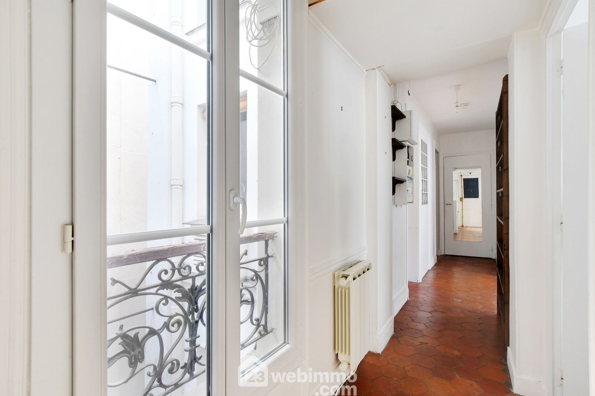 Situé au 6ème étage (sur 7) d’un bel immeuble en pierre de taille sécurisé et très bien entretenu, appartement traversant donnant exclusivement des cours (calme). Avec un agencement optimisé, cet appartement lumineux en exposition Sud-Ouest comprend : entrée, séjour avec cuisine américaine, chambre avec dressing, bureau (ou petite chambre), salle de bains (refaite à neuf récemment), rangement/penderie.