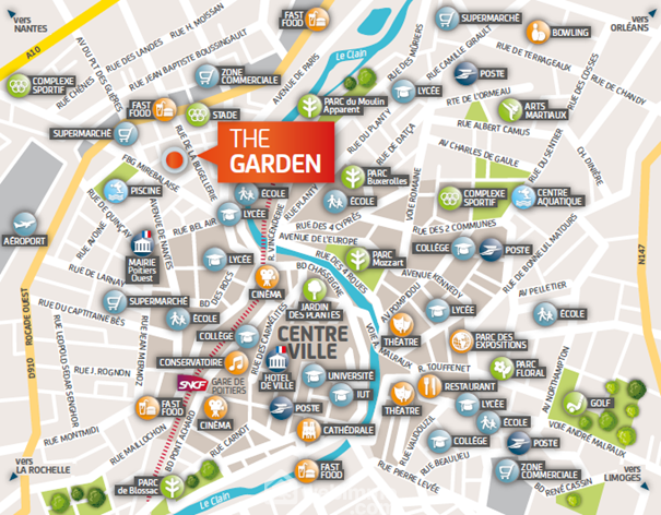 L'hyper centre est facilement accessible, moins de 10 minutes en voiture, la gare est à 2,5 km, l'accès à la sortie Ouest et ses zones économiques est rapide, un équilibre parfait entre tranquillité et dynamisme urbain.