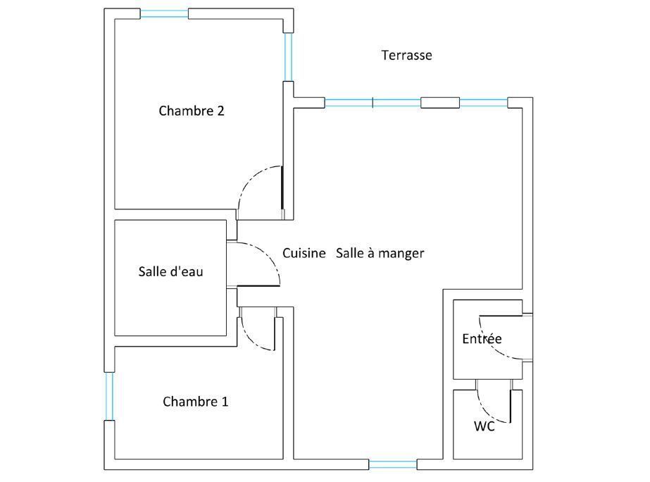 Au rez-de-chaussée d'une copropriété de 2009 renfermant 6 logements, l'appartement comprend une grande entrée avec dressing de 3m2, 2 chambres de 10m2 et 12m2, une pièce de vie de 27m2 avec cuisine aménagée ouverte, prolongé par une terrasse en rez-de-jardin de 8m2 et un jardin privatif. Une salle de douche de 4m2 et un WC séparé complètent l'appartement.