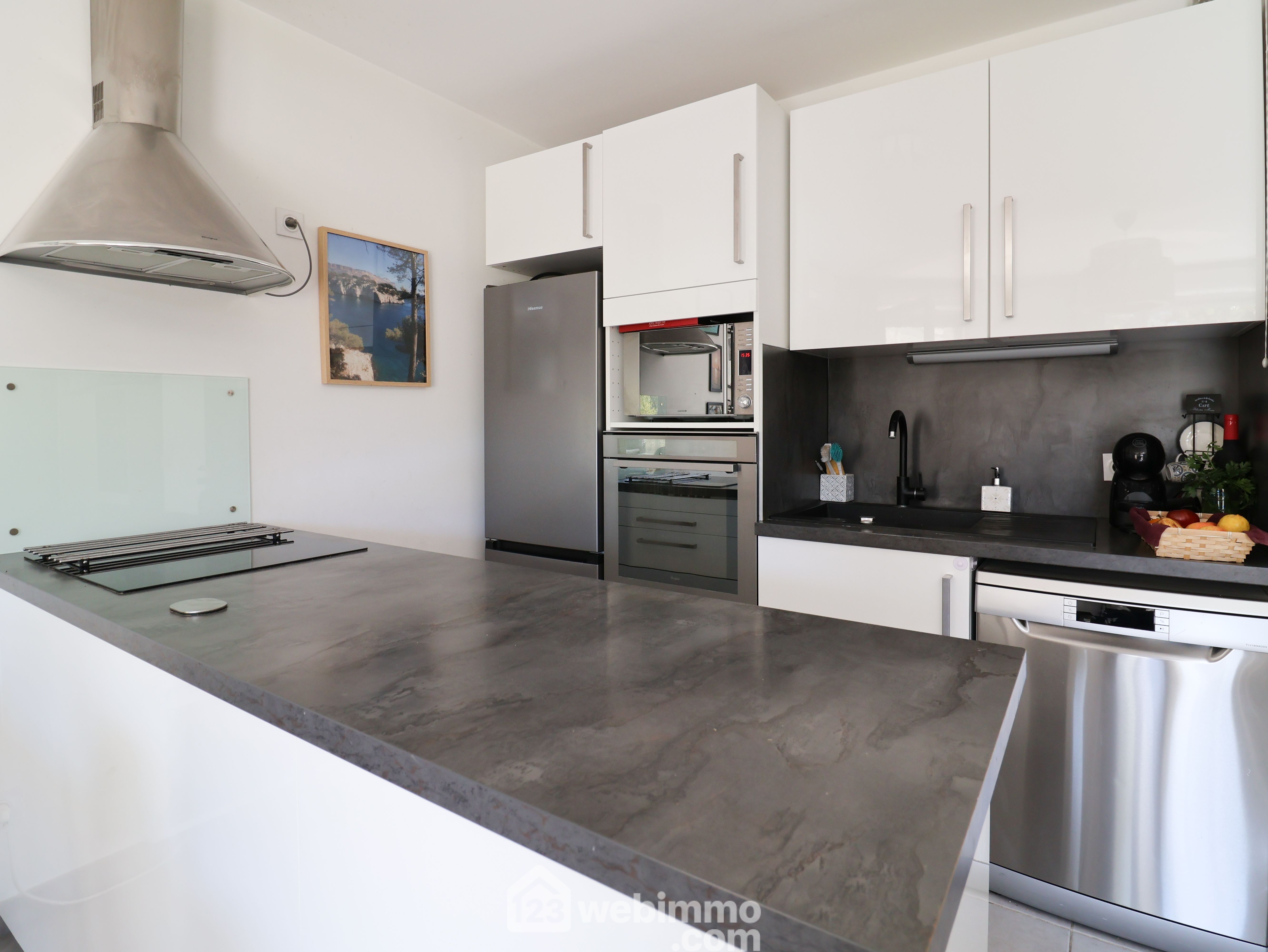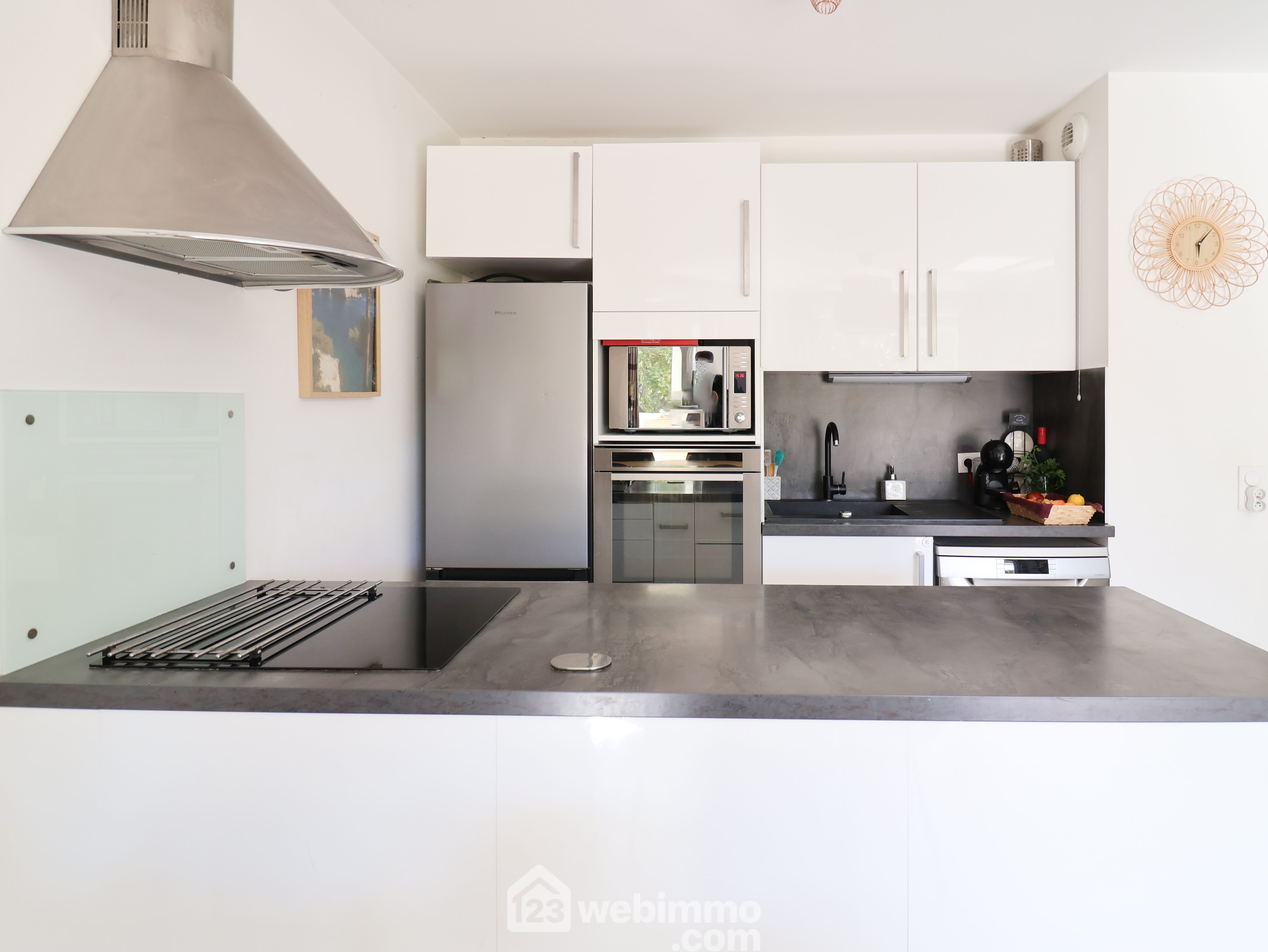 MAZARGUES. SOUS OFFRE. EXCLUSIVITE au fond d'une impasse au calme absolu tout près du noyau villageois. Dans une petite résidence arborée de 2016 à l'architecture contemporaine. Très beau T3 au 2ème étage sur 5 exposé au SUD-OUEST de 59m2 ouvert sur une lumineuse terrasse de 35m2 à la très belle vue dégagée sur le massif des Calanques et un bois classé. Il se compose d'un séjour cuisine de 26m2, de 2 chambres de 11 et 9 m2. Une grande salle de bain complète l'ensemble. Toilette séparé. BOX EN SOUS-SOL EN SUS pour 20 000€ soit 309 000€ l'ensemble. Ascenseur. Charges 235€/mois eau chaude comprise. Immeuble répondant à la réglementation thermique 2012. Parc Bortoli, centre Bonneveine tous proches. Parking vélo fermé dans la résidence. Visite virtuelle avec plan.