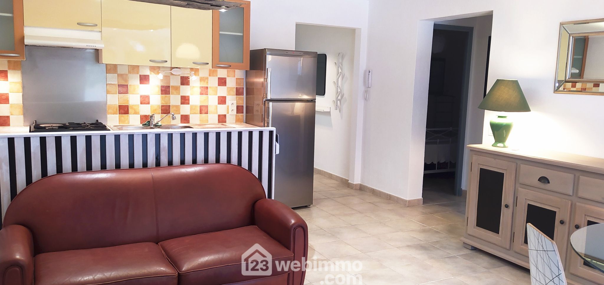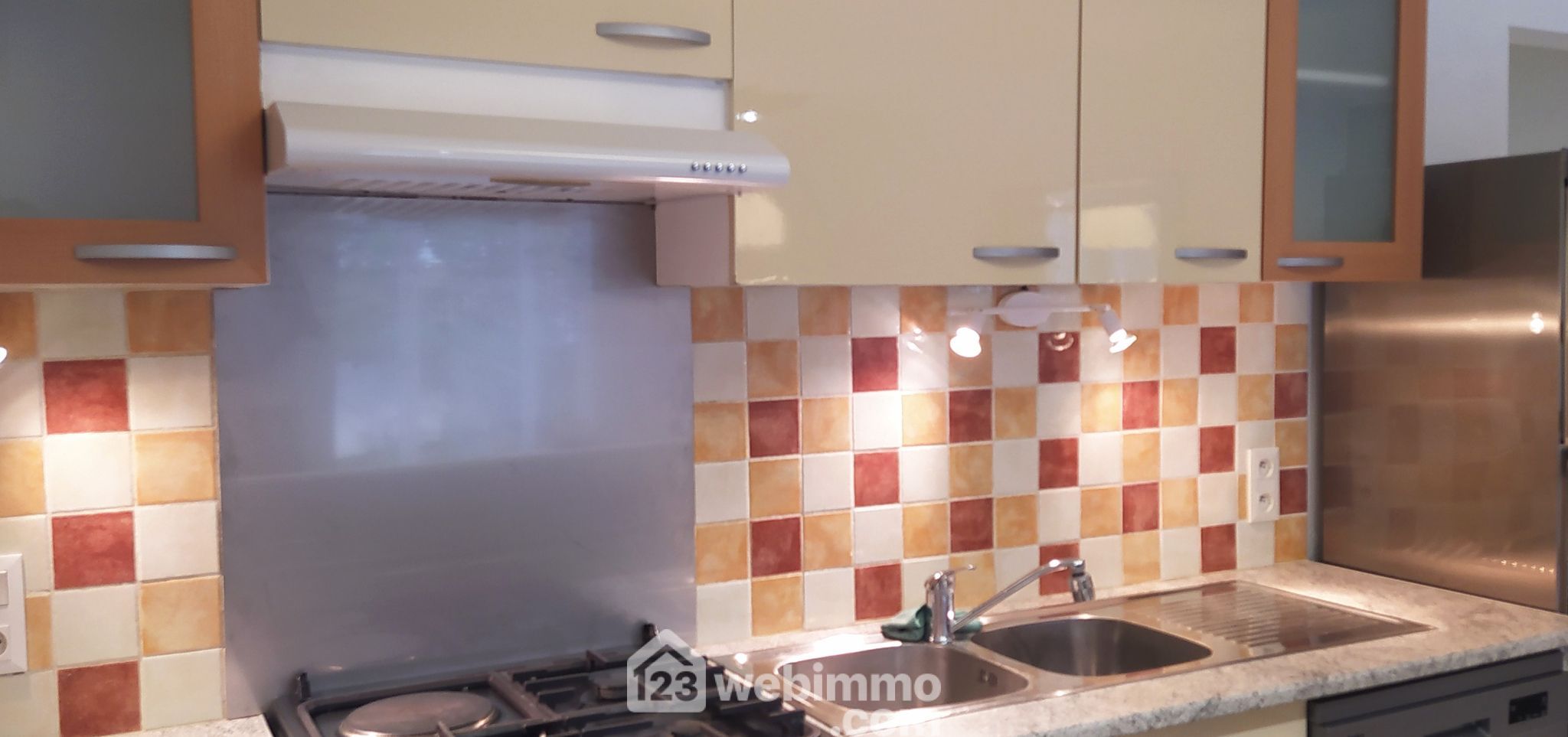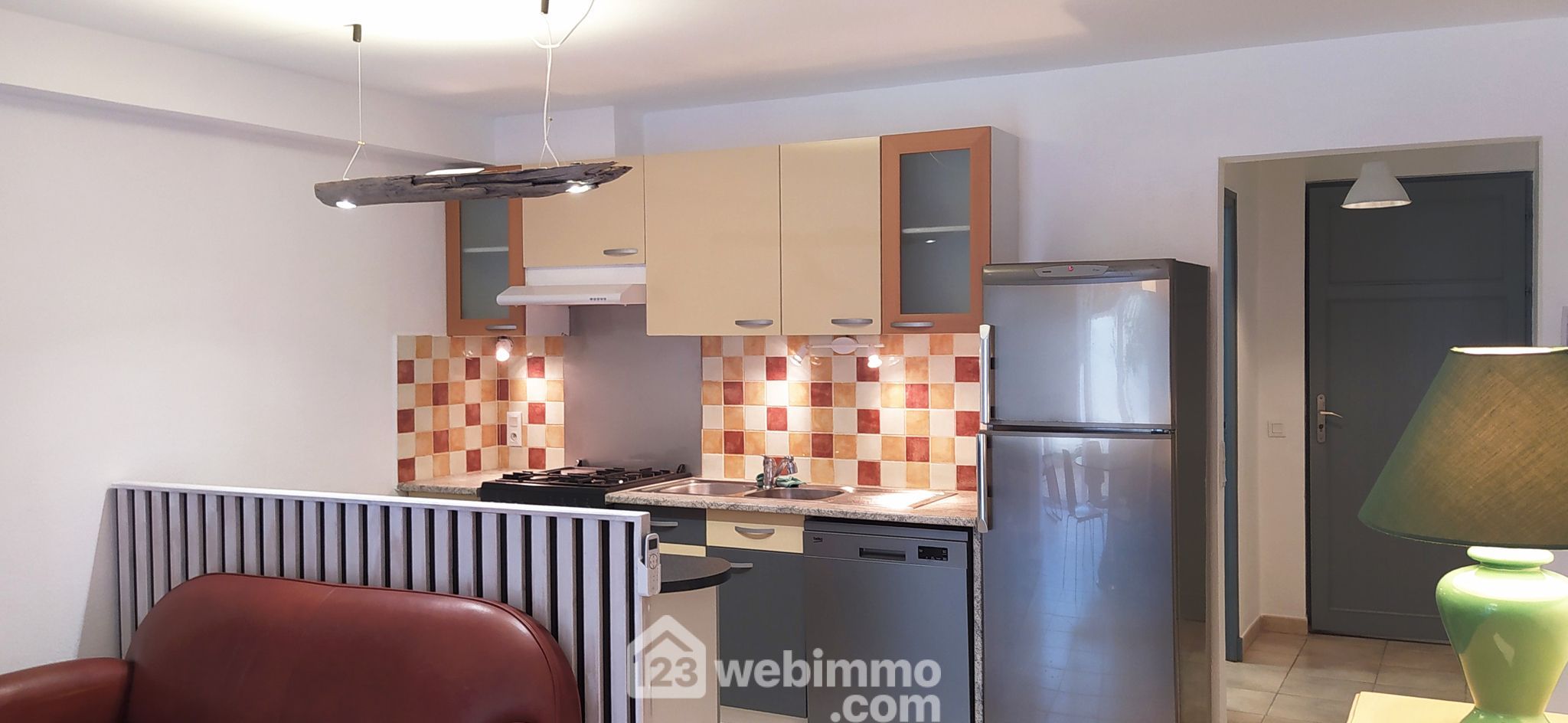 - 1 Pièce de vie spacieuse avec sa cuisine américaine équipée (frigo/congèl, L-vaisselle, plaque de cuisson 4 feux, four, hotte)