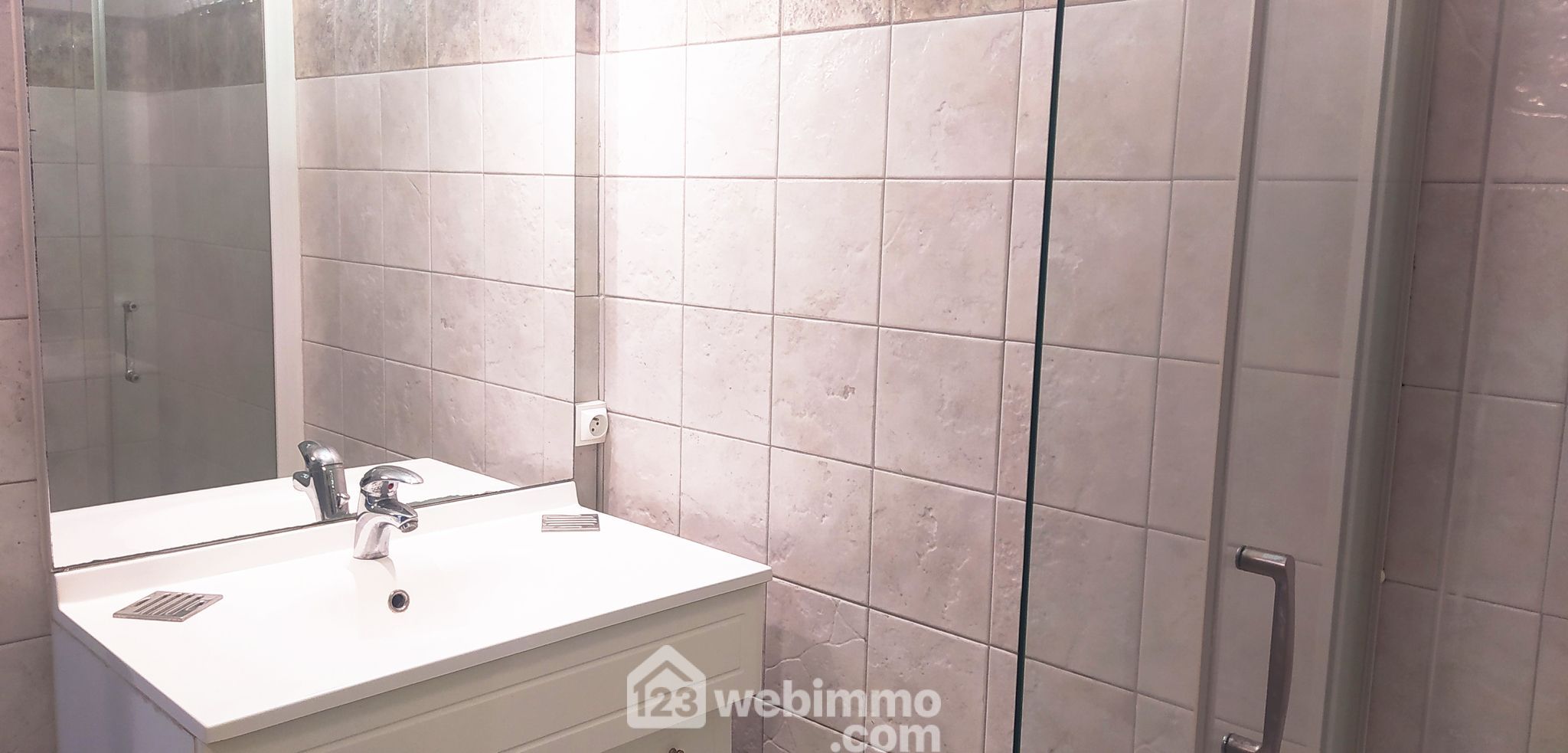 - 1 Salle d'eau équipée d'un bac à douche, d'une vasque sur meuble, d'un sèche serviette, et WC.
