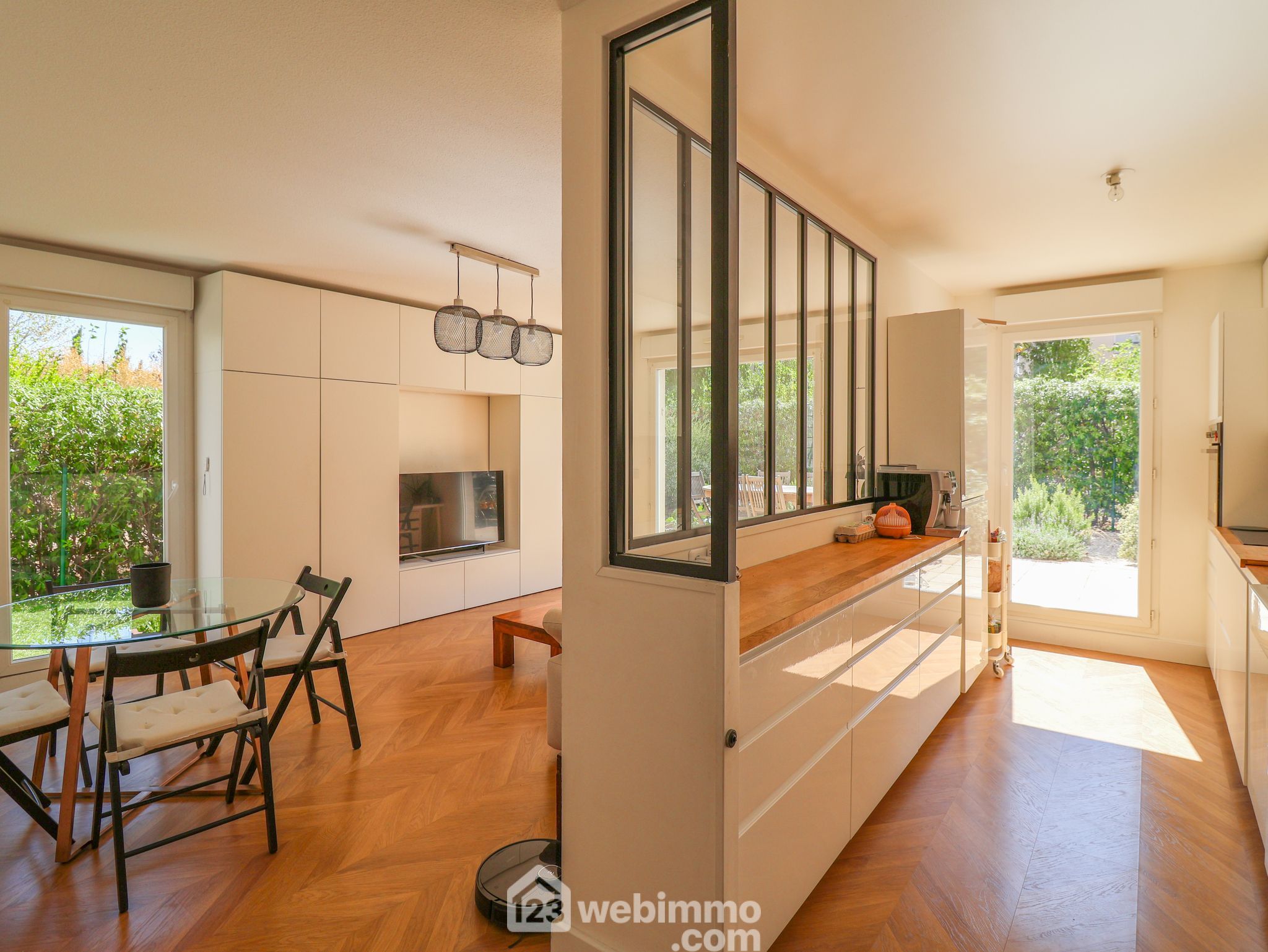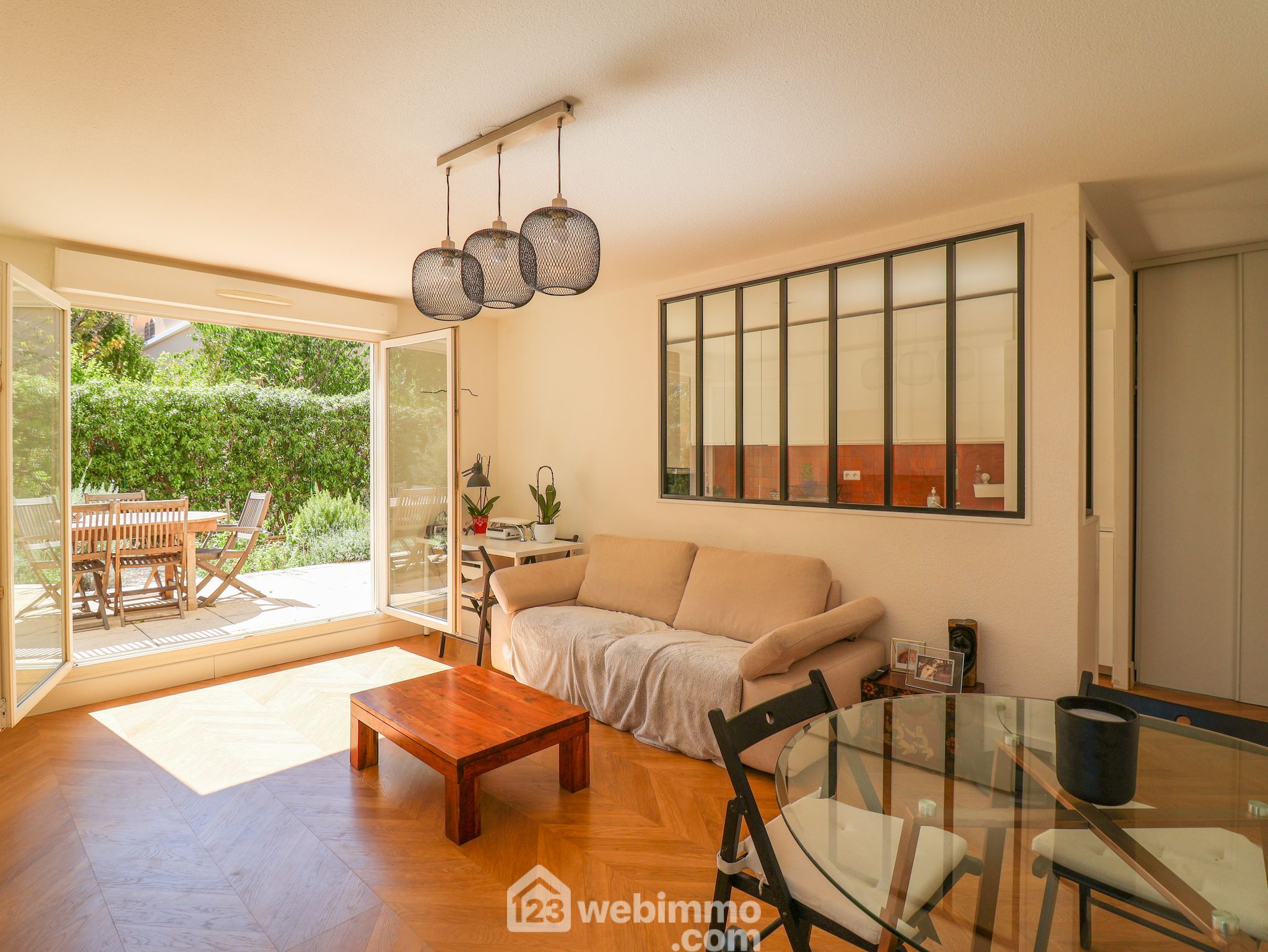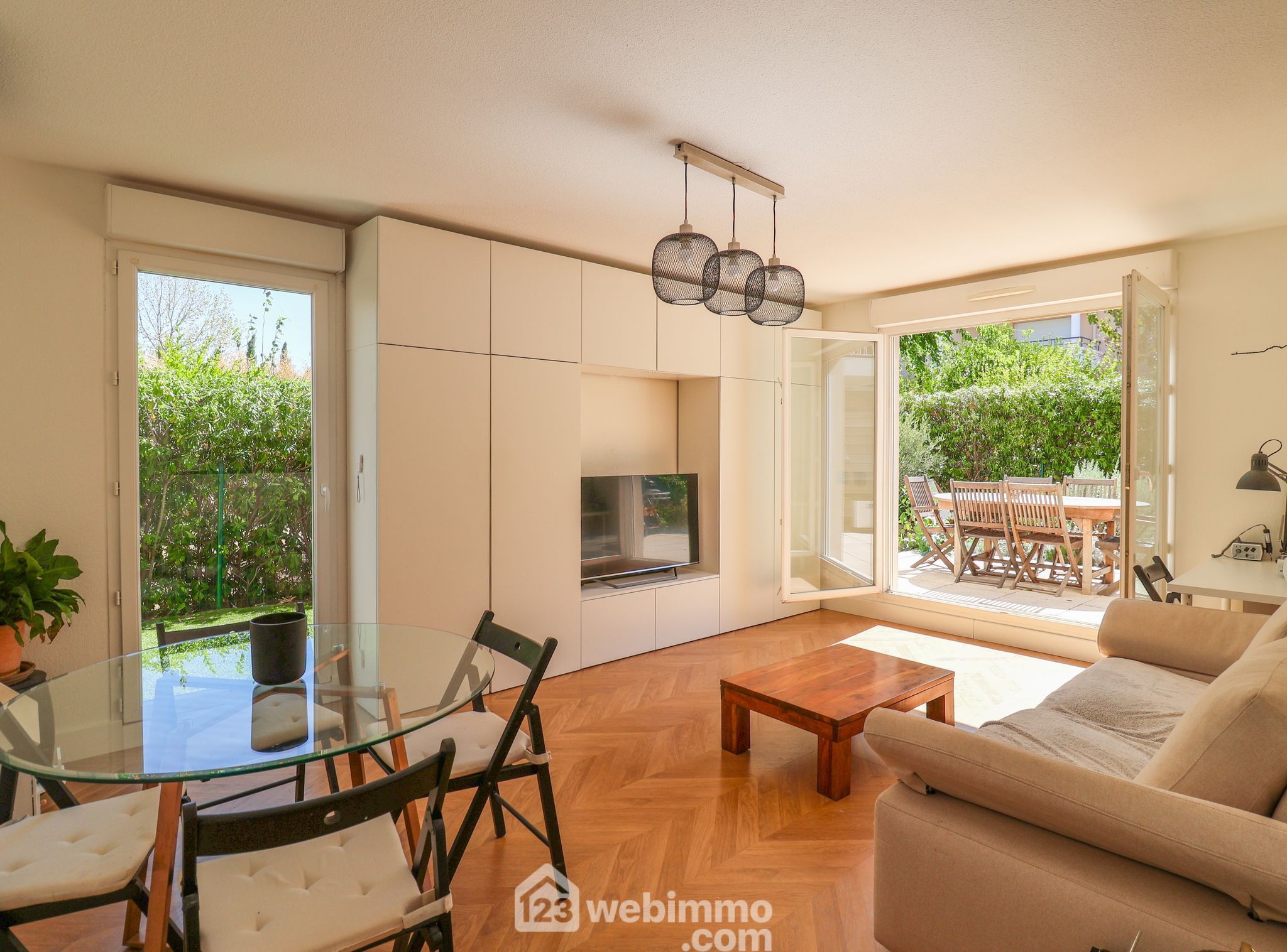 LA JARRE, proche Roy d'Espagne. EXCLUSIVITÉ. Dans une jolie résidence de 2007 au sein d'un parc privatif arboré au calme absolu. Très beau T3 en rez-de-jardin de 62m2 exposé SUD ouvert sur un extérieur de 80m2. Il se compose d'un lumineux séjour, d'une cuisine équipée de qualité. La partie nuit comprend 2 chambres avec placards aménagé, une salle de bain, un wc séparé. Climatisation réversible dans tout l'appartement. Double vitrage. Ascenseur. Résidence fermée. BOX EN SOUS-SOL FERME INCLUS ET STATIONNEMENT EN SOUS-SOL EN SUS POUR 10 000€ SOIT 309 000€ le tout. Le parc de la Jarre est au pied de la résidence offrant un agrément supplémentaire. Carte scolaire école Granados Roy d'Espagne.Visite virtuelle disponible.