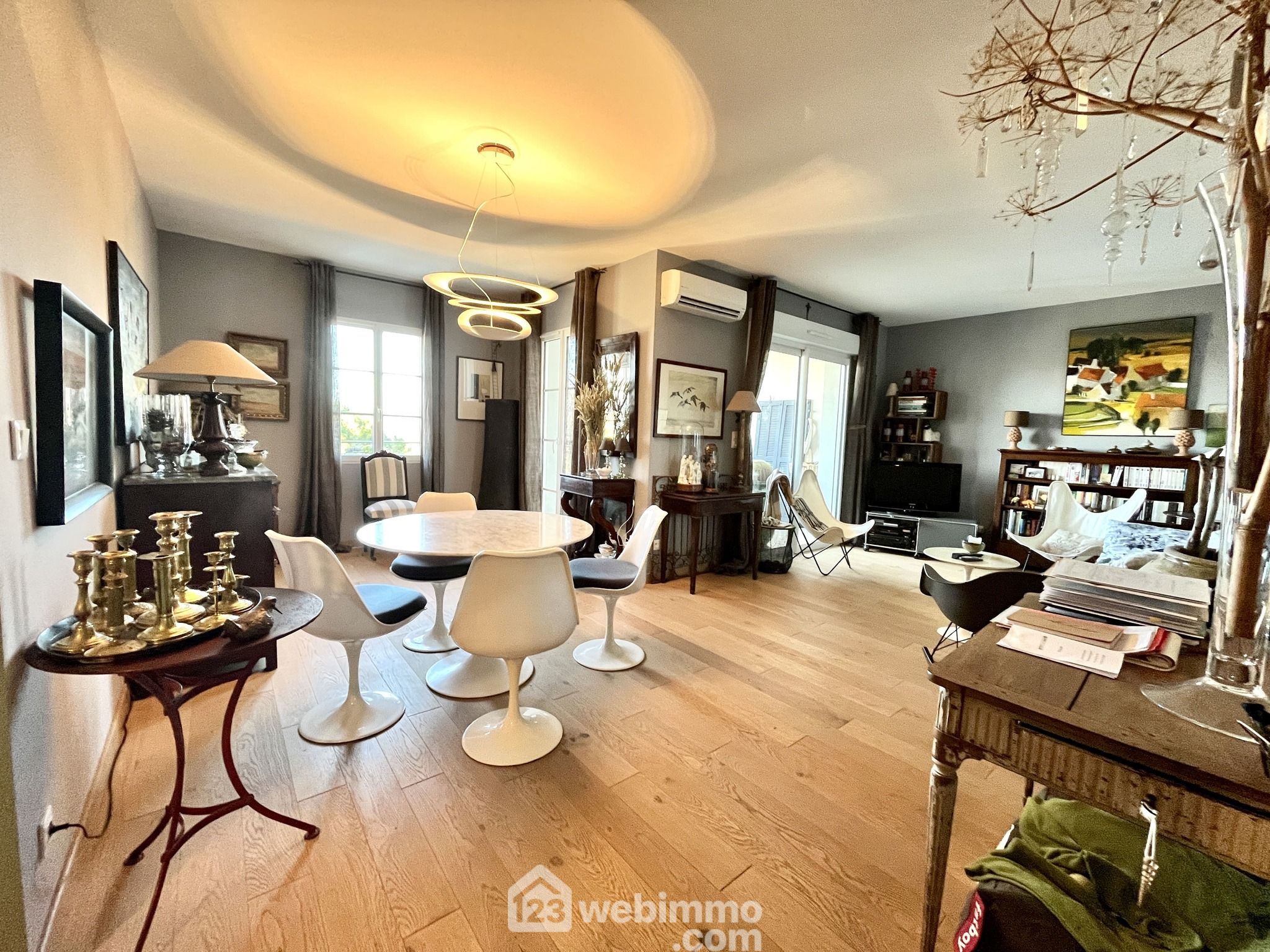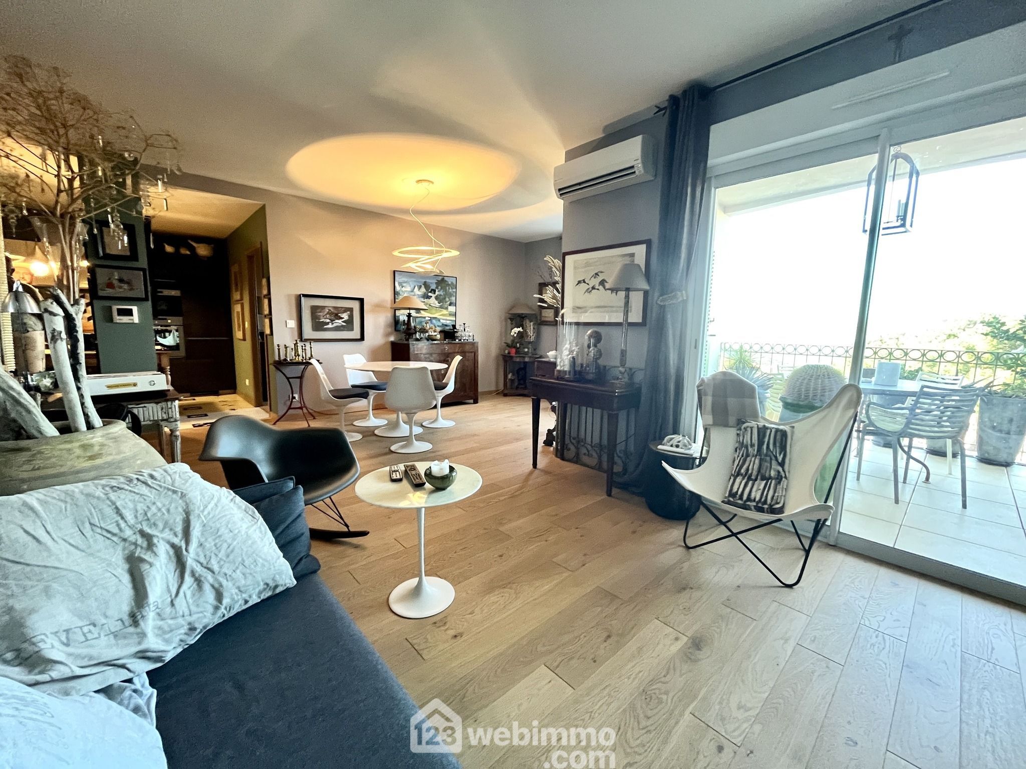 Ce grand T2, en parfait état, est conçu avec des matériaux nobles et offre de belles prestations: parquet en chêne massif au salon et dans la chambre, carreaux de ciments dans la cuisine, peinture à la chaux, travertin dans le salle de bain, climatisation réversible, résidence avec ascenseur.