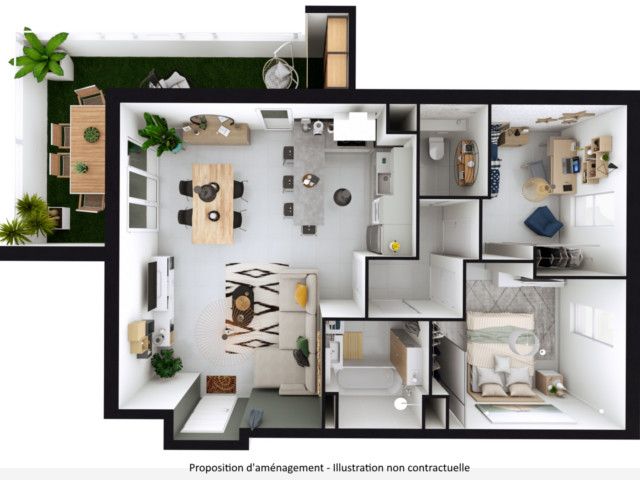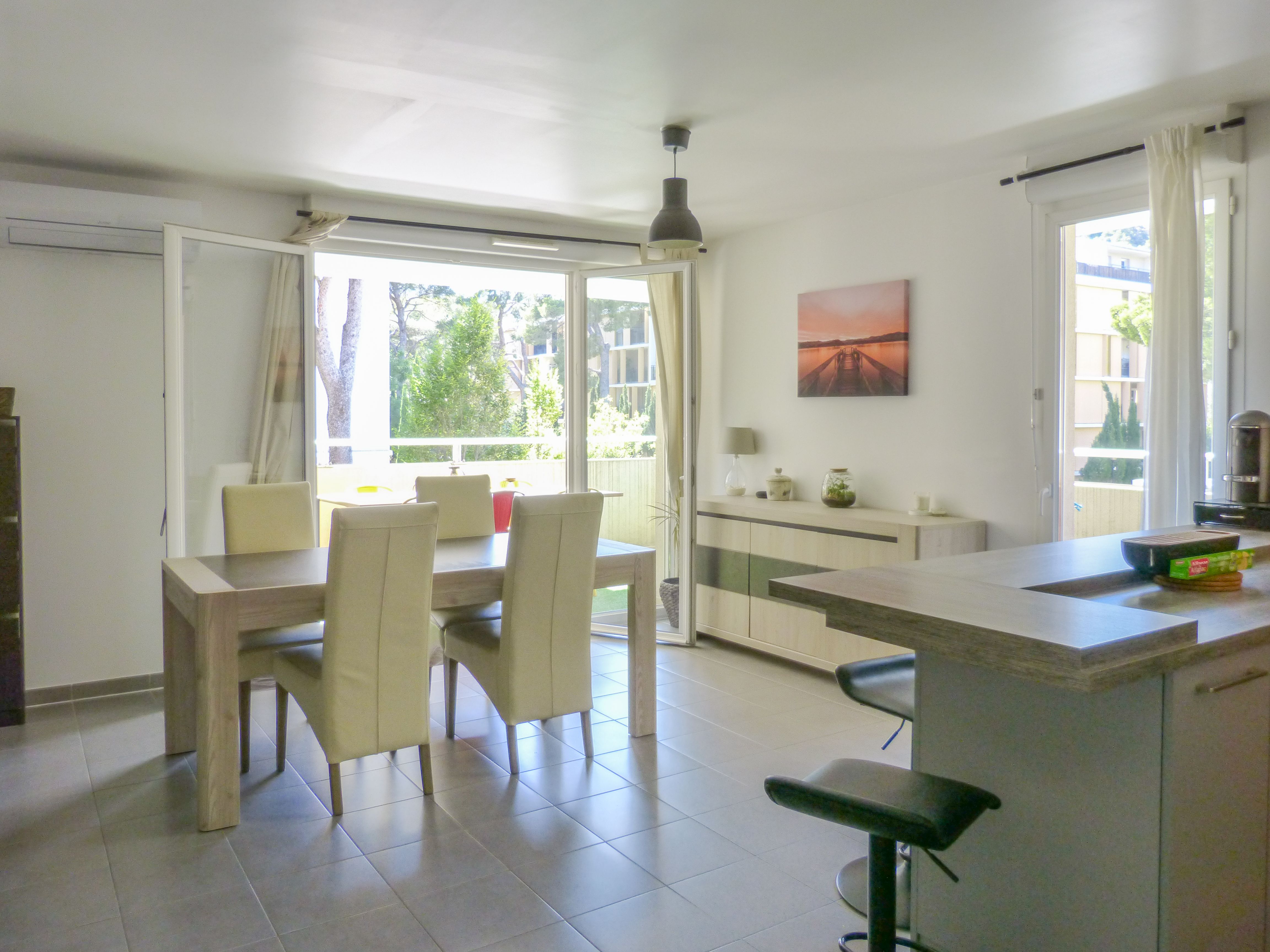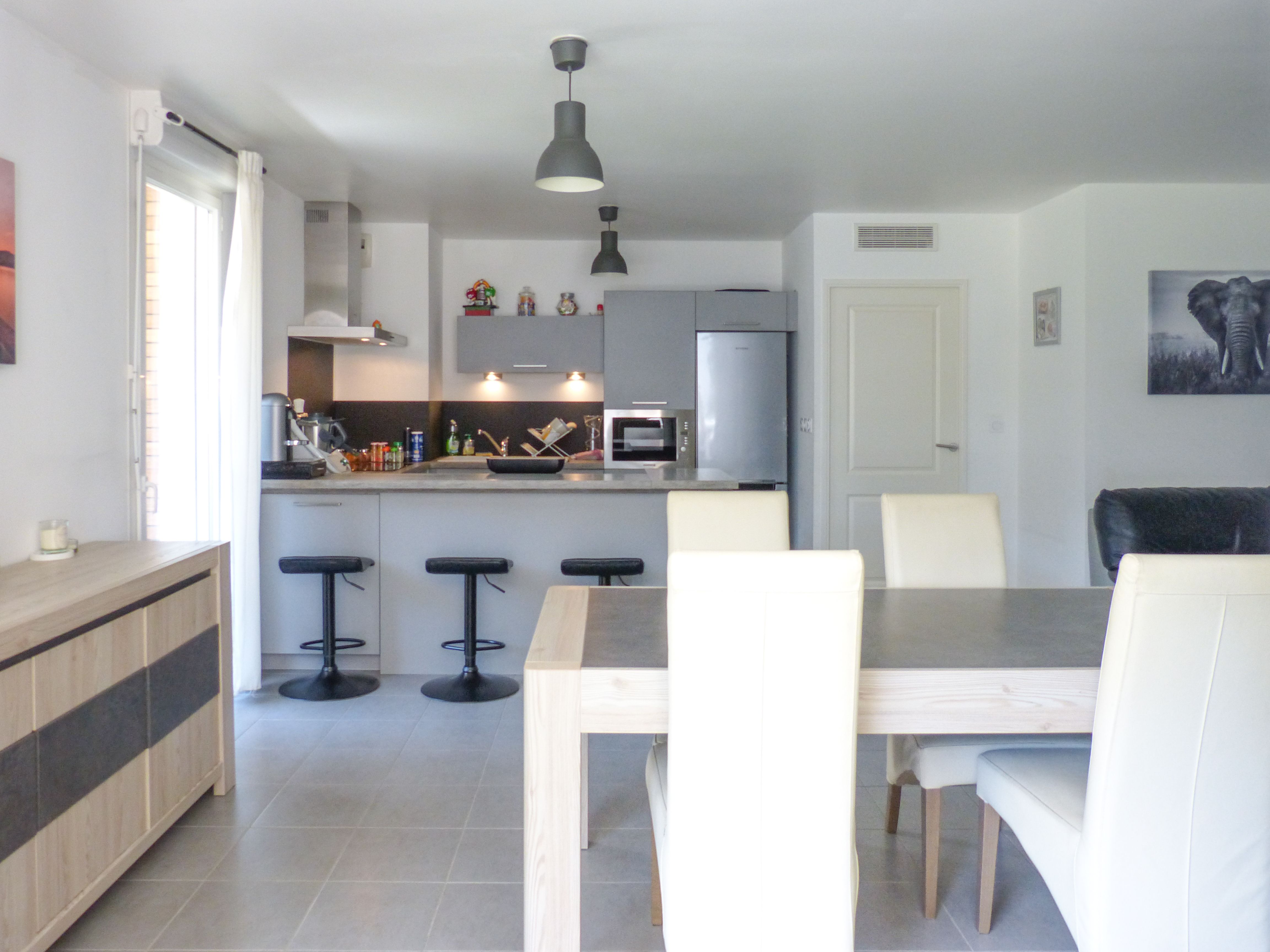 Dans un petit immeuble de 2012 avec ascenseur, très beau T3 traversant en 1er étage sur 4 de 64m2 ouvert sur une agréable terrasse de 19m2 exposée au SUD-OUEST. Il se compose d'un vaste séjour cuisine de 33m2 avec une cuisjne équipée de qualité. Deux chambres de 11,7m2 et 9,2 m2 avec placards. Salle de bains, wc séparés. Double vitrage. Climatisation réversible, chauffage par air pulsé. Construction répondant à la norme RT 2021. BOX DOUBLE EN SOUS-SOL FERME EN SUS 20 000€. Résidence fermée au sein d'une allée close. Charges 160€ /mois avec eau chaude et chauffage. Taxe foncière 1260€.`