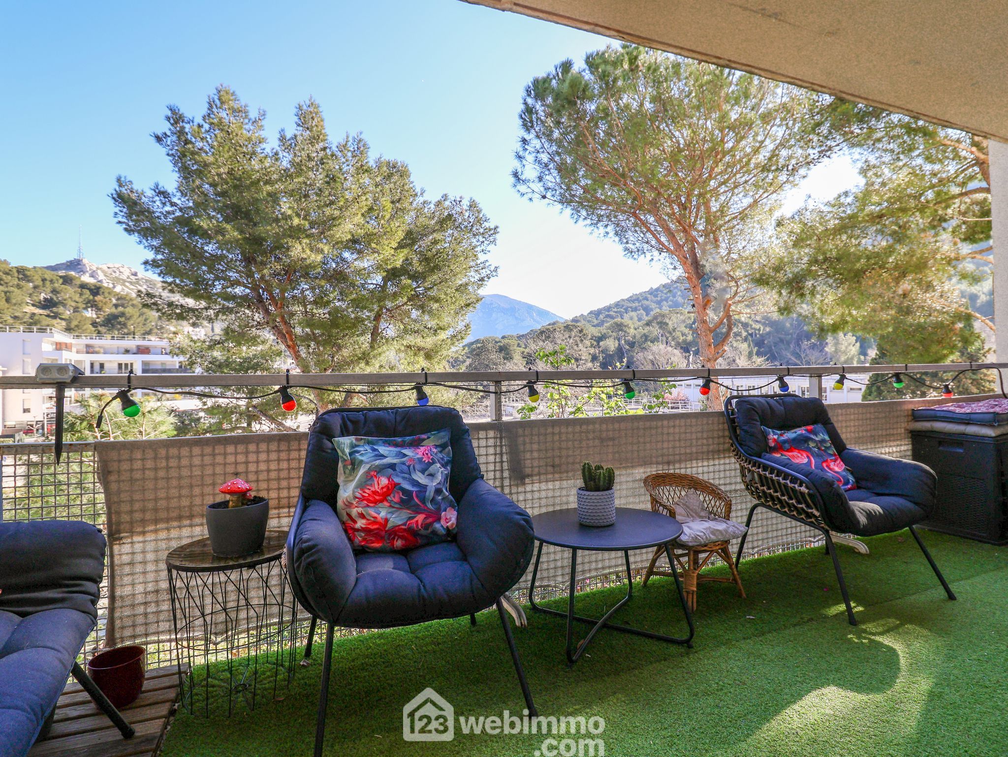 VENDU.LE REDON en EXCLUSIVITE. Au sein de la résidence avec piscine Valmont Redon dans un écrin de verdure aux pied du Parc National des Calanques. Charmant type 3 traversant de 64m2 à la jolie vue dégagée sur le massif des Calanques. Il se compose d'un séjour avec une cuisine équipée attenante donnant sur un large balcon de 10m2 offrant un bel espace détente et repas. La partie nuit se compose de 2 chambres et de 2 placards aménagés. Une salle de douche refaite à neuf complète l'ensemble. Toilettes séparés. Climatisation réversible, double vitrage dans les chambres. Ascenseur. Fibre. La piscine refaite à neuf offre tout l'été un agrément rare. PLACE DE STATIONNEMENT PRIVATIVE EN SUS À 10 000€ située dans la résidence fermée. Cave. Commerces, transports (BUS B1) au pied de la résidence. Accès direct à Luminy par la colline. Charges 185€/mois. Taxe foncière 1386€.