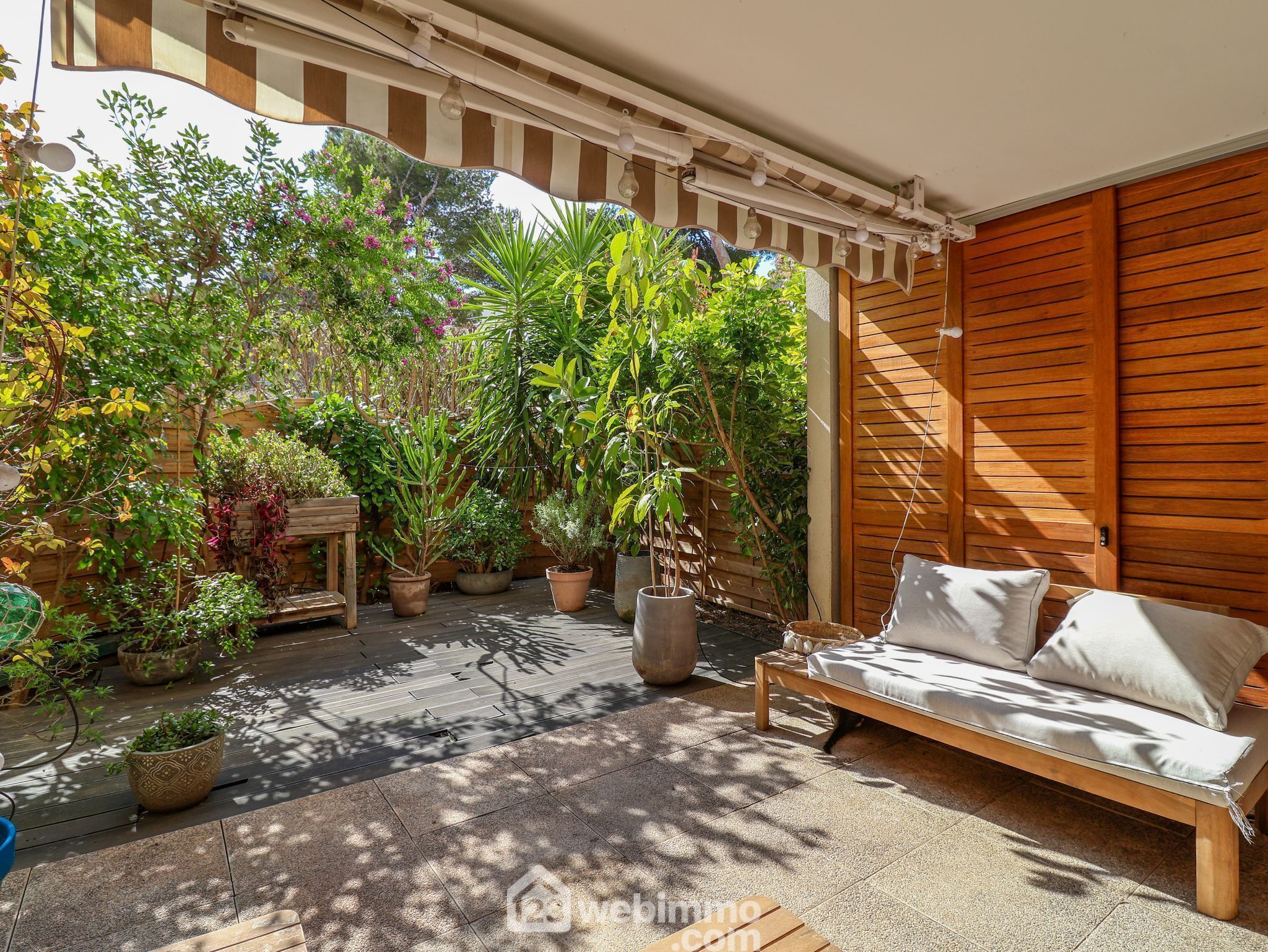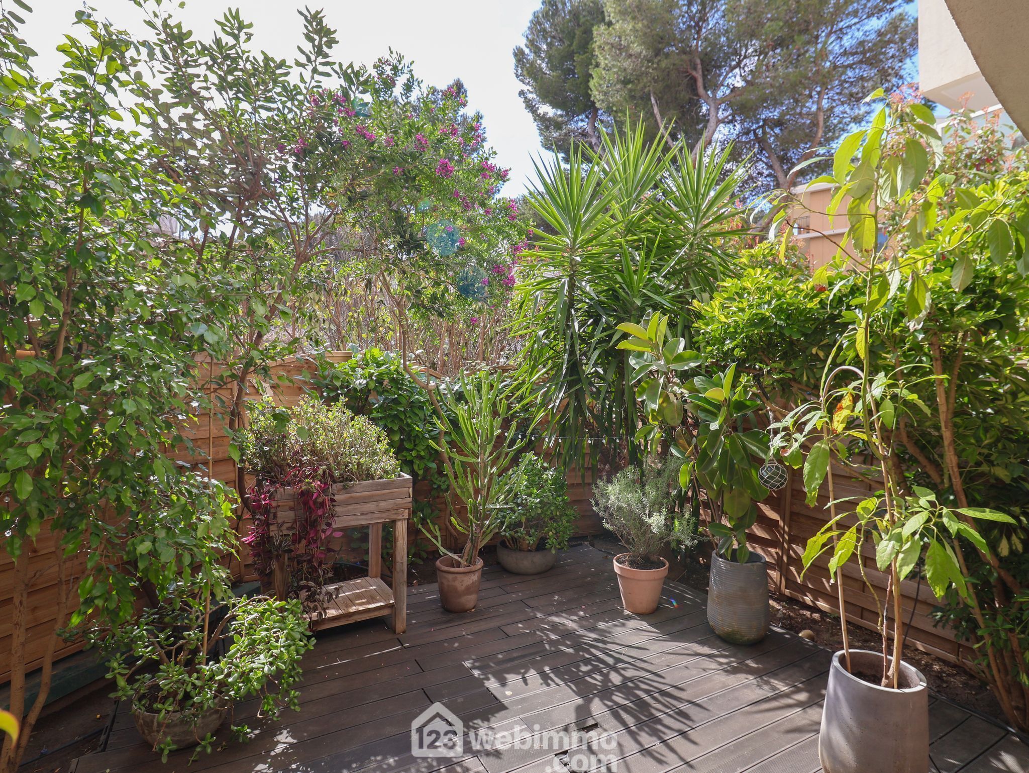PARC DU ROY D'ESPAGNE, SOUS OFFRE, au sein de l'environnement boisé de l'allée Cervantes, au calme absolu. Dans un petit immeuble de 2014 avec ascenseur, très beau Type 3 de 64m2 ouvert sur un agréable jardin avec terrasse de 37m2 exposée au SUD offrant une jolie vue arborée. Il se compose d'un séjour cuisine de 27m2 avec une cuisIne équipée de qualité. Deux chambres de 12m2 et 10 m2 équipés de placards. Salle de douche, wc séparés. Dressing. Double vitrage. Chauffage par air pulsé. Construction répondant à la norme RT 2012. PLACE DE STATIONNEMENT PRIVATIVE EN SURFACE COMPRISE DANS LE PRIX. Résidence fermée. Situation privilégiée au pied du parc national des Calanques. Charges 145€ /mois avec eau chaude et chauffage compris. Taxe foncière 1290€.`