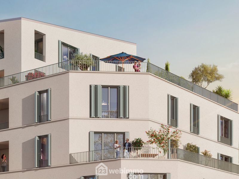 Composée de 3 bâtiments multipliant les jeux de hauteur allant du R+1 au R+5, la résidence se distingue d’emblée à l’entrée sud du quartier. Ses façades séquencées de teintes claires, ponctuées de belles baies vitrées et habillées de persiennes de couleur bleue grisée, font écho à l’architecture traditionnelle de la ville tout en offrant une image contemporaine hautement qualitative. Ici, les deux derniers étages, traités en attique, laissent place à un vaste retrait et à une toiture végétalisée aux airs de jardin suspendu. L’ensemble de la ligne architecturale de la résidence est ainsi rythmée par une succession de terrasses et loggias libérant d’agréables échappées visuelles sur l’espace végétalisé commun. Aux premières loges de la ville, ils redéfinissent complètement la notion de quiétude en milieu urbain. Les appartements se prolongent, pour la grande majorité, par un agréable jardin privatif, une loggia intimiste ou une vaste terrasse, dont certaines plein ciel en attique. Les baies vitrées des pièces principales tirent quant à elles le meilleur parti des expositions sud, est ou ouest, offertes par la résidence, afin d’assurer une luminosité constante tout au long de la journée.