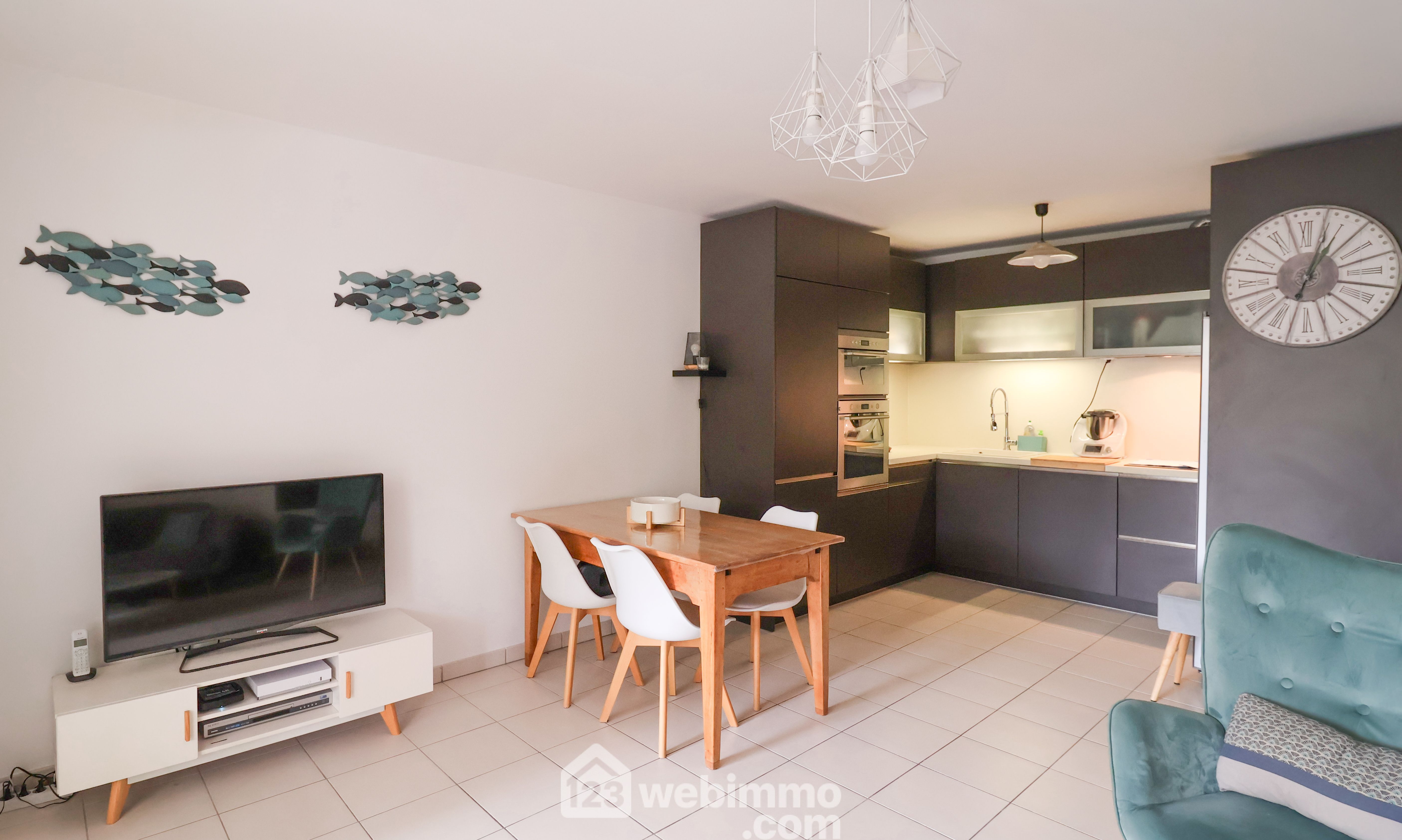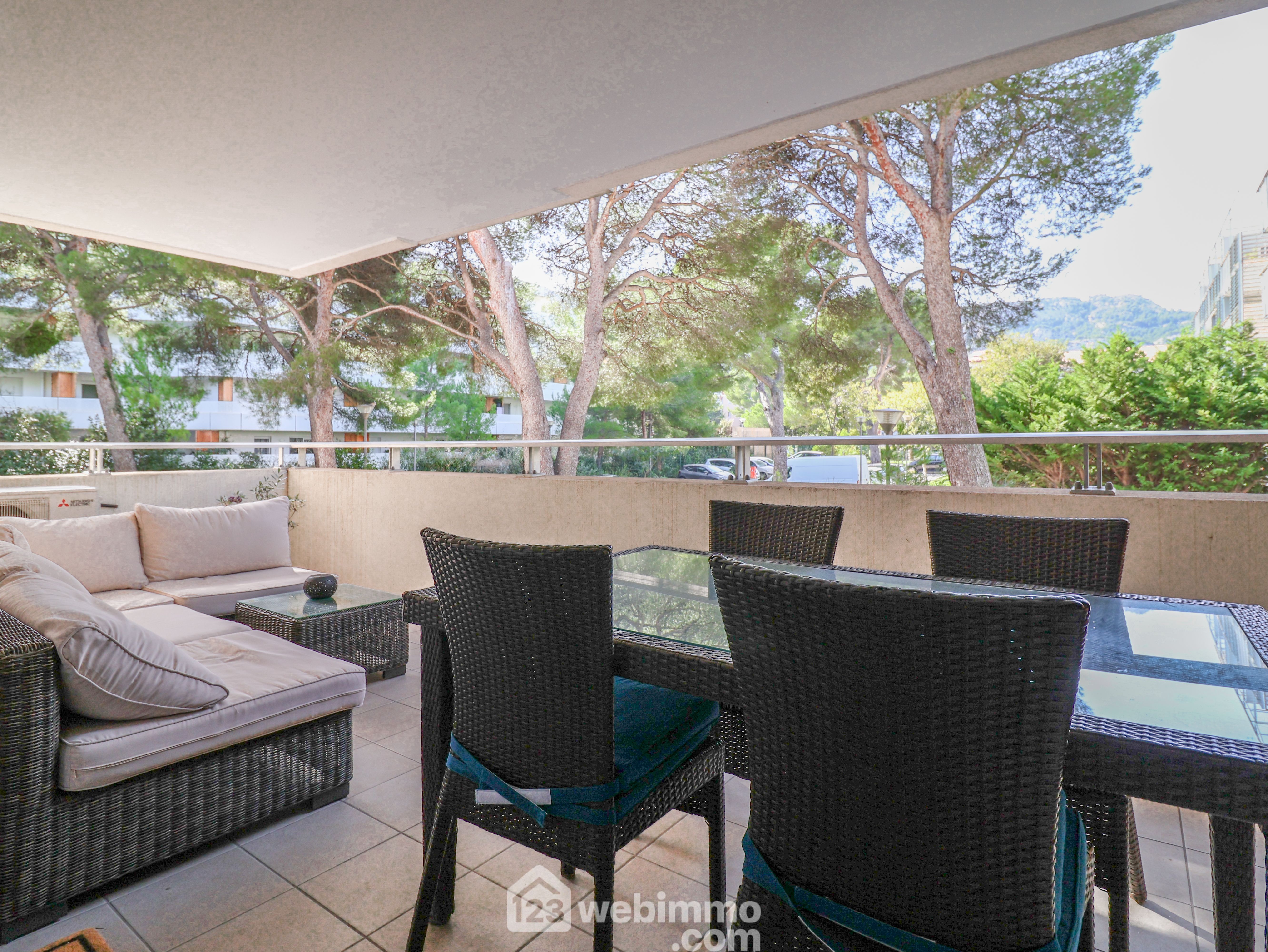 PARC DU ROY D'ESPAGNE, au sein de l'environnement boisé de l'allée Cervantes, au calme absolu. Dans un petit immeuble de 2014 avec ascenseur, très beau T3 de 65m2 ouvert sur une agréable terrasse de 17m2 exposée au SUD-OUEST offrant une jolie vue arborée. Il se compose d'un séjour cuisine de 26m2 avec une cuisIne équipée de qualité. Deux chambres de 13m2 et 10 m2 équipés de placards. Salle de bain, wc séparés. Double vitrage. Climatisation réversible. Chauffage par air pulsé. Construction répondant à la norme RT 2012. BOX DOUBLE EN SOUS-SOL DE 23M2 ELECTRIFIE FERME EN SUS 20 000€ soit 319 000€ l'ensemble. Résidence fermée. Situation privilégiée au pied du parc national des Calanques. Charges 135€ /mois avec eau chaude et chauffage. Taxe foncière 1587€.`