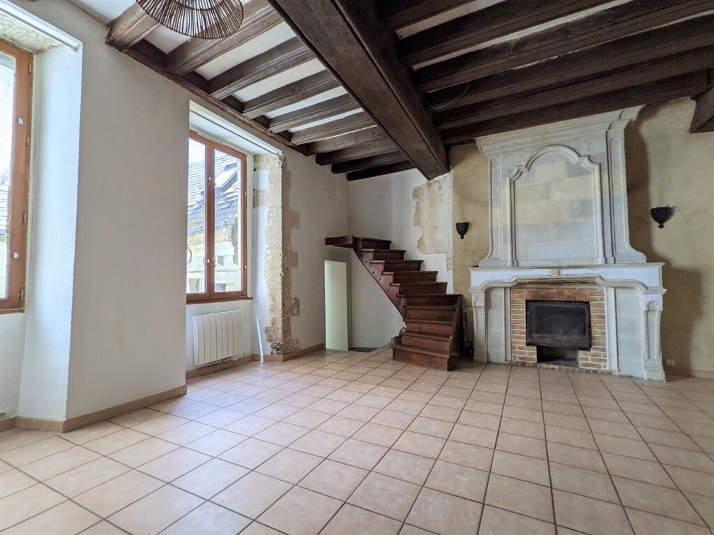49100 - Appartement T2 dans une petite copropriété. Salon séjour lumineux de 36 m² avec cheminée, placard, murs en pierre et poutre au plafond. Cuisine séparée, aménagée et équipée avec four, plaque de cuisson et hotte aspirante. Chambre de 12 m² avec placard. Salle de bain avec WC à revoir. Cour privative de 8 m² exposé Sud.