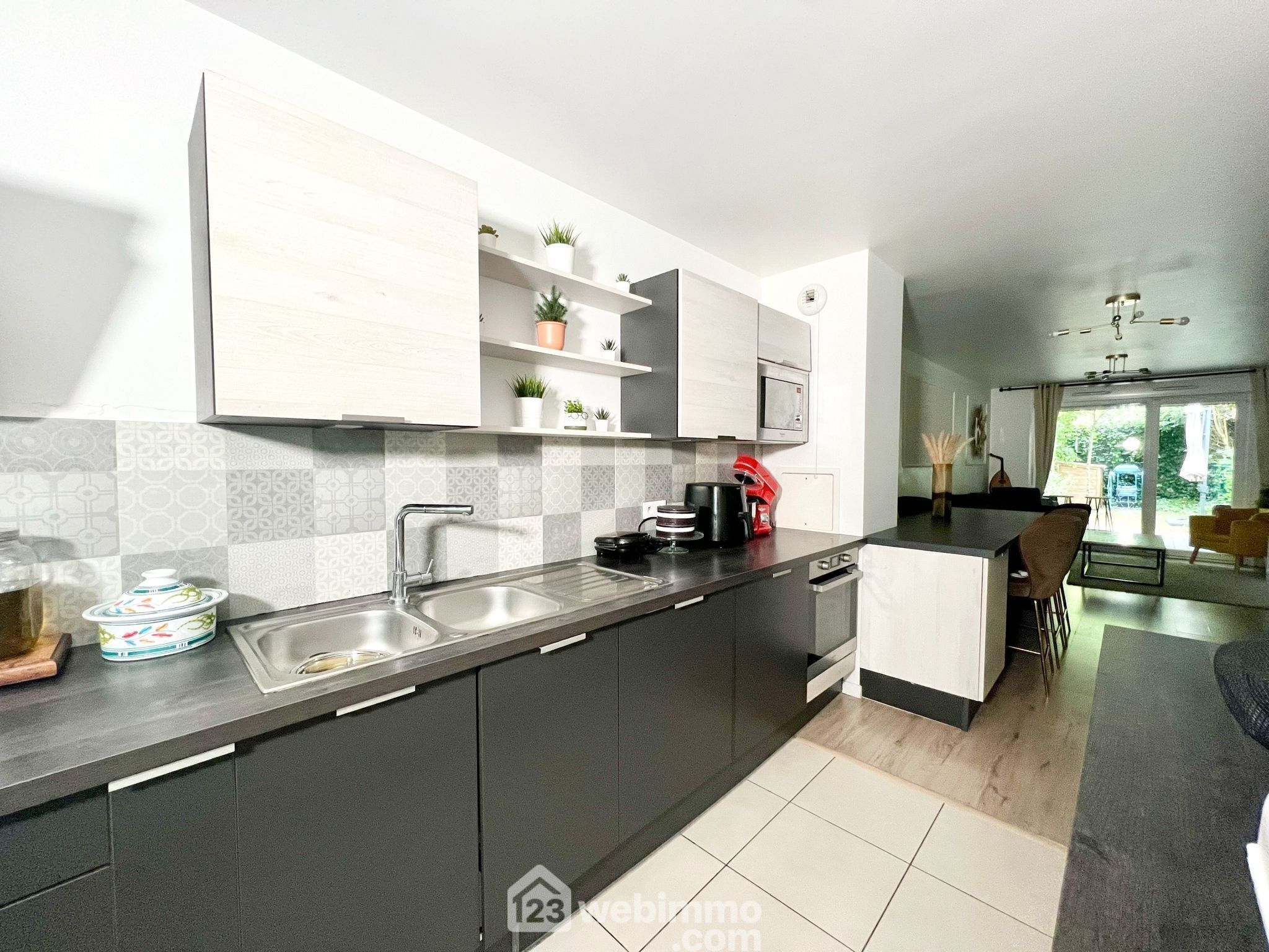 Traversant avec une double exposition sud et nord, il se compose d'une entrée/dégagement, d'une grande pièce de vie avec cuisine de 33 m², traversante donnant sur une terrasse et un jardin exposés sud (la cuisine cuisine moderne, équipée peut être séparée du séjour), de deux chambres dont une avec rangements intégrés donnant chacune sur une deuxième terrasse, d'une salle de bain et de wc séparés.