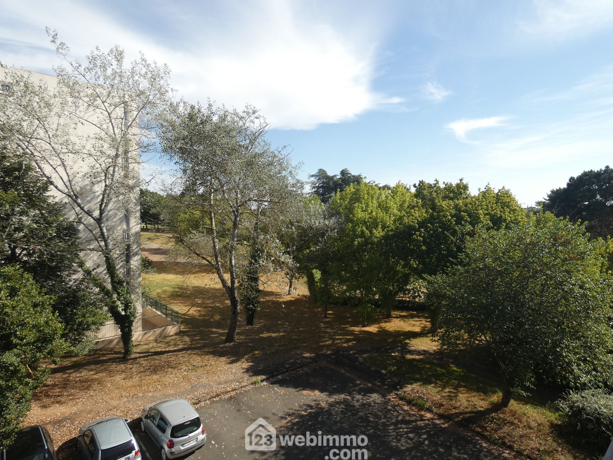 86000 Poitiers, Les Couronneries. Proximité des commerces, des bus et des écoles. Appartement situé au 3ème étage sans ascenseur, dans une résidence sécurisée. Entrée avec placard, pièce de vie d'environ 40 m2 avec séjour et cuisine US aménagée et équipée, 2 chambres de 10 et 12 m2 dont 1 avec placard, salle d'eau, WC indépendant, cellier ou dressing. Séchoir et cave. Chauffage collectif au gaz de ville. Stationnement facile. Dans un cadre verdoyant, avec un grand parc à proximité. Charges de copropriété annuelles 1775 € : chauffage, eau froide, eau chaude, entretien ménager des communs. Pas de procédure en cours.