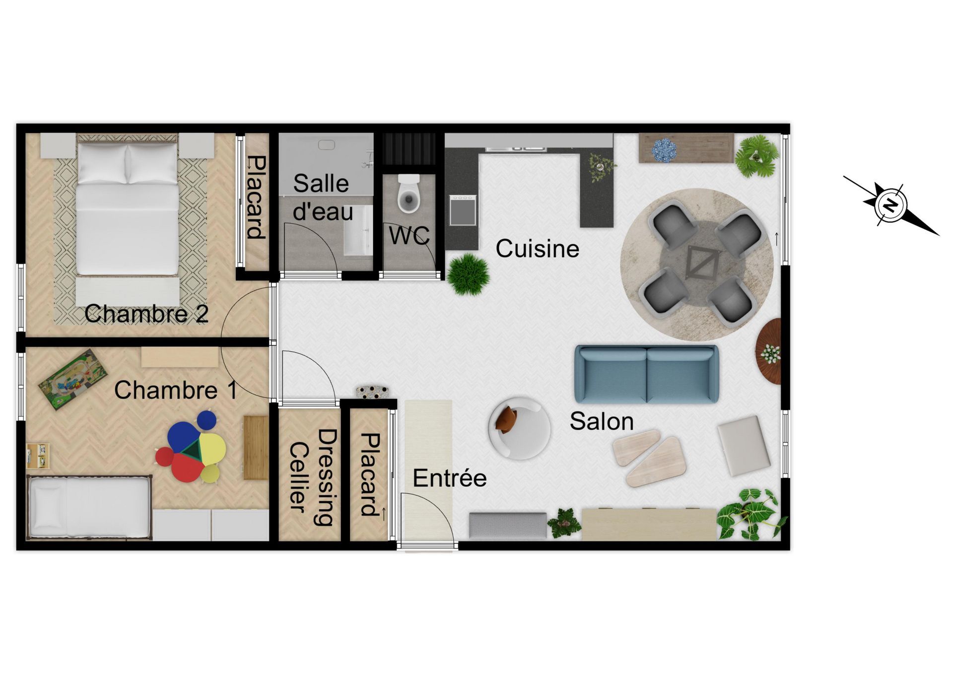 Appartement 3 pièces, 68,8 m2 habitables, 2 chambres, séchoir et cave.